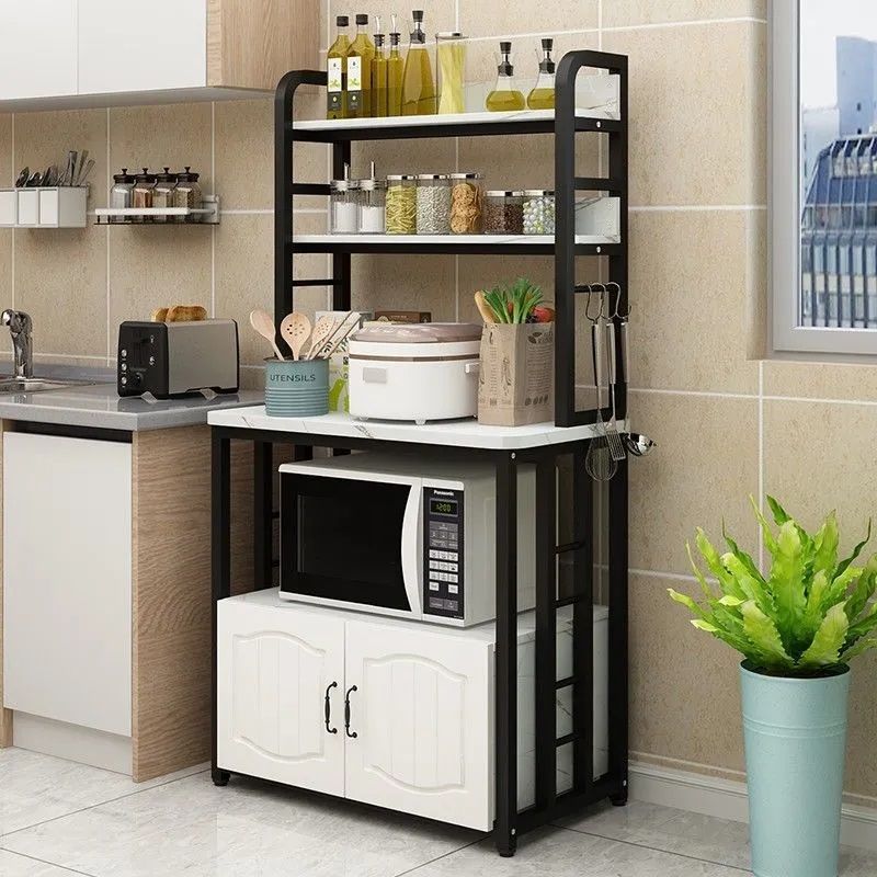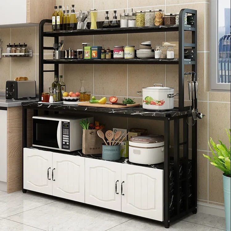 주방 스토리지 랙 바닥 스탠딩 가정용 스토리지 랙 팟 바닥 스탠딩 팟 오븐 다기능 다층 전자 레인지