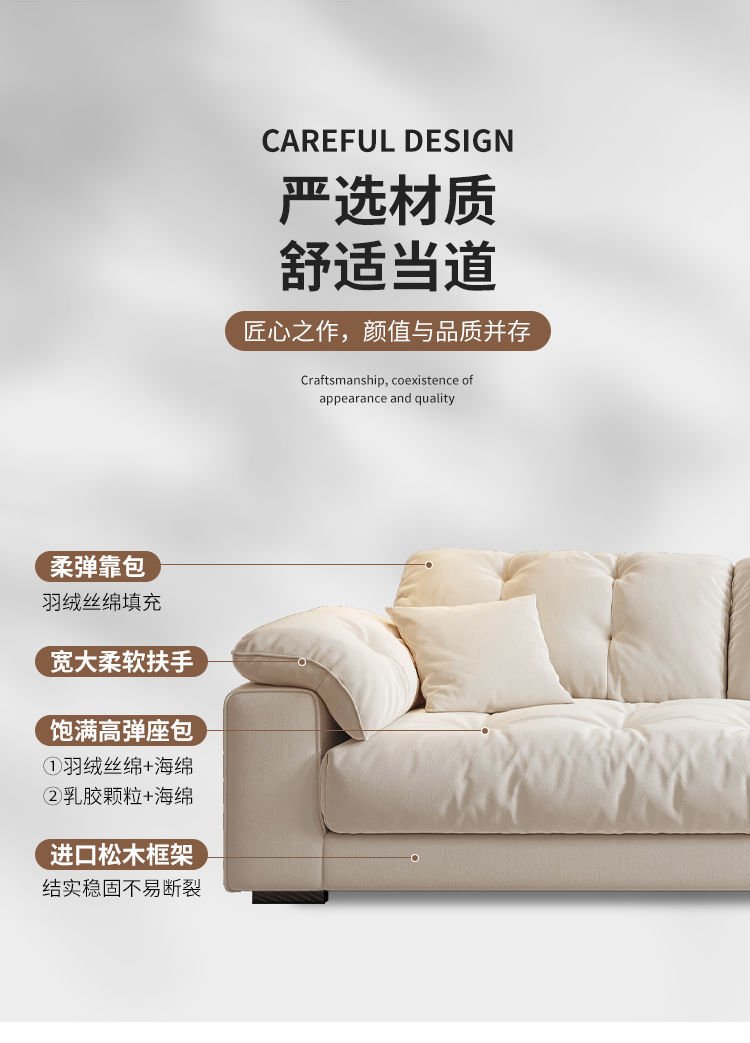 패브릭 소파 거실 이탈리아 크림 스타일 기술 현대 간단한 3 인 똑바로 게으른 바람과 구름 소파