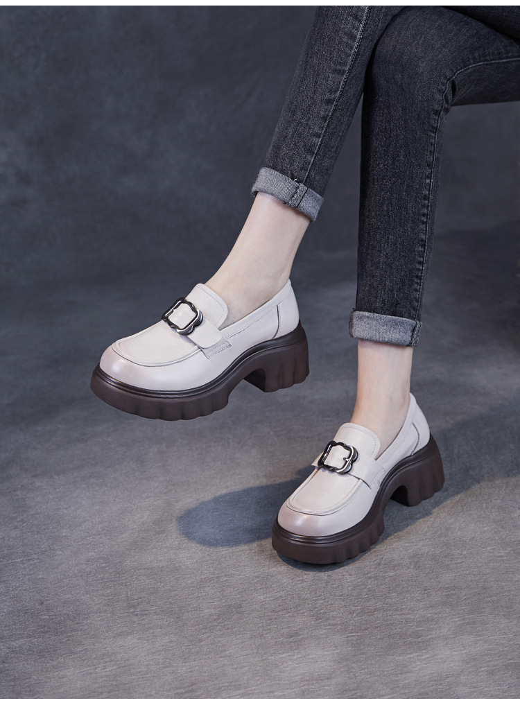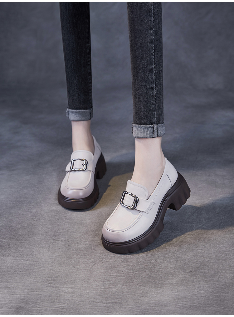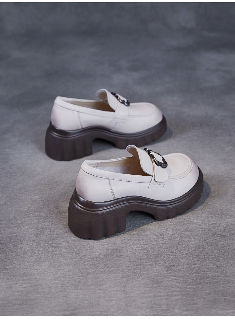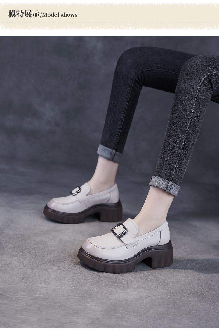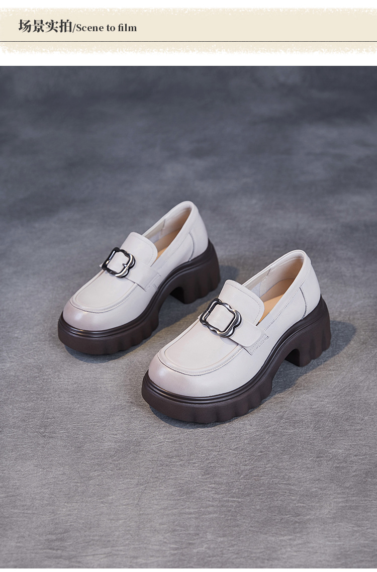 미국 천연 컬러 여성 신발 2025 봄 새로운 캐주얼 다목적 가죽 복고풍 신발 로퍼 캐주얼 신발 운동화