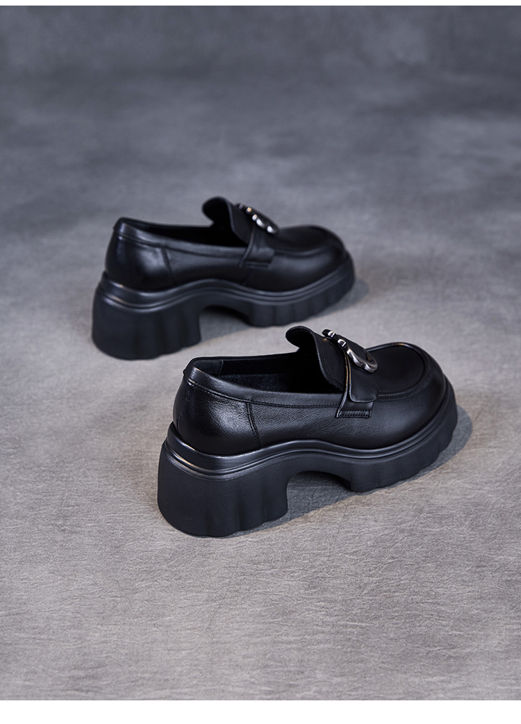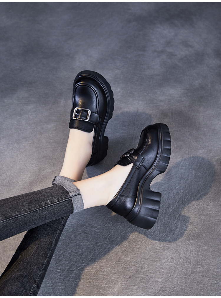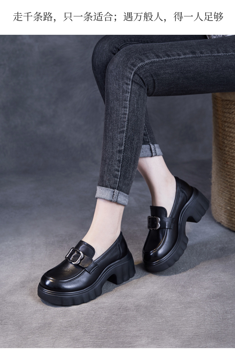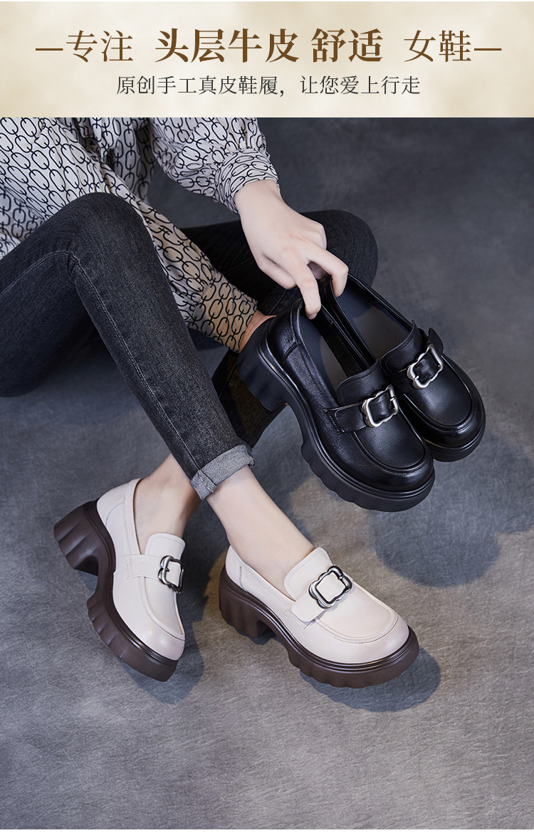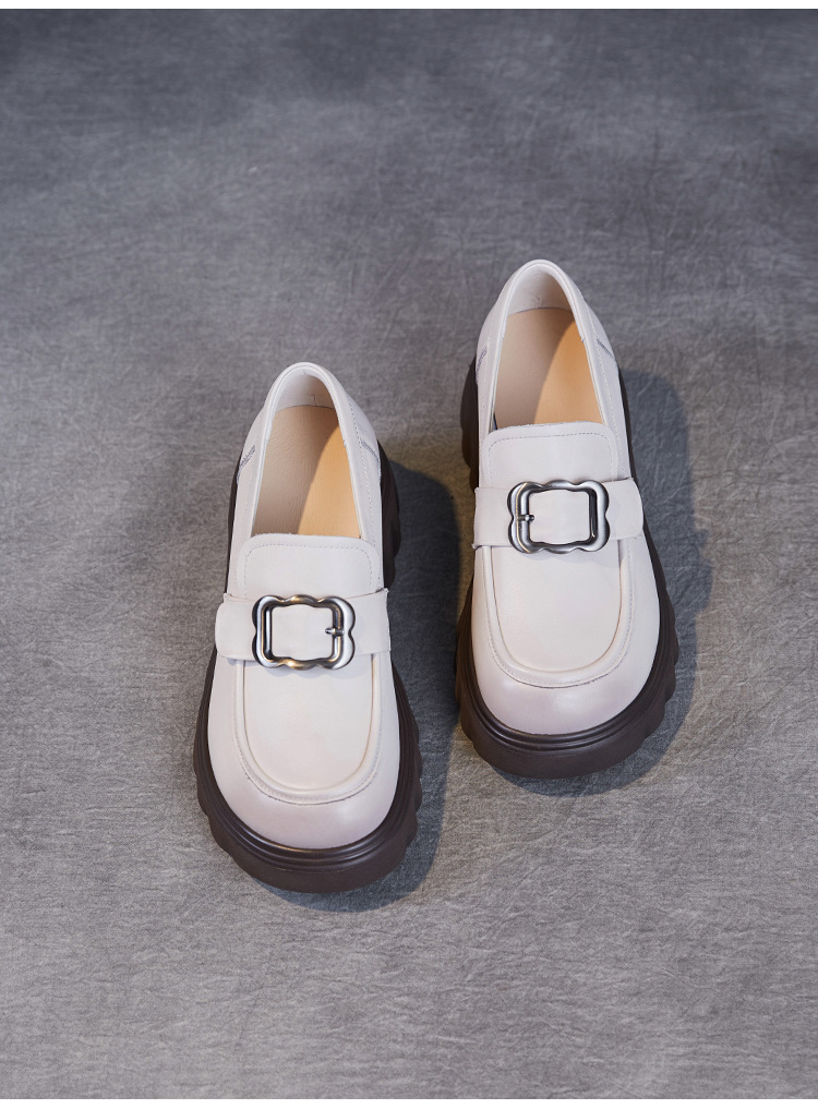 미국 천연 컬러 여성 신발 2025 봄 새로운 캐주얼 다목적 가죽 복고풍 신발 로퍼 캐주얼 신발 운동화