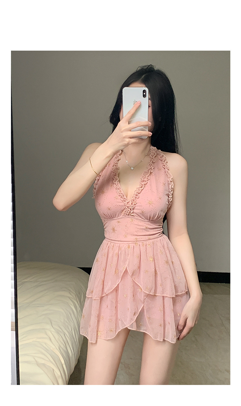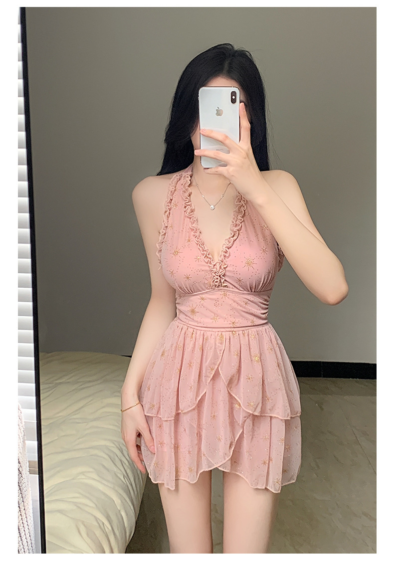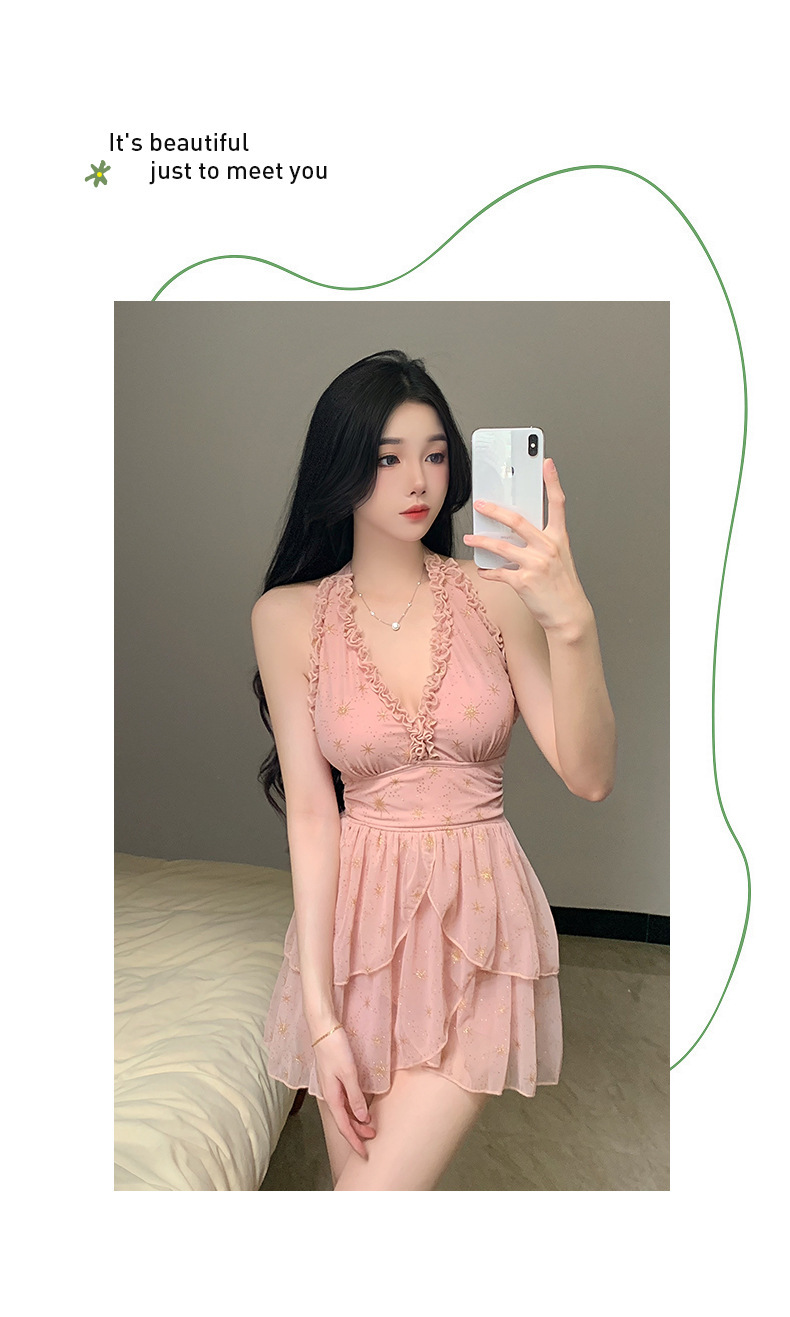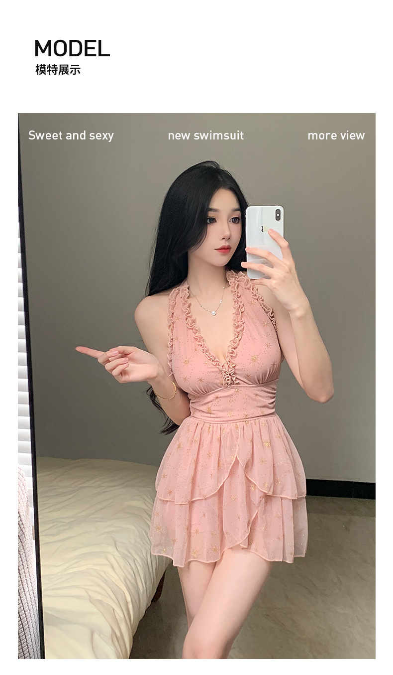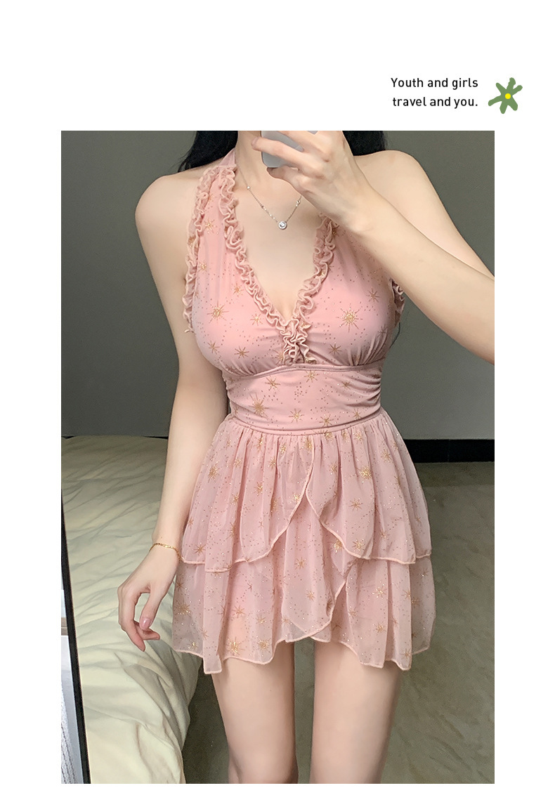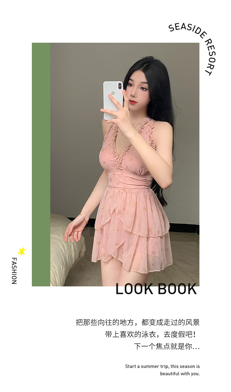 원피스 스커트 스타일 슬링 수영복 온천 해변 휴가 벨리-슬리밍 소녀의 보수적 인 작은 가슴 모임 새로운 스타일