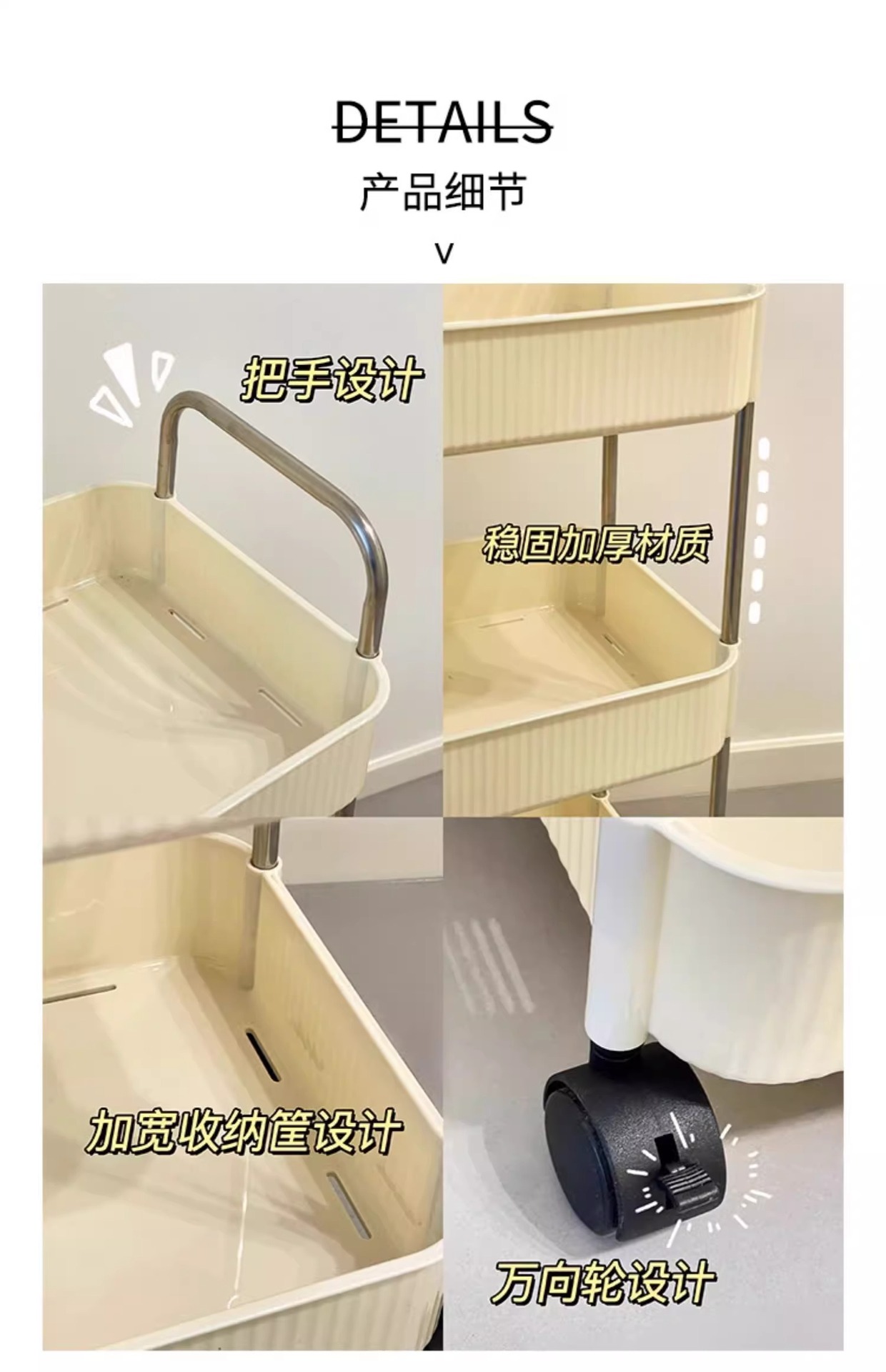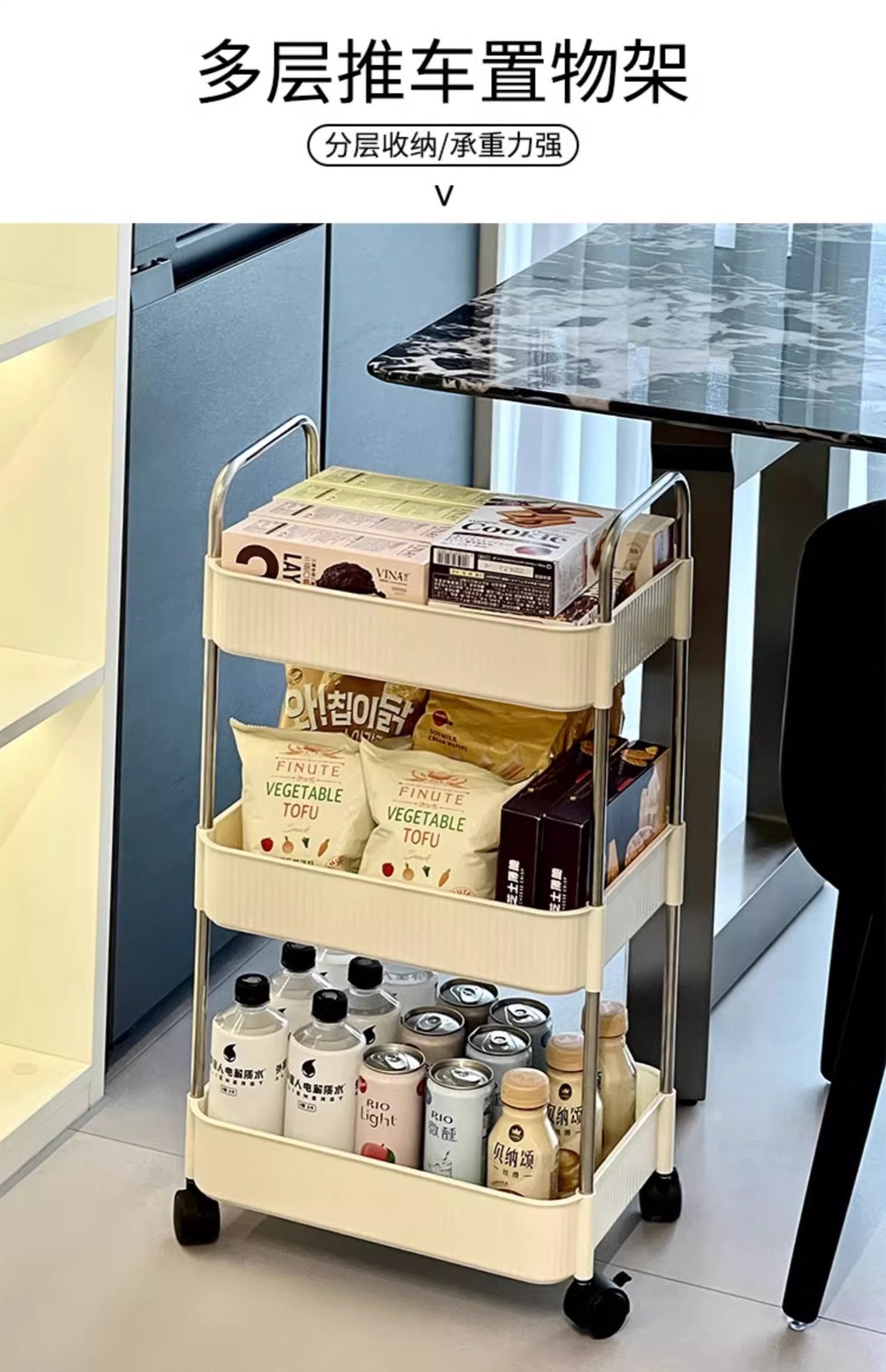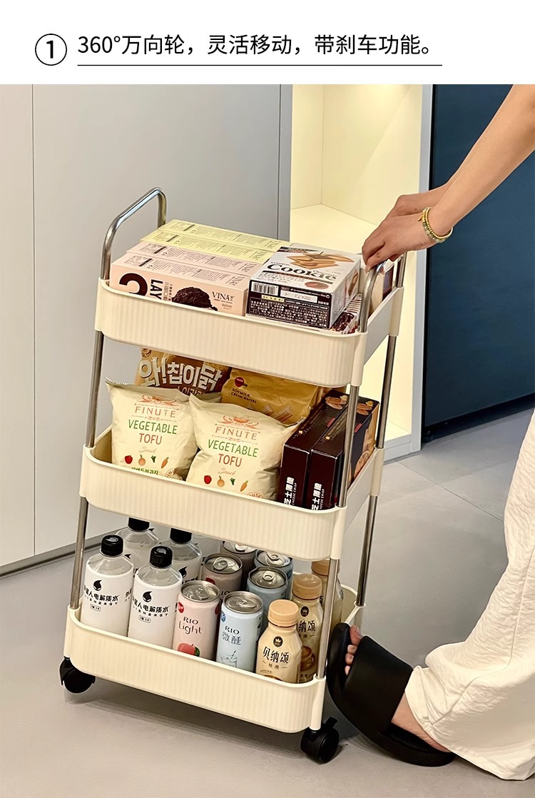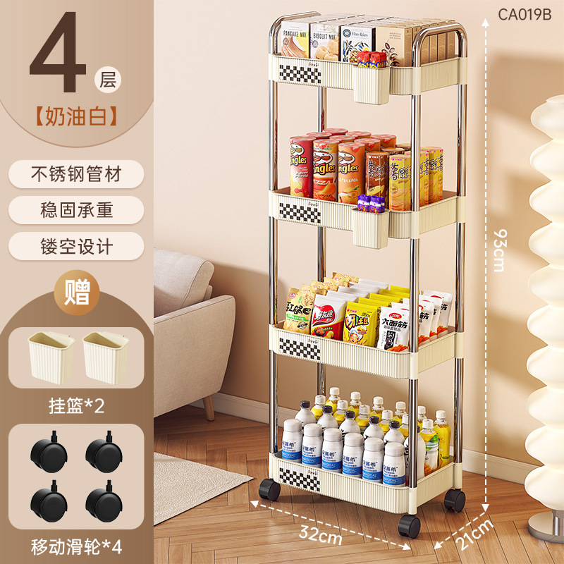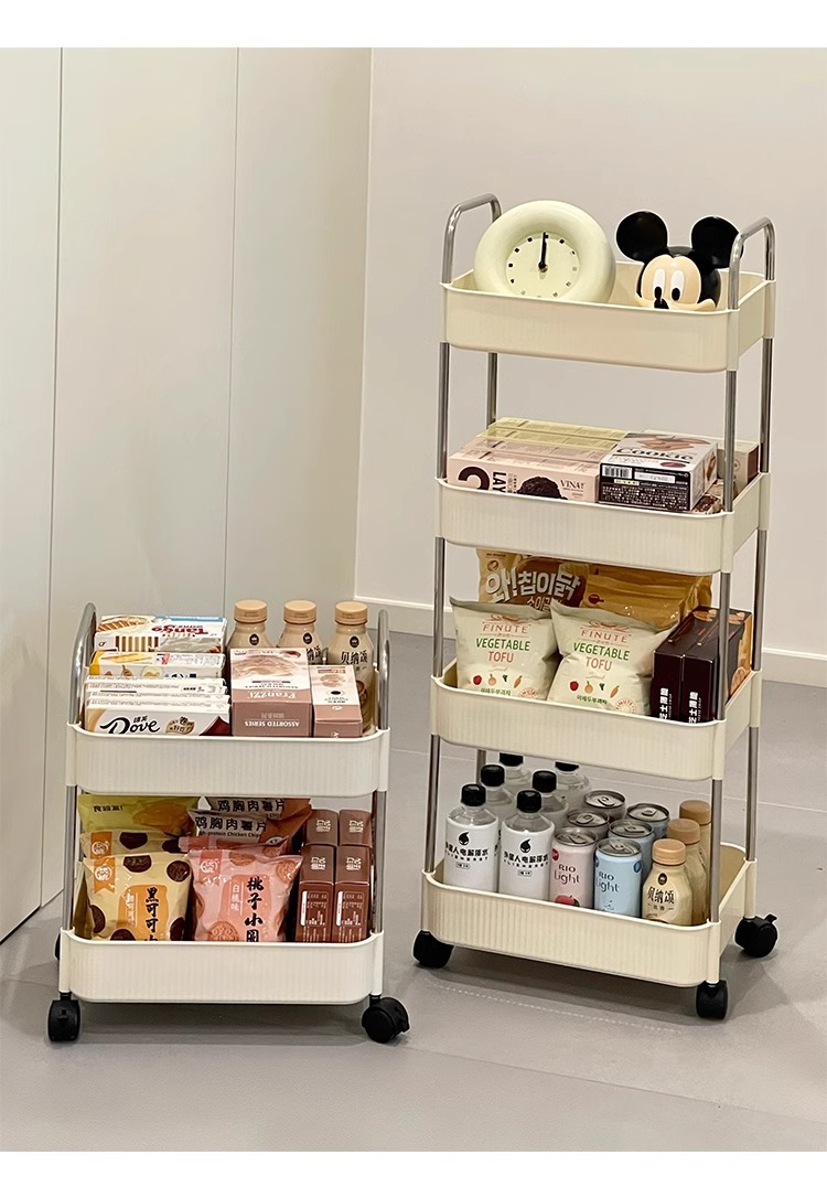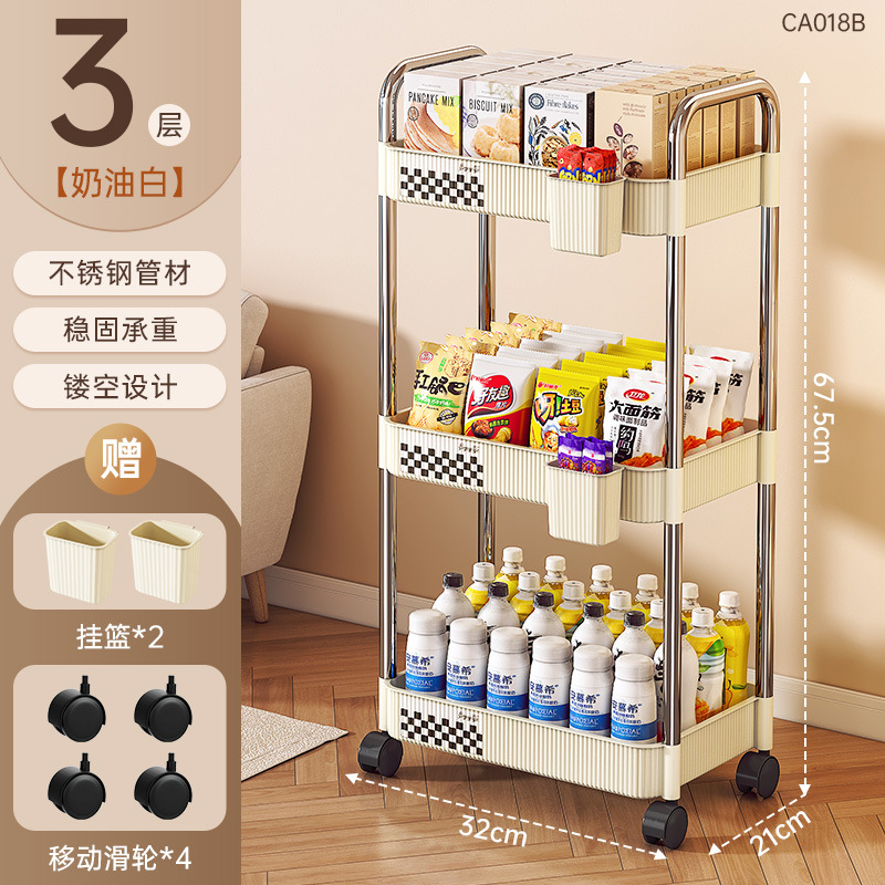 국경 간 공급 크림 수직 패턴 모바일 카트 저장 랙 가정용 바닥 다층 저장 랙 어린이 스낵 카트