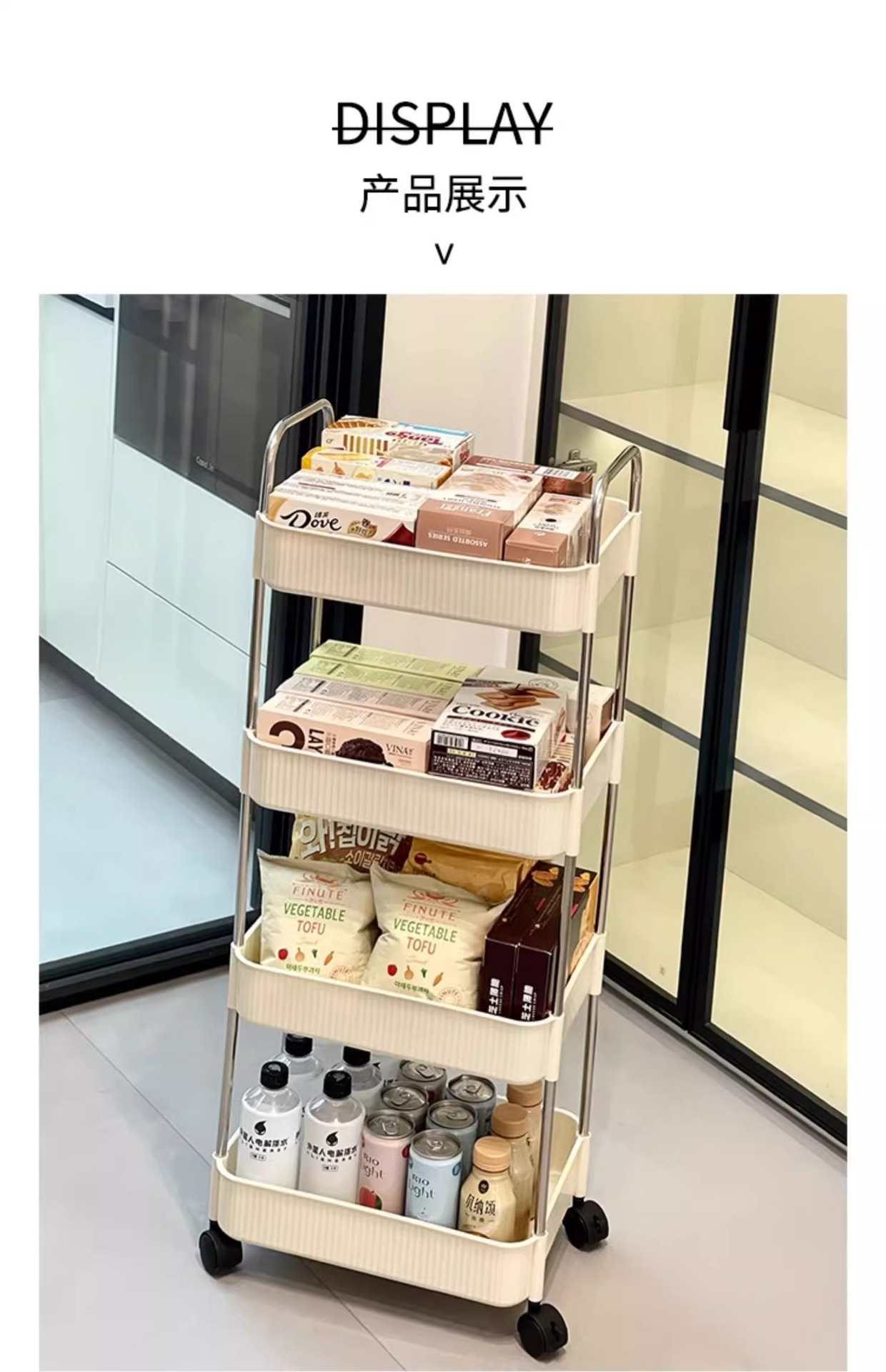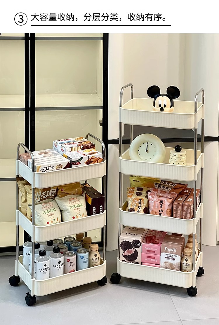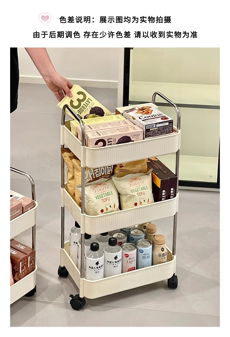 국경 간 공급 크림 수직 패턴 모바일 카트 저장 랙 가정용 바닥 다층 저장 랙 어린이 스낵 카트스토어 가기