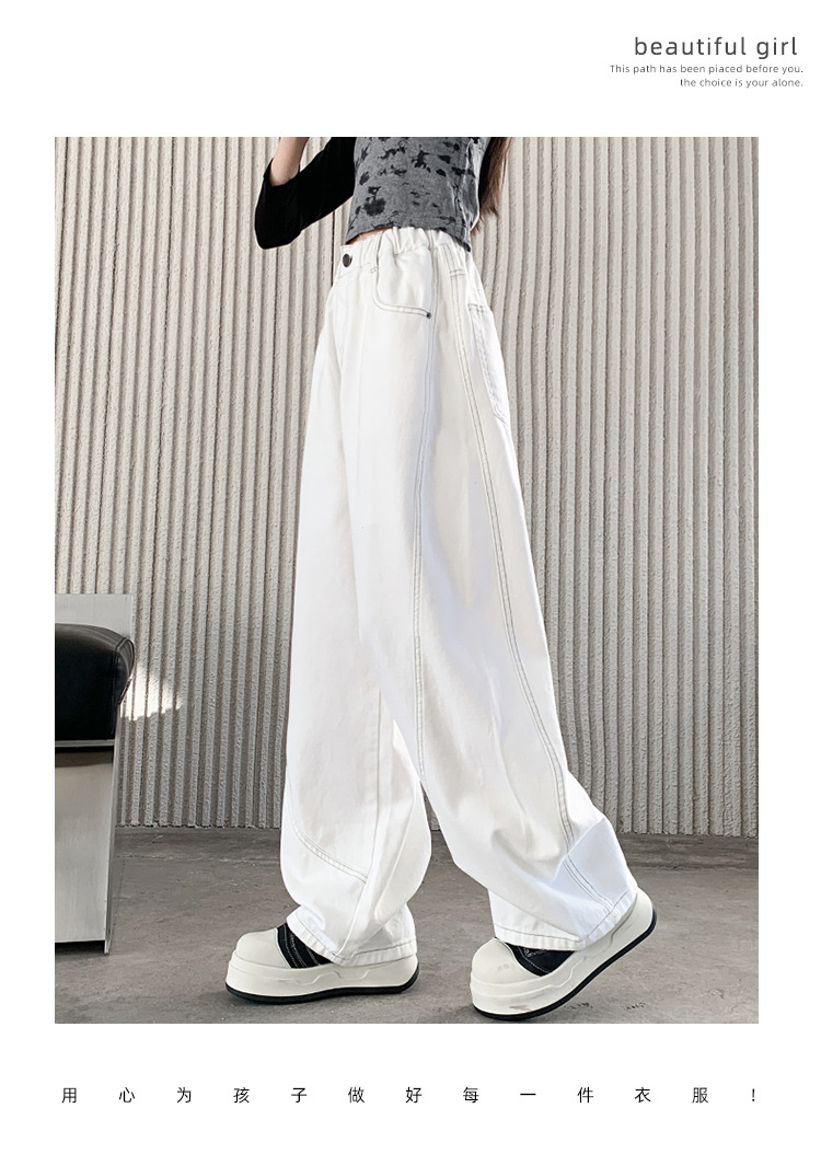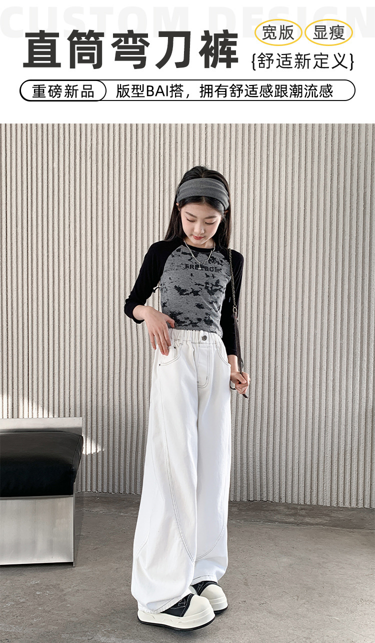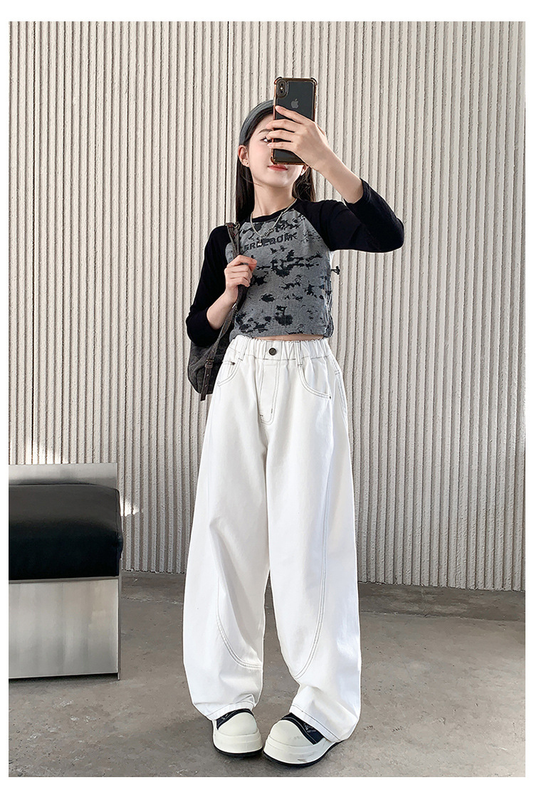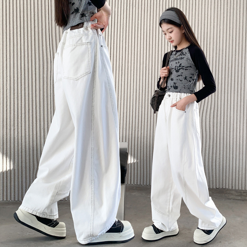소녀 바지 봄과 가을 외부 큰 어린이 봄 데님 바지 2025 새로운 어린이 느슨한 캐주얼 바지 소녀