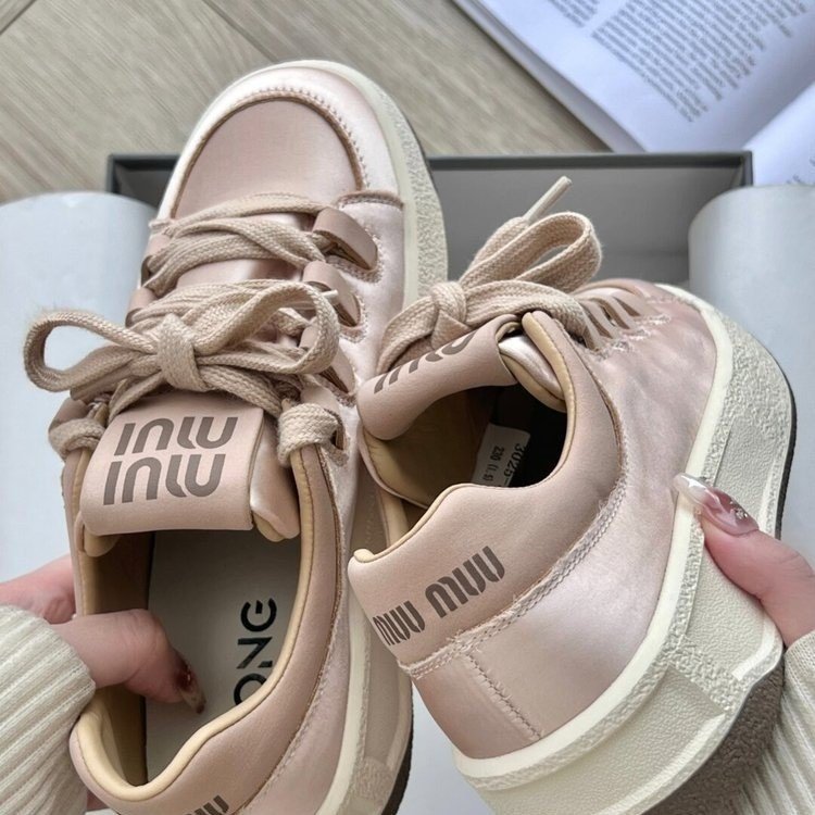 핫 로즈 골드 새틴 신발 여성의 2024 새로운 두꺼운 실크 신발 캐주얼 운동화 오리지널스토어 가기