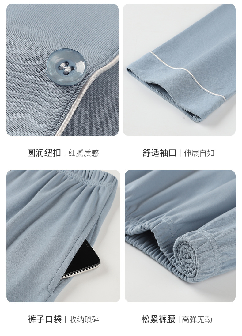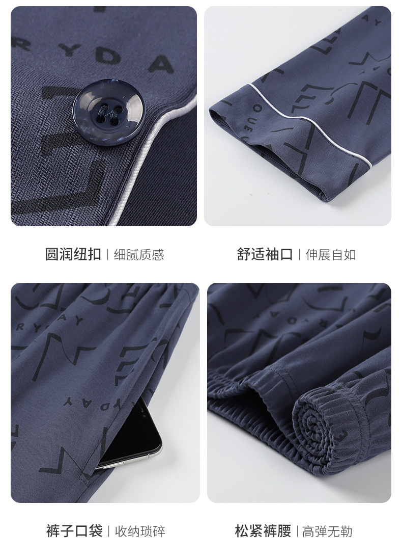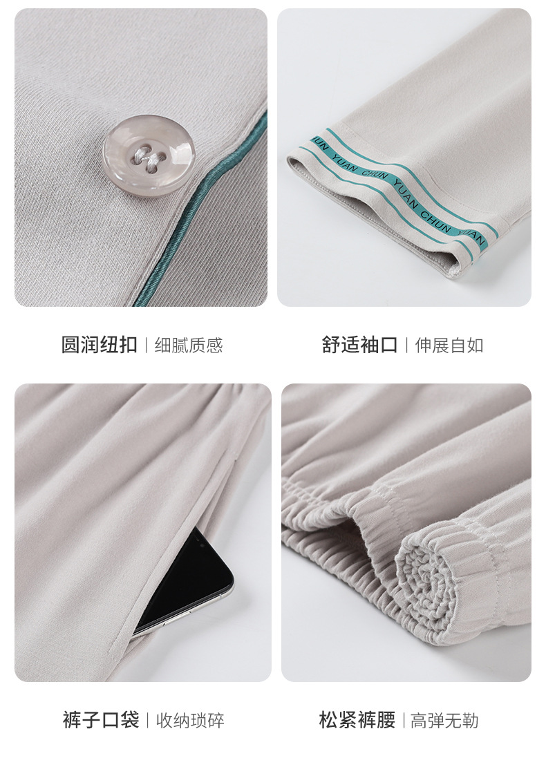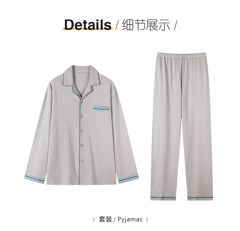 [항균성 신장면] 잠옷 남자 봄 · 가을 100 순면 긴소매 카디건 얇은 플러스 사이즈 홈 세트