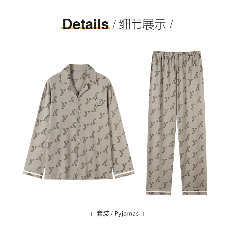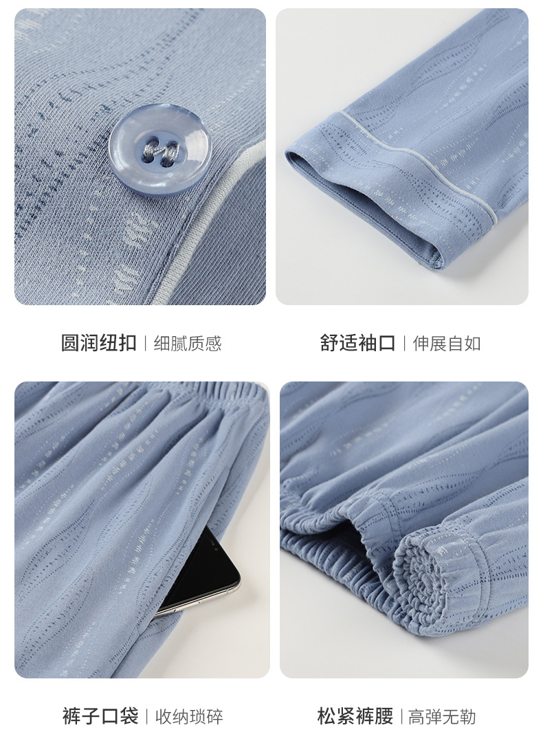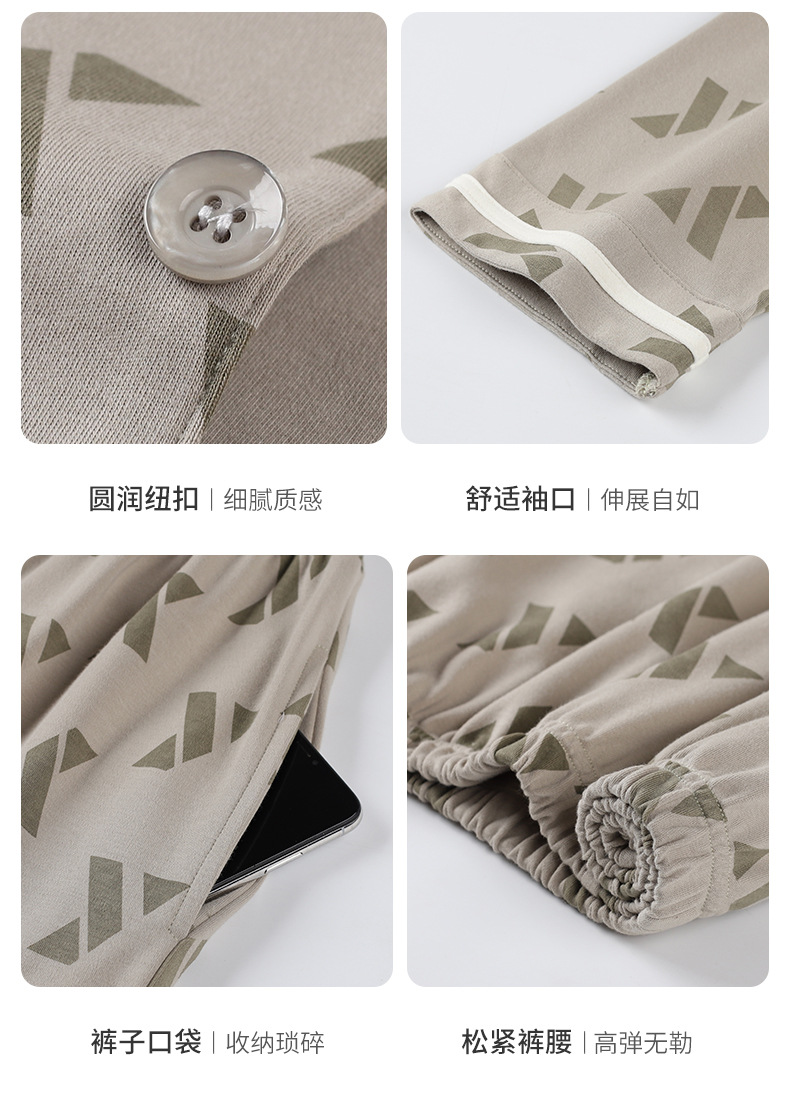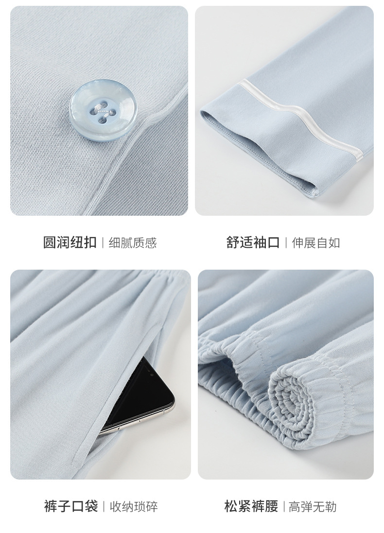 [항균성 신장면] 잠옷 남자 봄 · 가을 100 순면 긴소매 카디건 얇은 플러스 사이즈 홈 세트