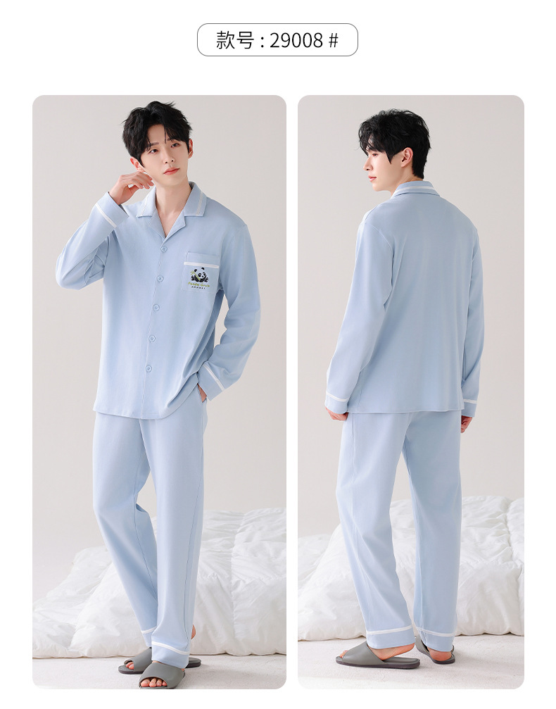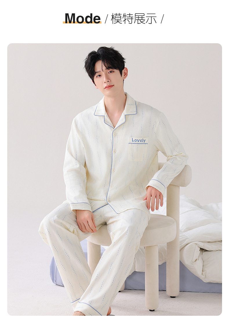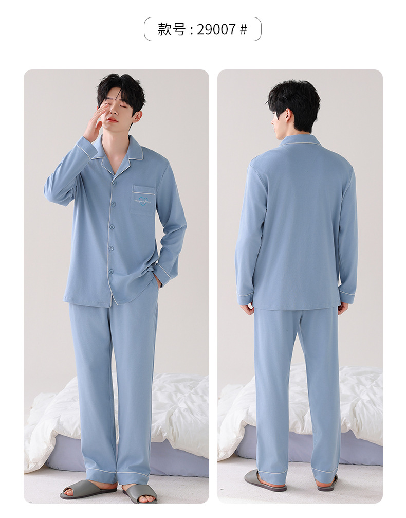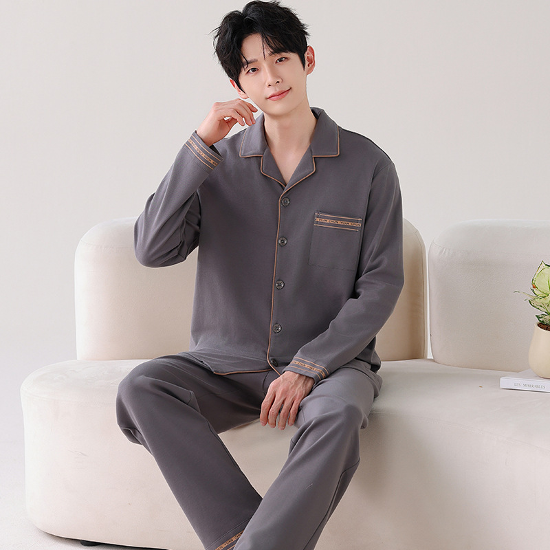 [항균성 신장면] 잠옷 남자 봄 · 가을 100 순면 긴소매 카디건 얇은 플러스 사이즈 홈 세트스토어 가기