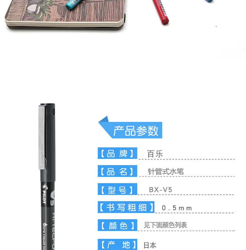 일본 PILOT Baile V5 젤 펜 스트레이트 액체 학생 시험 블랙 펜 컬러 바늘 간판 0.5