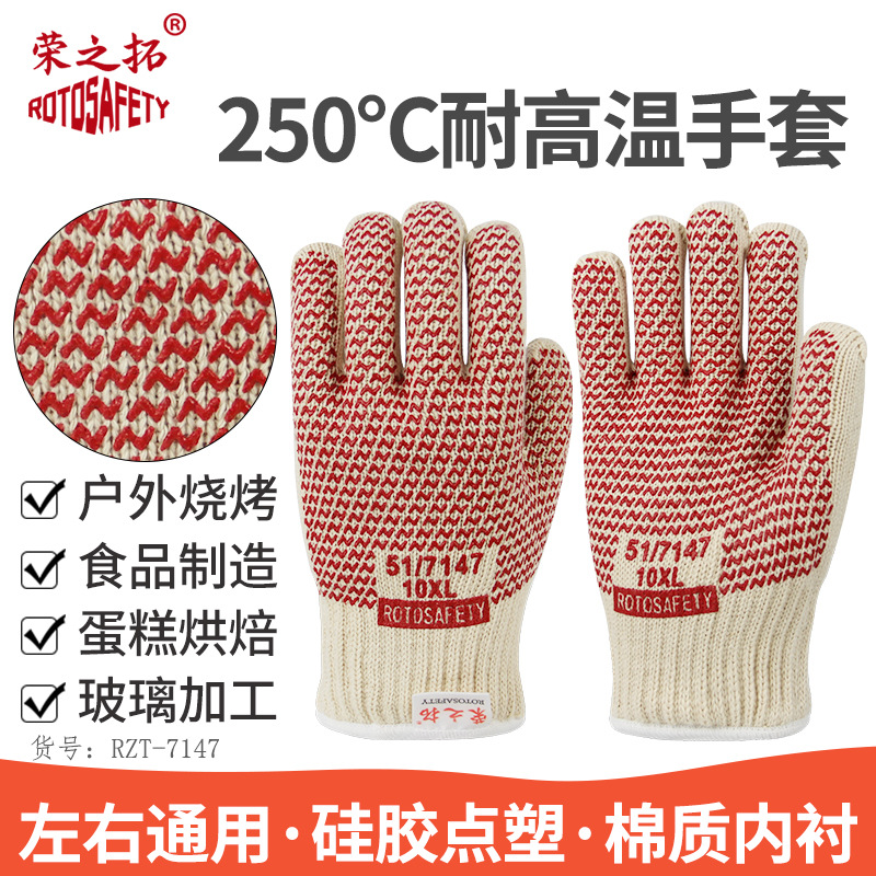 7147 고온 방지 장갑 방열 유리 가공 튀긴 차 베이킹 더블 레이어 두꺼운 왼쪽과 오른손 유니버설 싱글스토어 가기