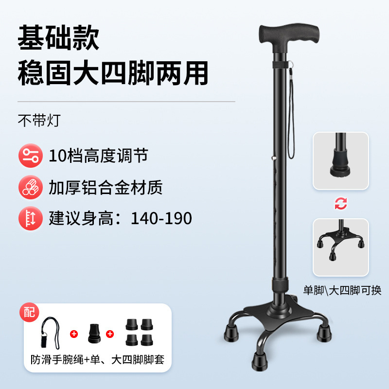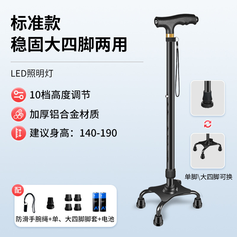 노인을위한 노인의 목발 개폐식 네 다리 워킹 스틱 경량 다기능 미끄럼 방지 워킹 스틱 노인을위한 지팡이