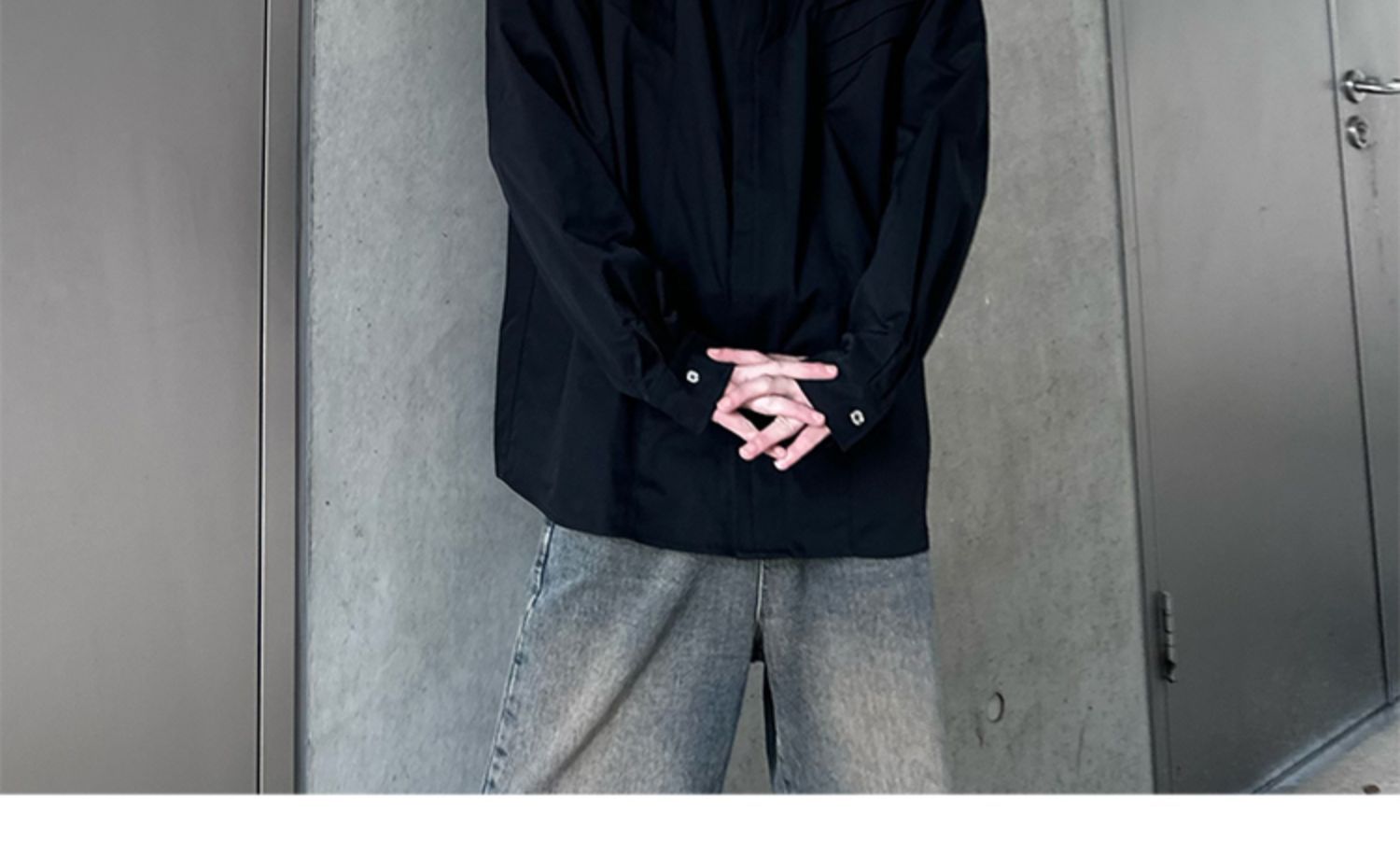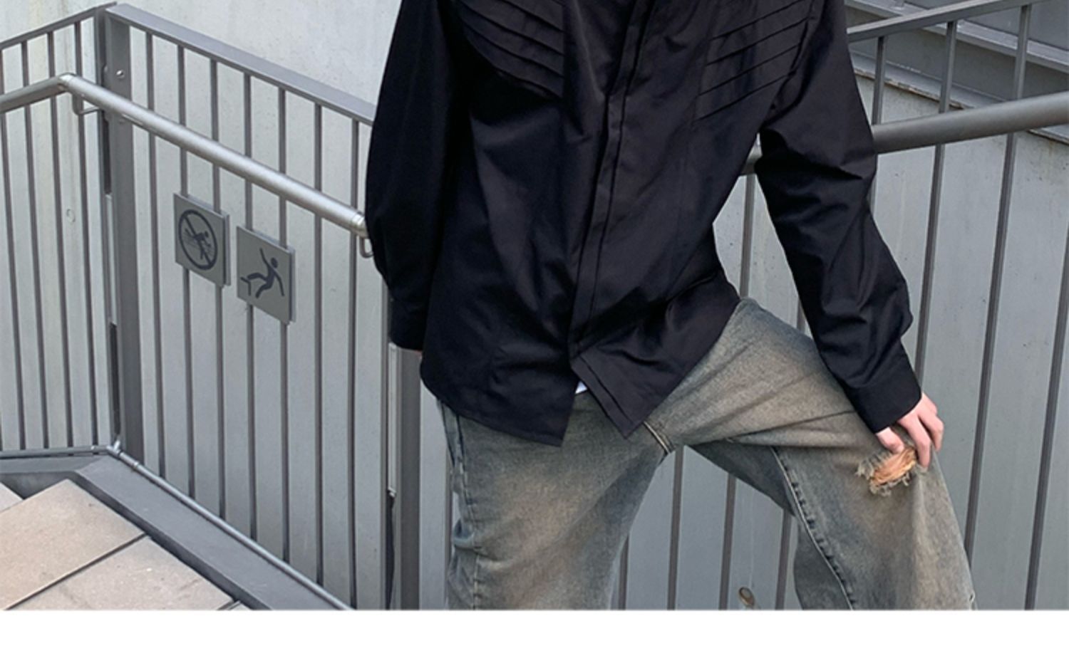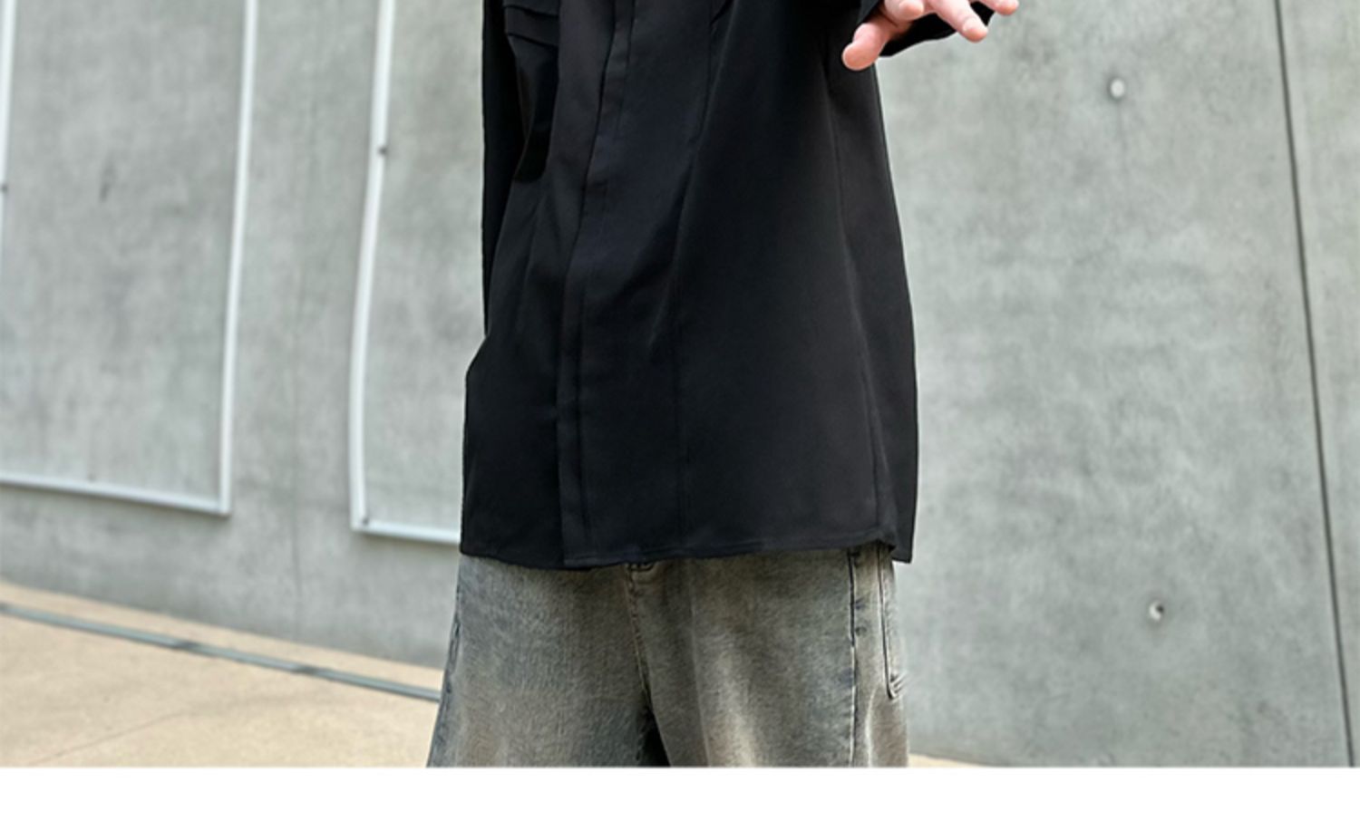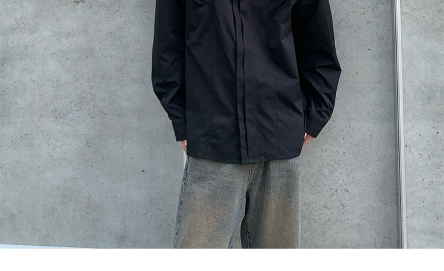 틈새 해체 숄더 패드 셔츠 남성 여름 하이 엔드 센스 디자인 센스 긴팔 셔츠 프로필 스플릿 칼라 재킷스토어 가기