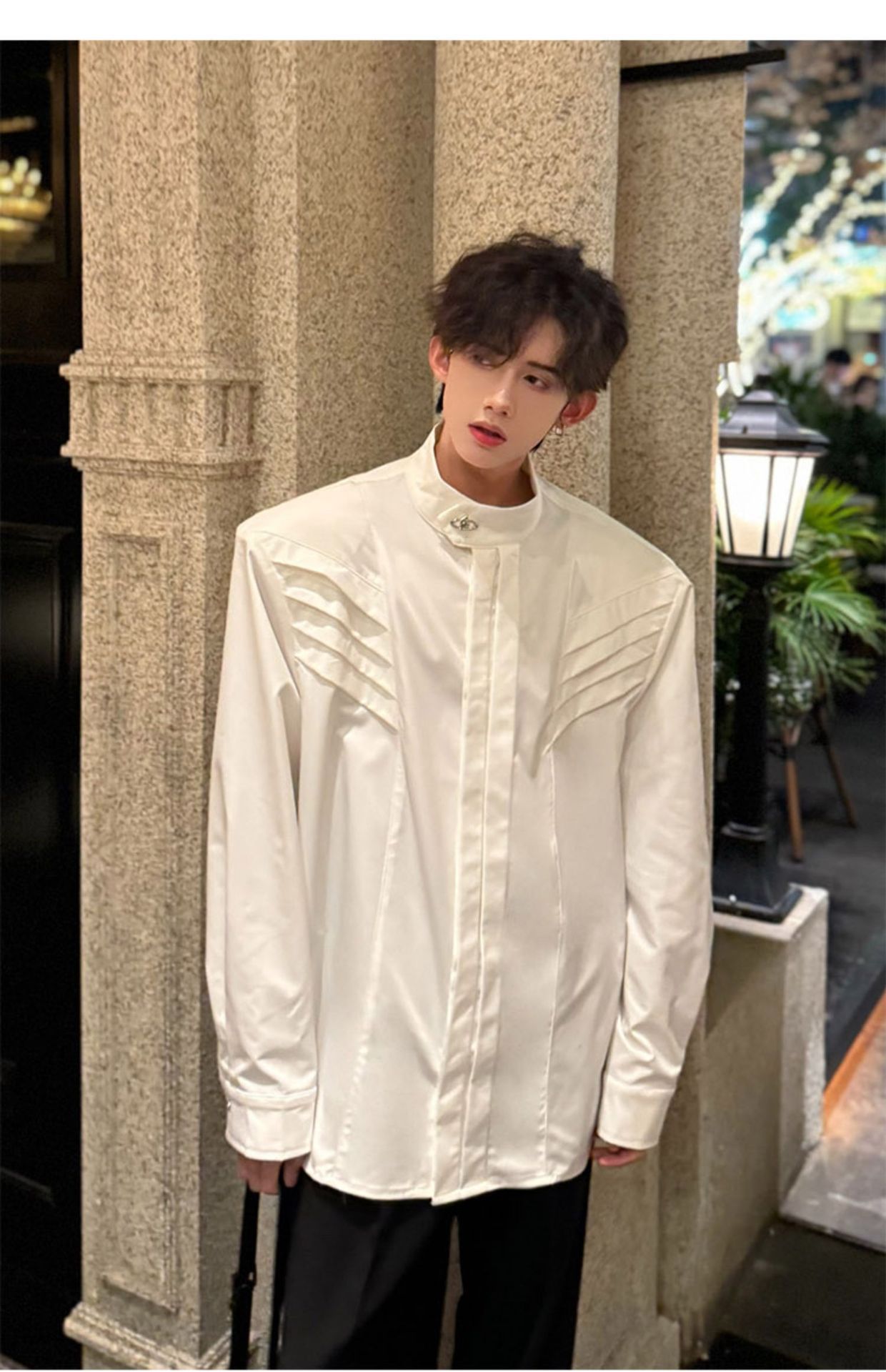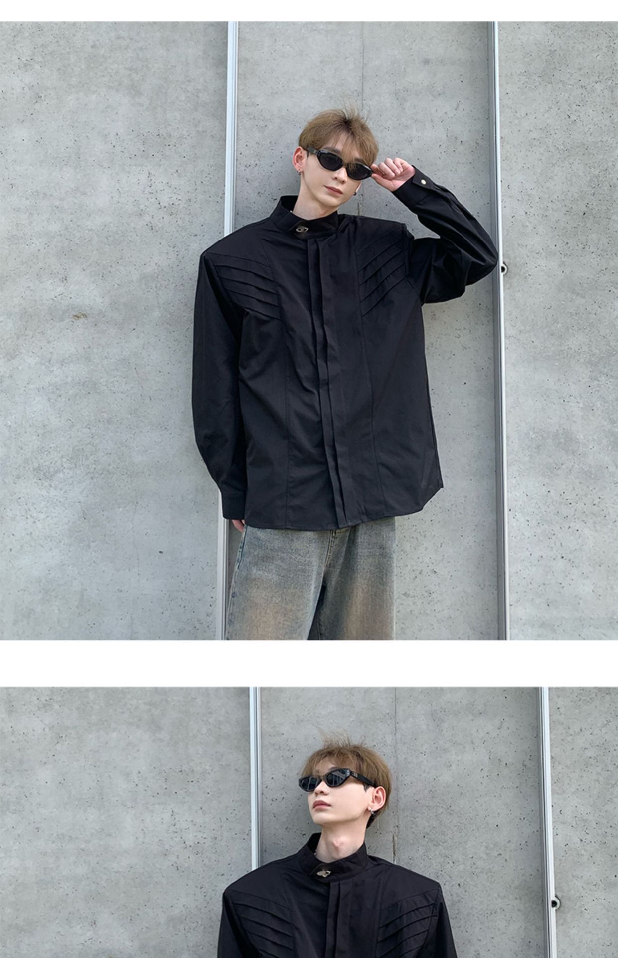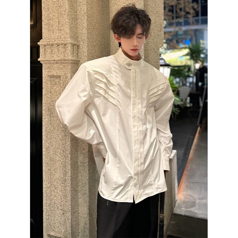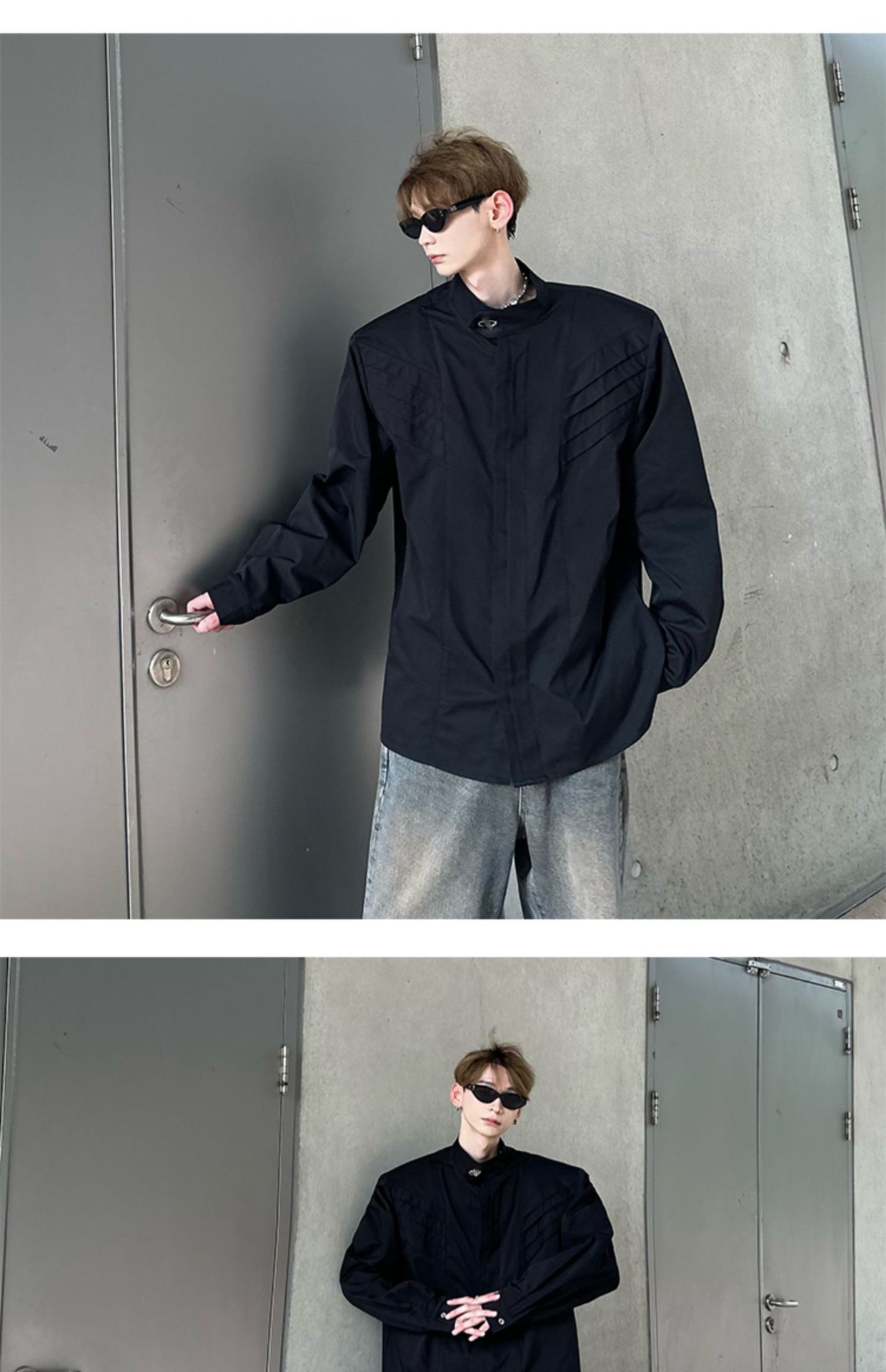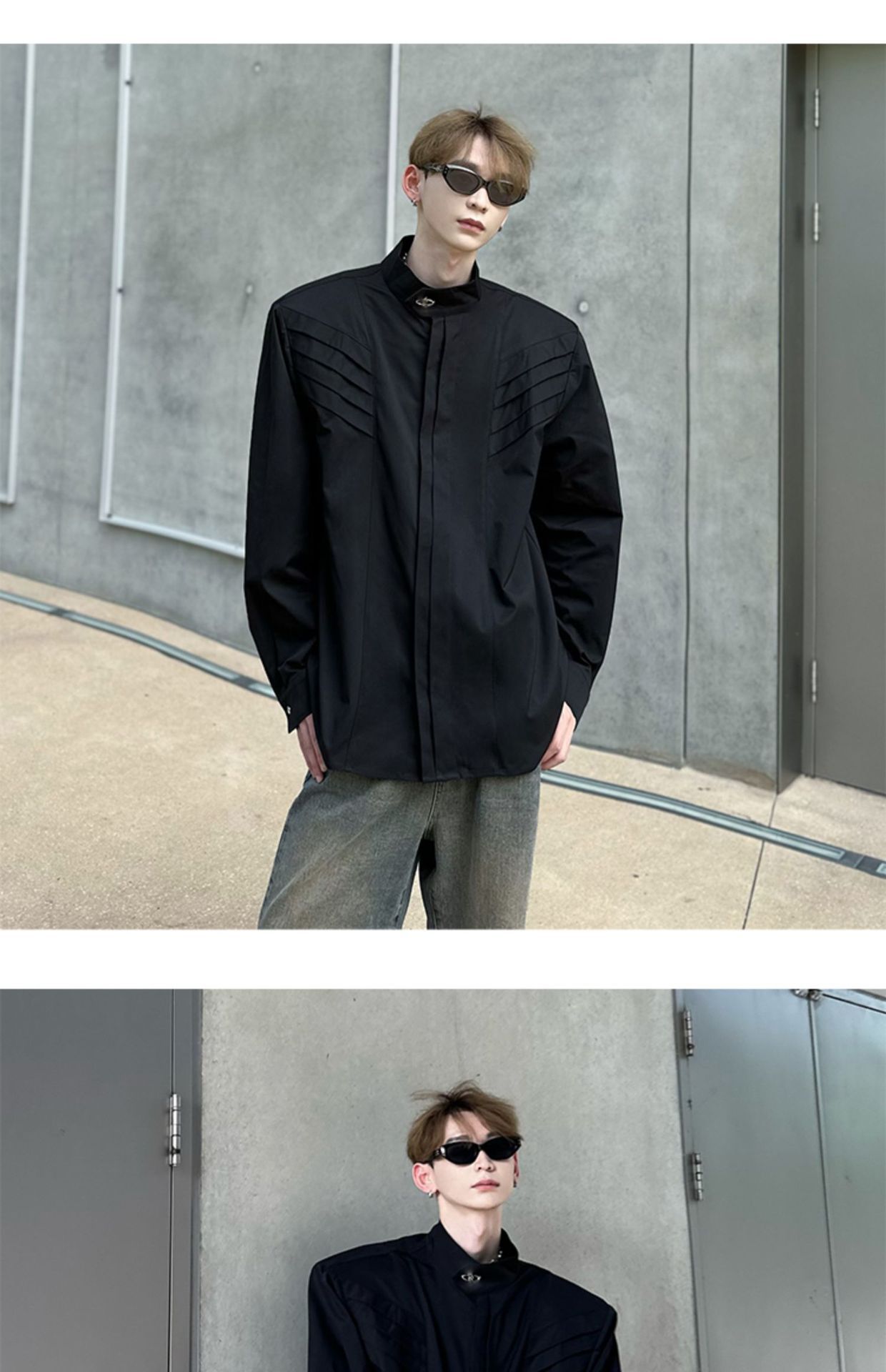 틈새 해체 숄더 패드 셔츠 남성 여름 하이 엔드 센스 디자인 센스 긴팔 셔츠 프로필 스플릿 칼라 재킷
