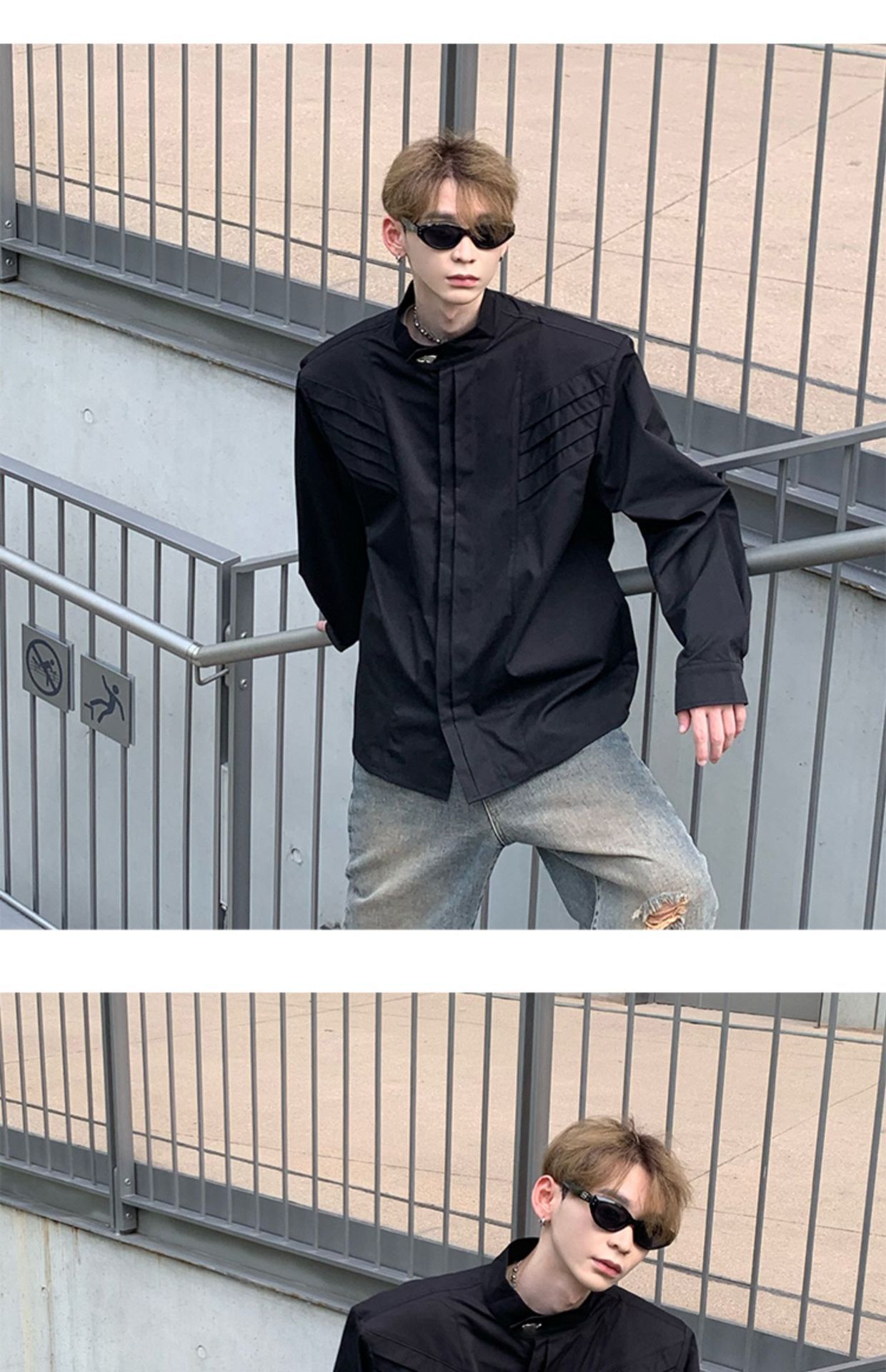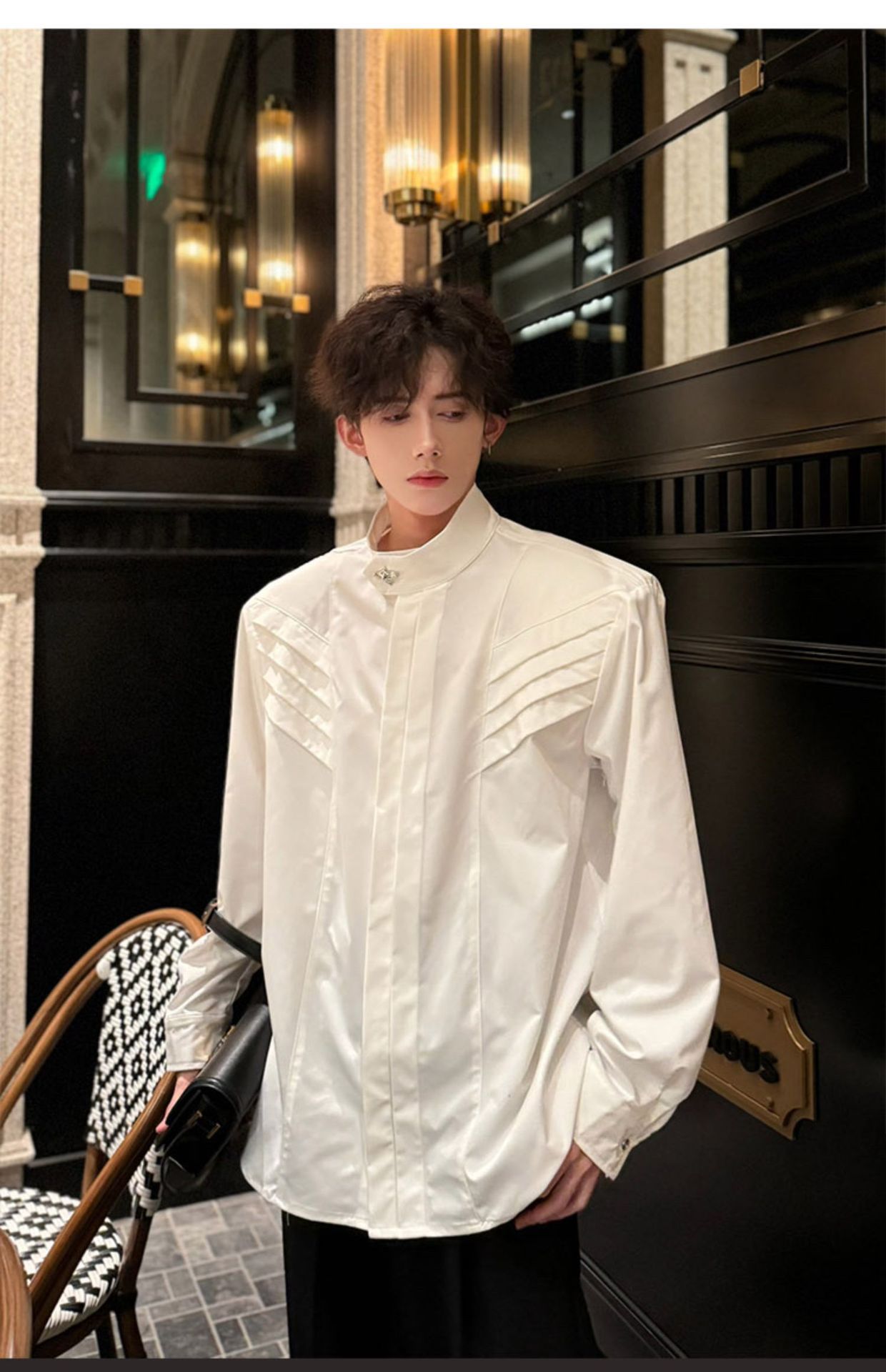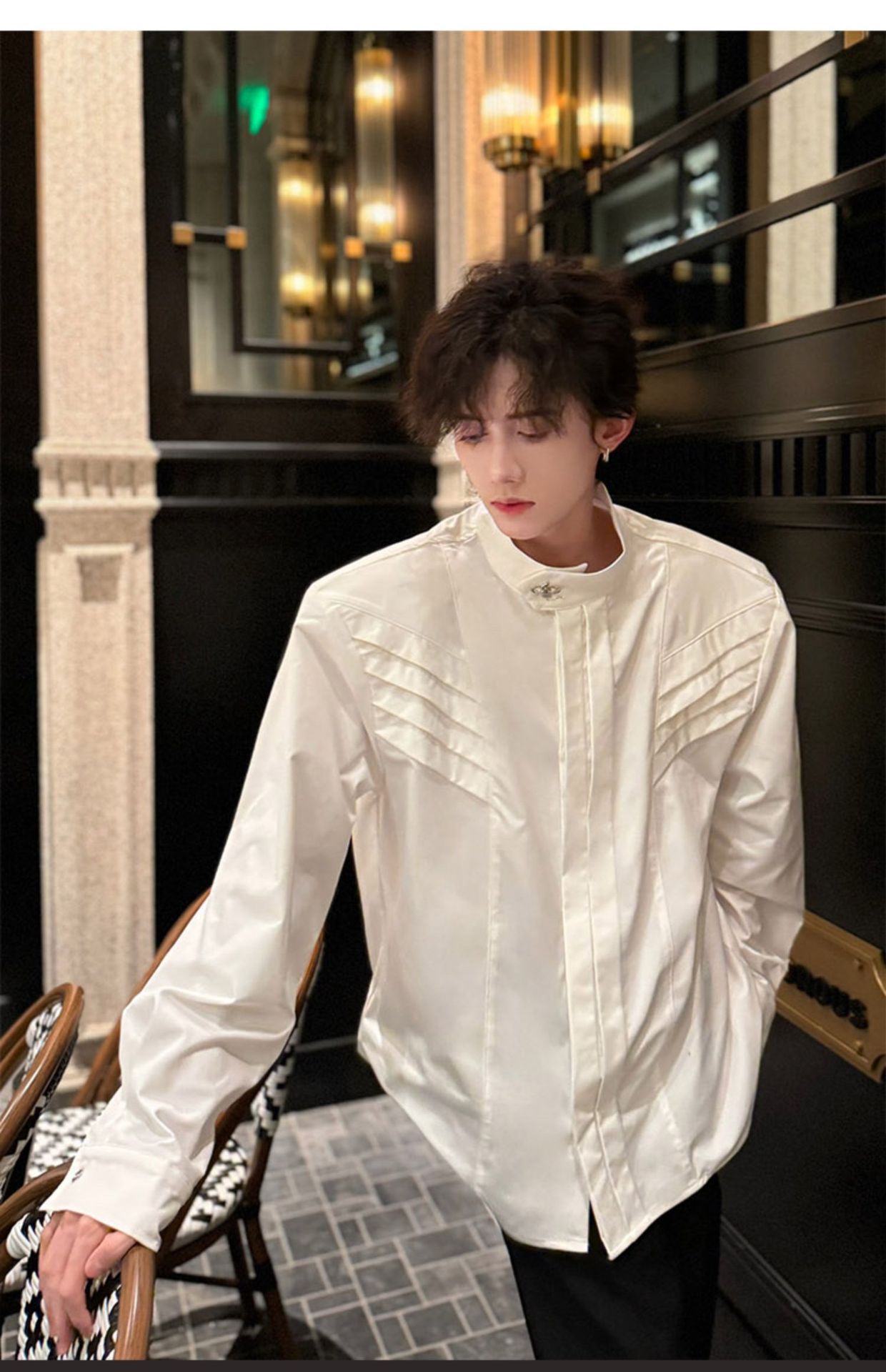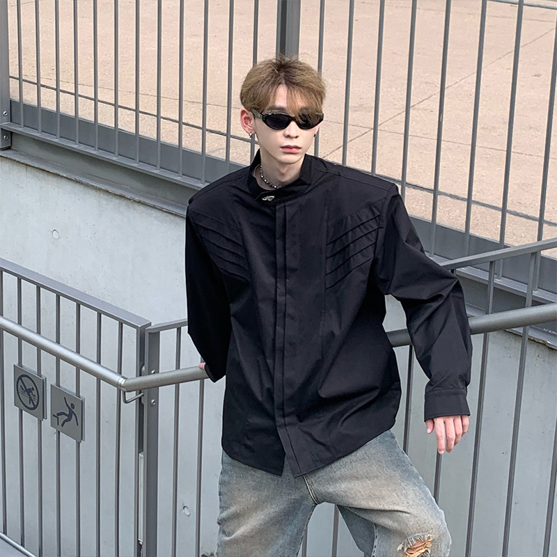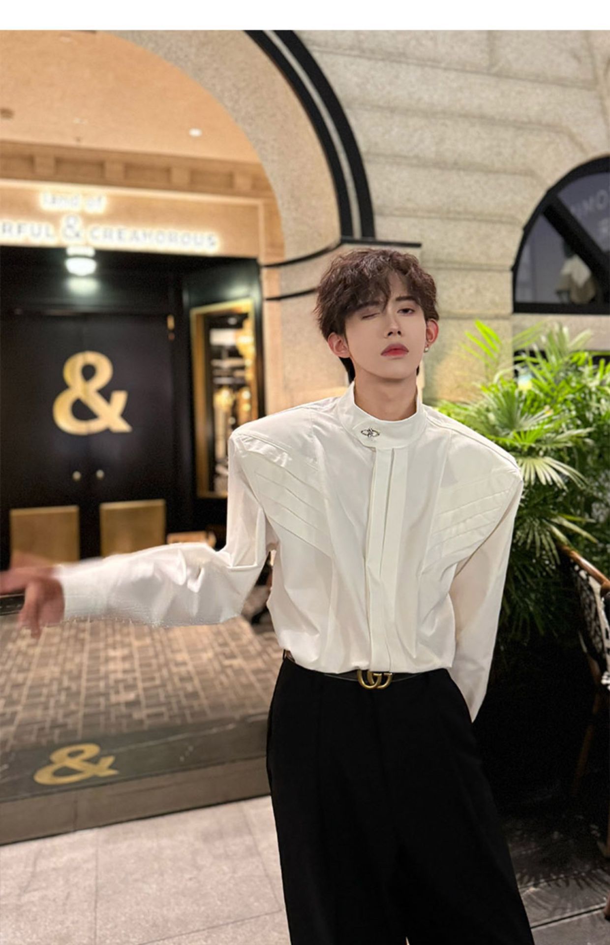 틈새 해체 숄더 패드 셔츠 남성 여름 하이 엔드 센스 디자인 센스 긴팔 셔츠 프로필 스플릿 칼라 재킷