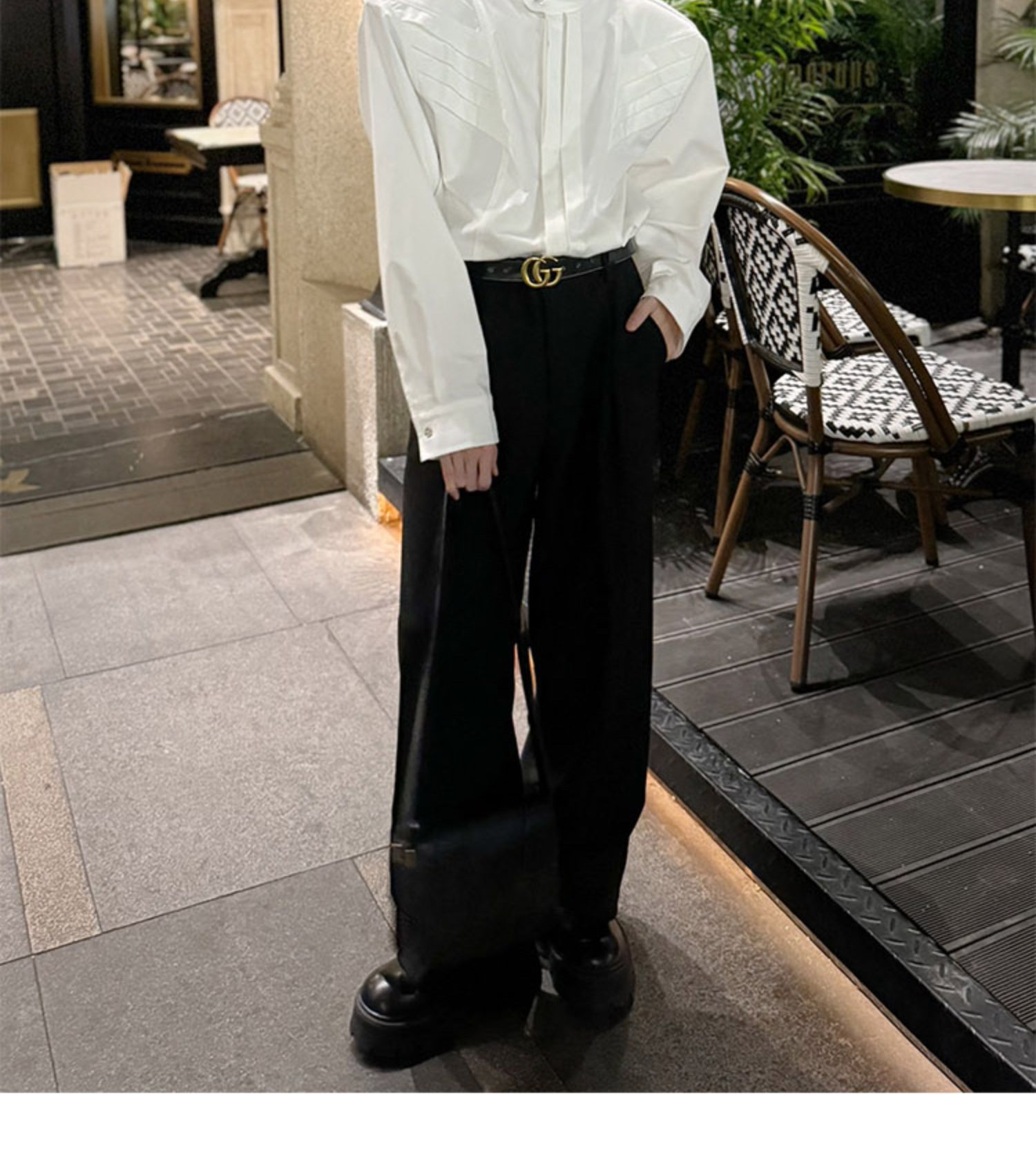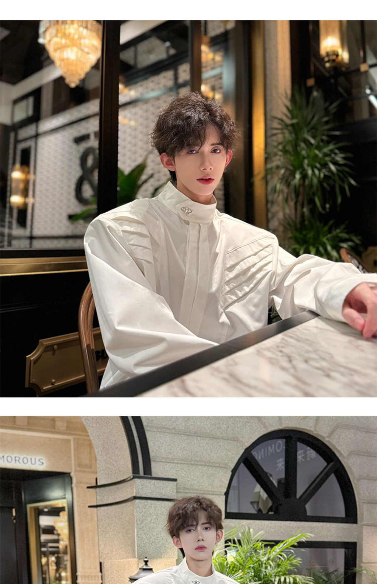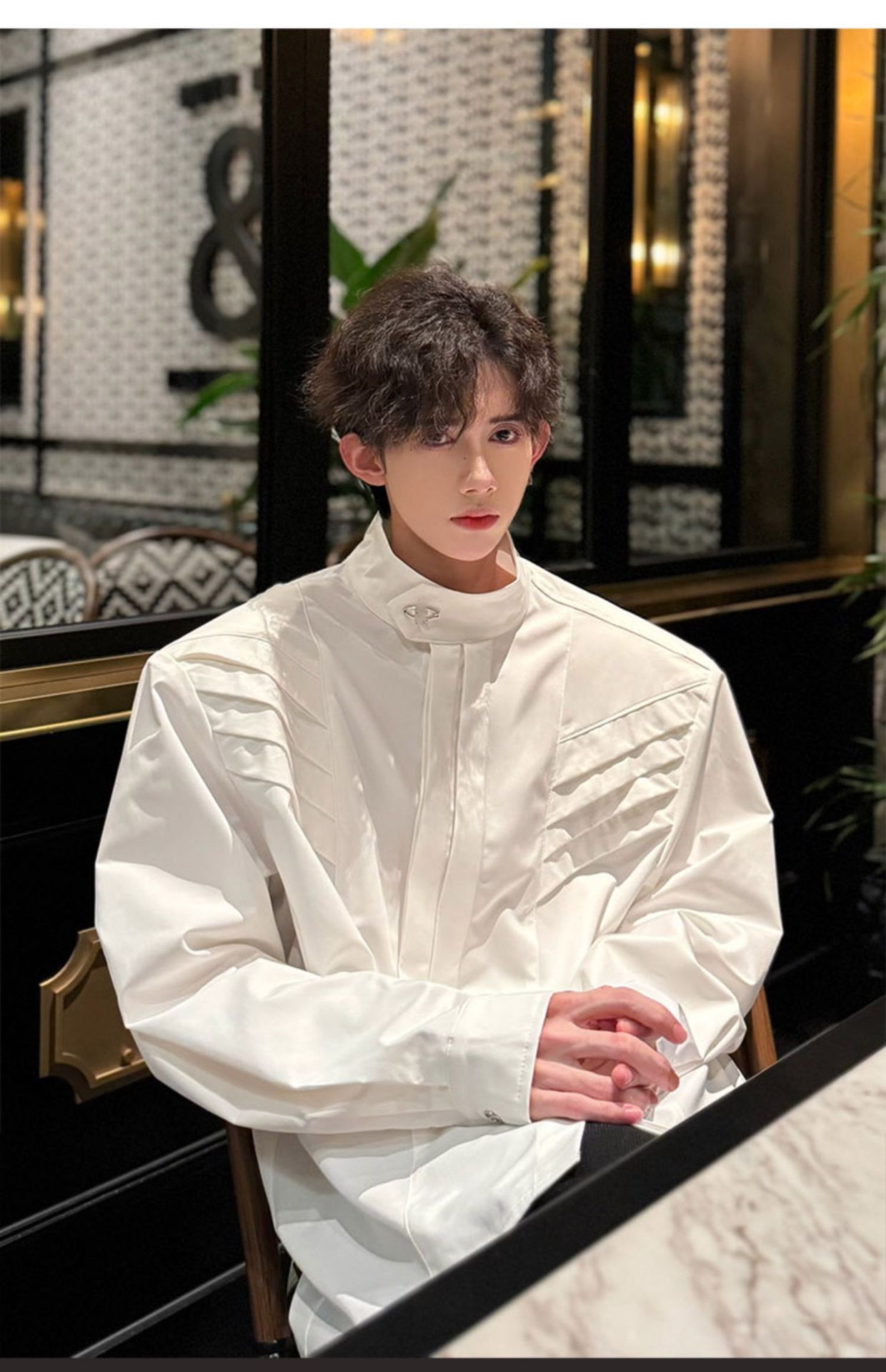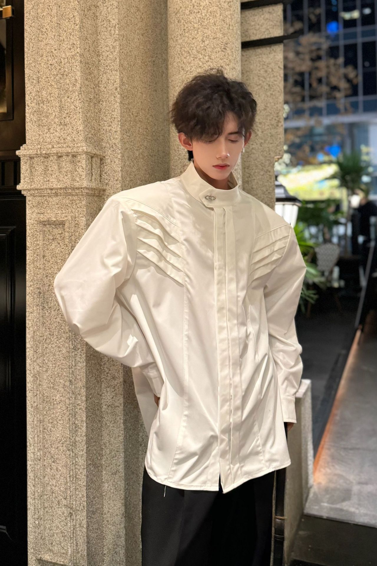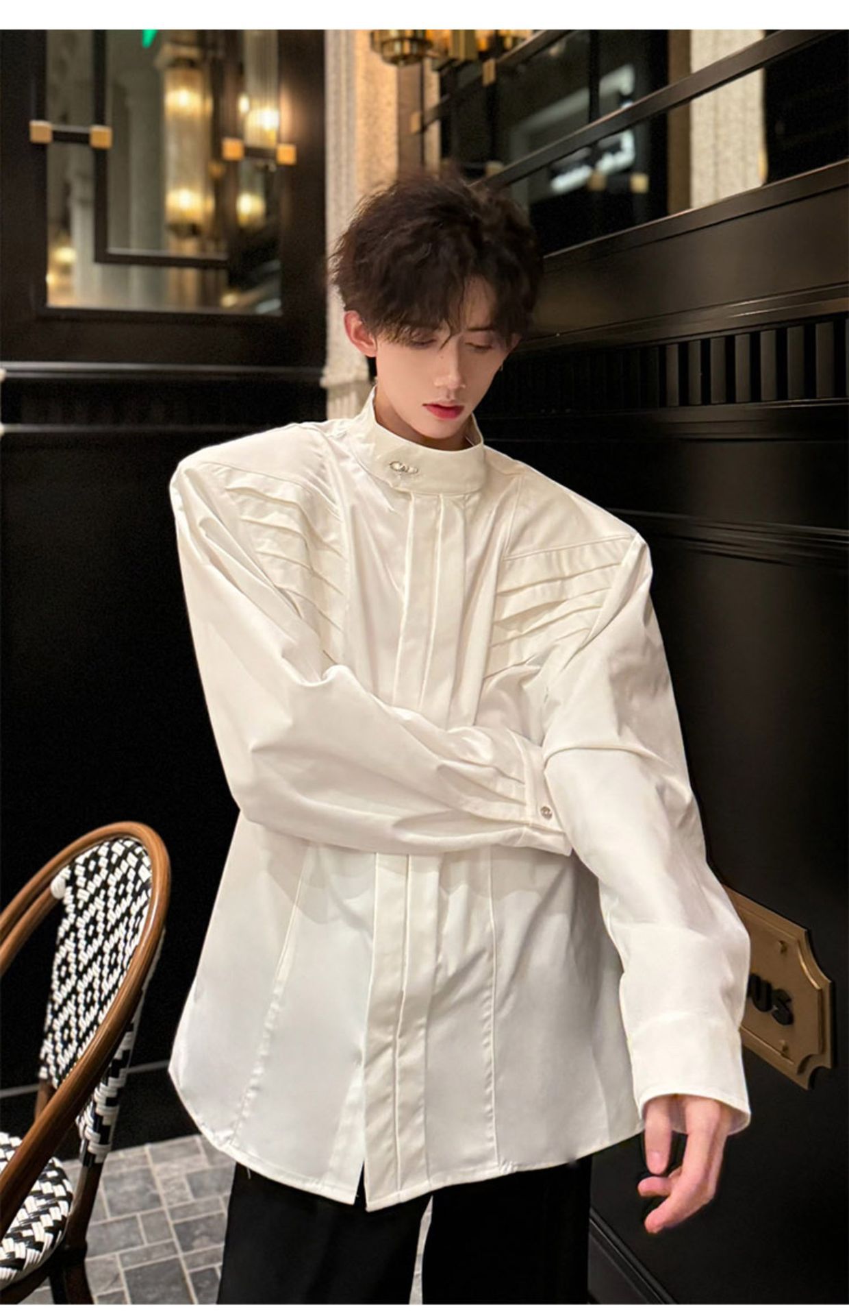 틈새 해체 숄더 패드 셔츠 남성 여름 하이 엔드 센스 디자인 센스 긴팔 셔츠 프로필 스플릿 칼라 재킷