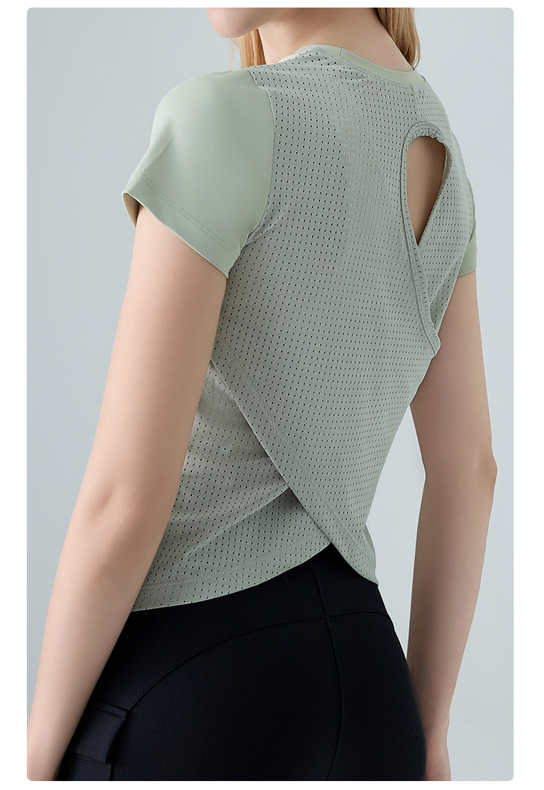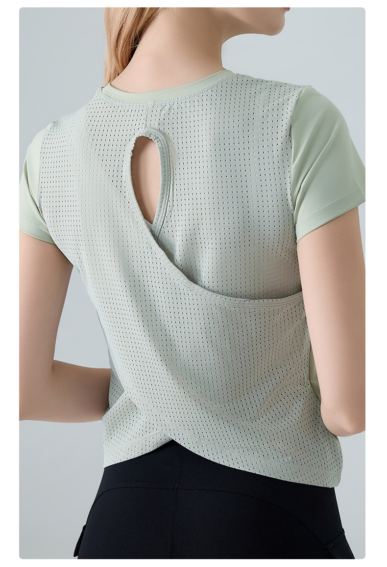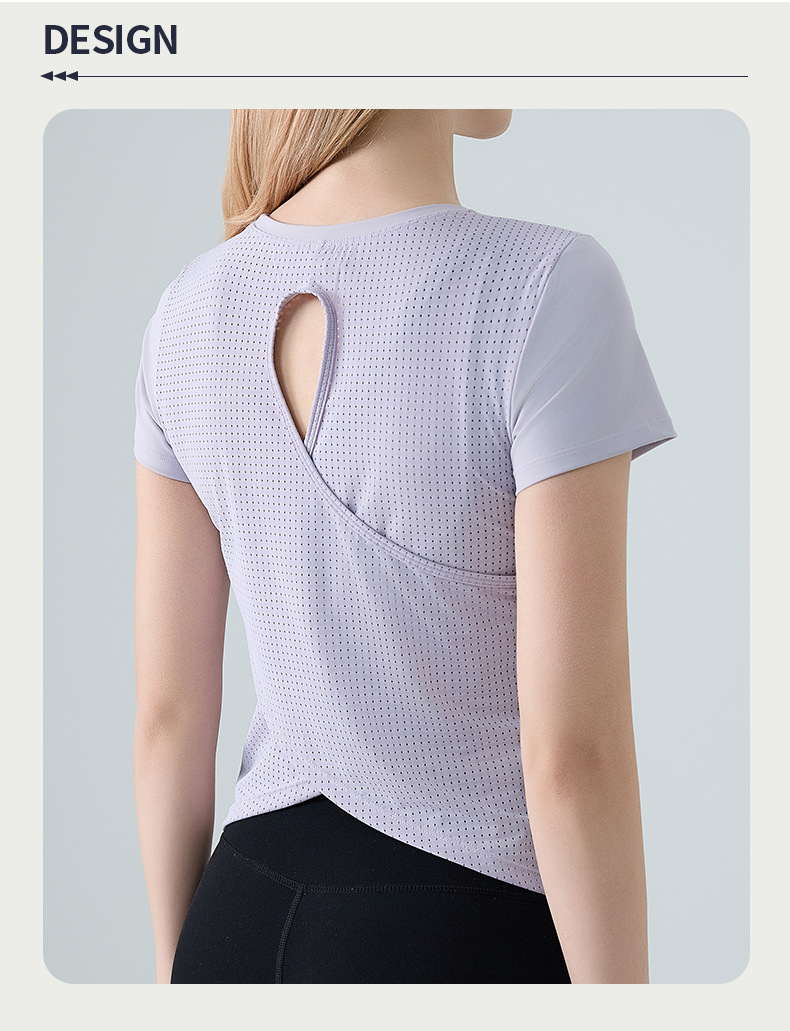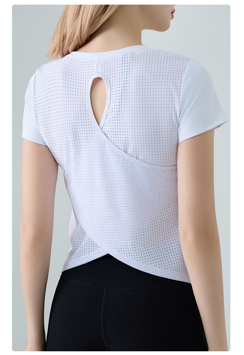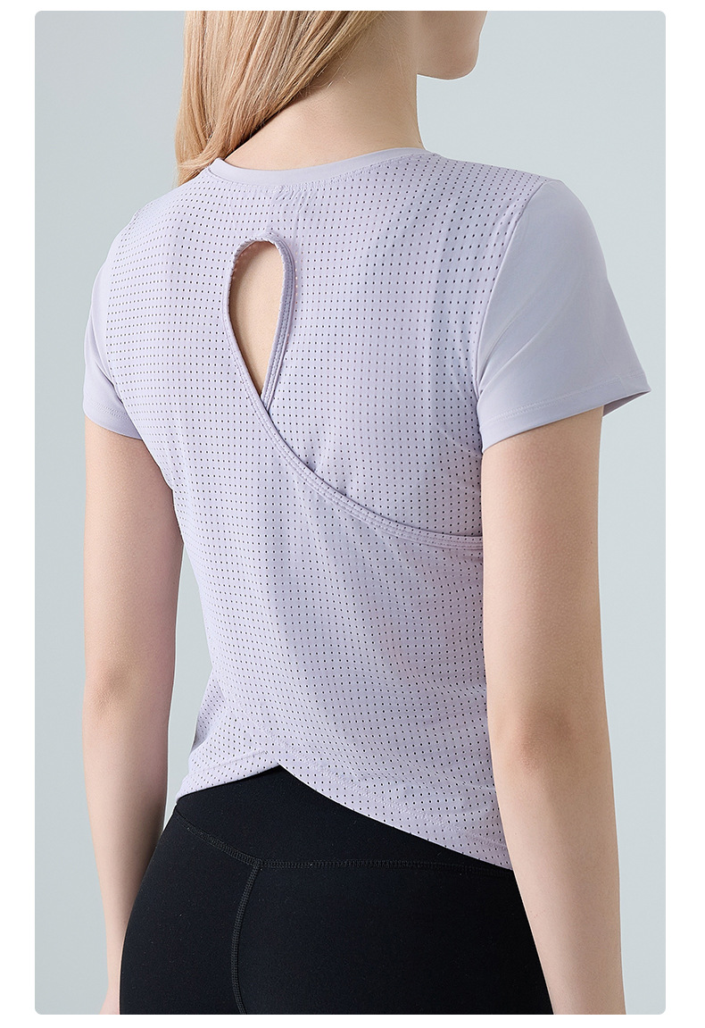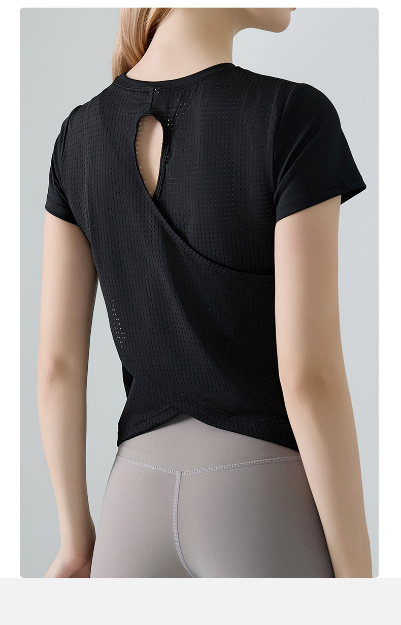 국경 간 선 스크린 빠른 건조 스포츠 피트니스 세트 요가 세트 여성용 반팔 아름다운 백 러닝 티셔츠 봄과 여름 블라우스스토어 가기