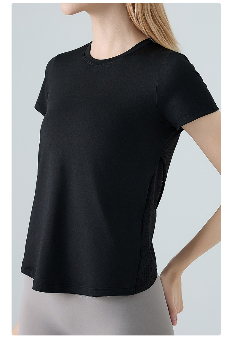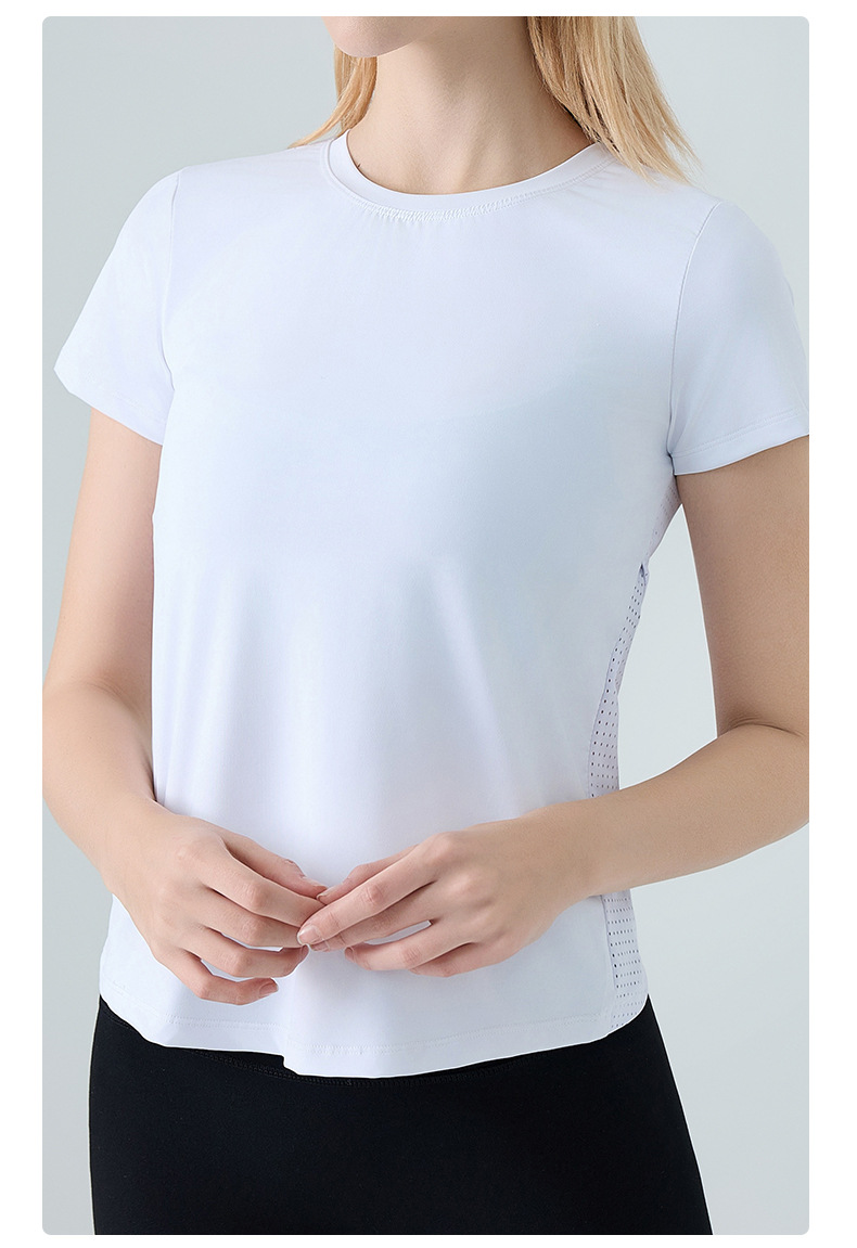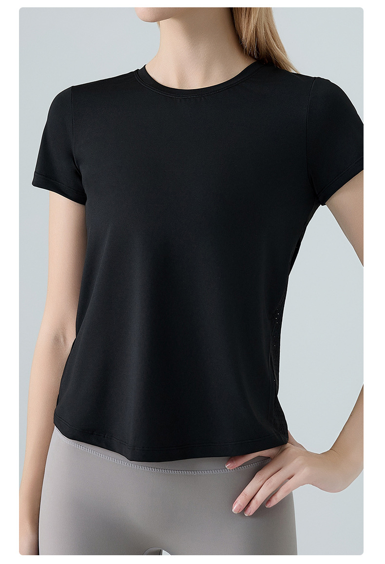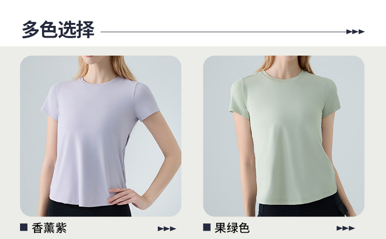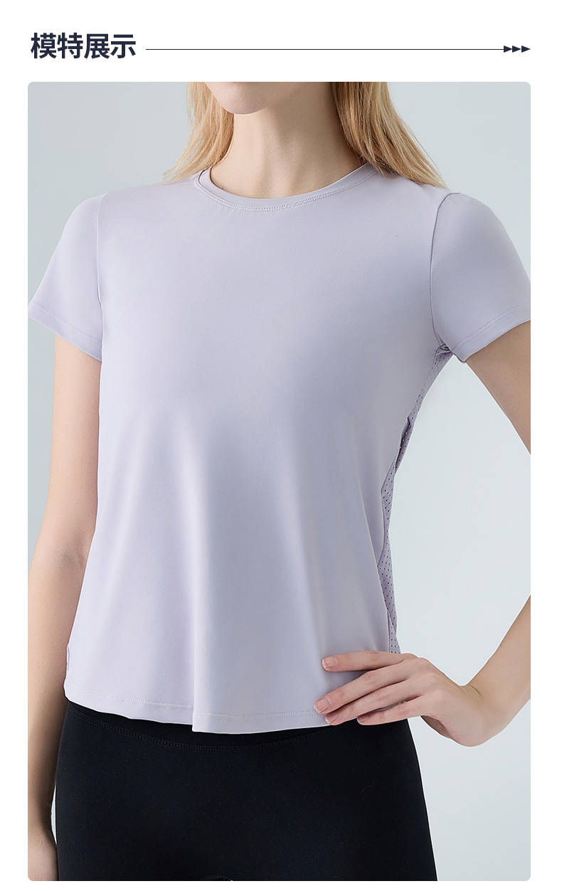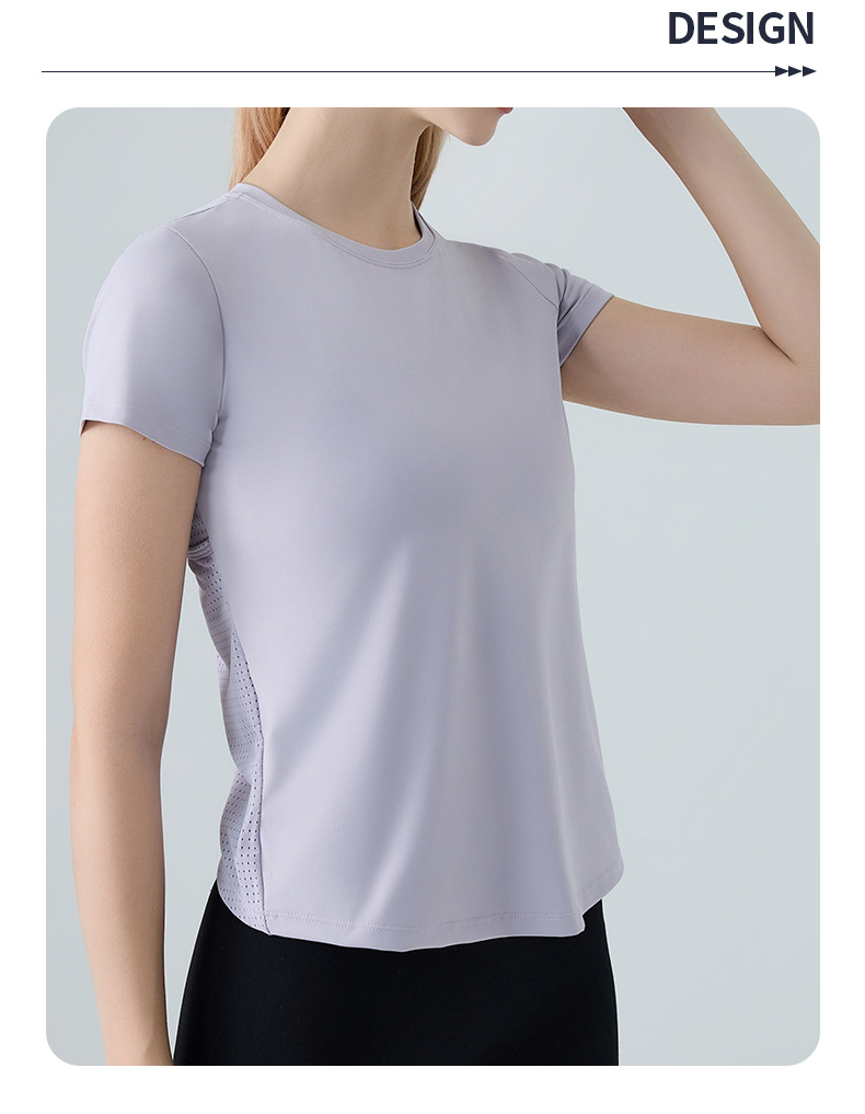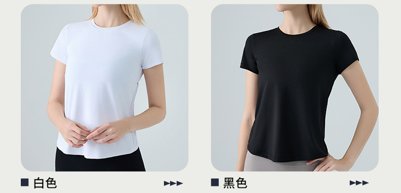 국경 간 선 스크린 빠른 건조 스포츠 피트니스 세트 요가 세트 여성용 반팔 아름다운 백 러닝 티셔츠 봄과 여름 블라우스스토어 가기