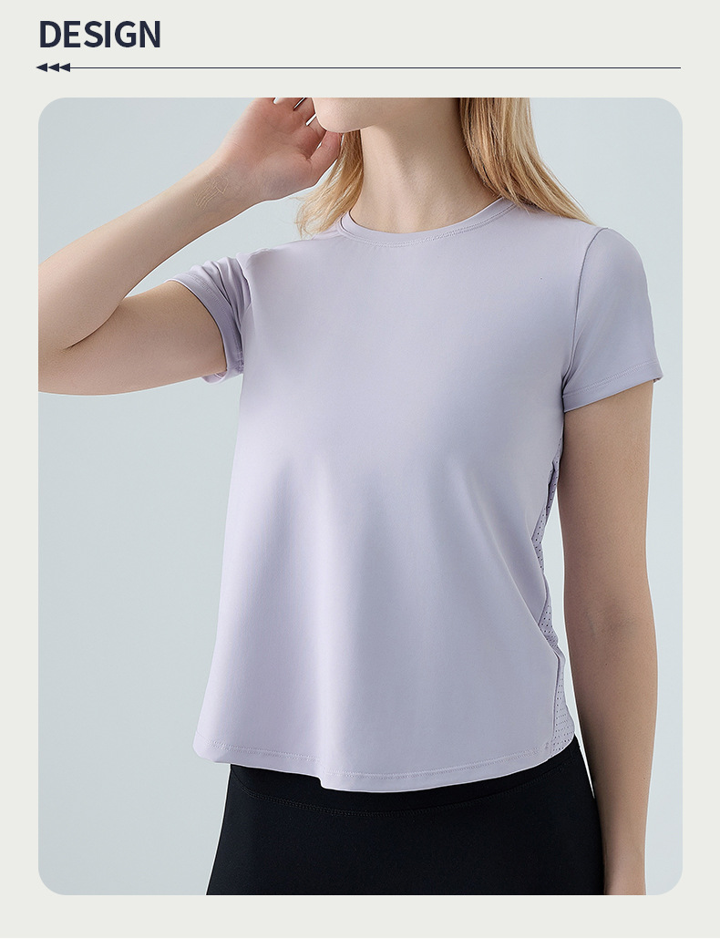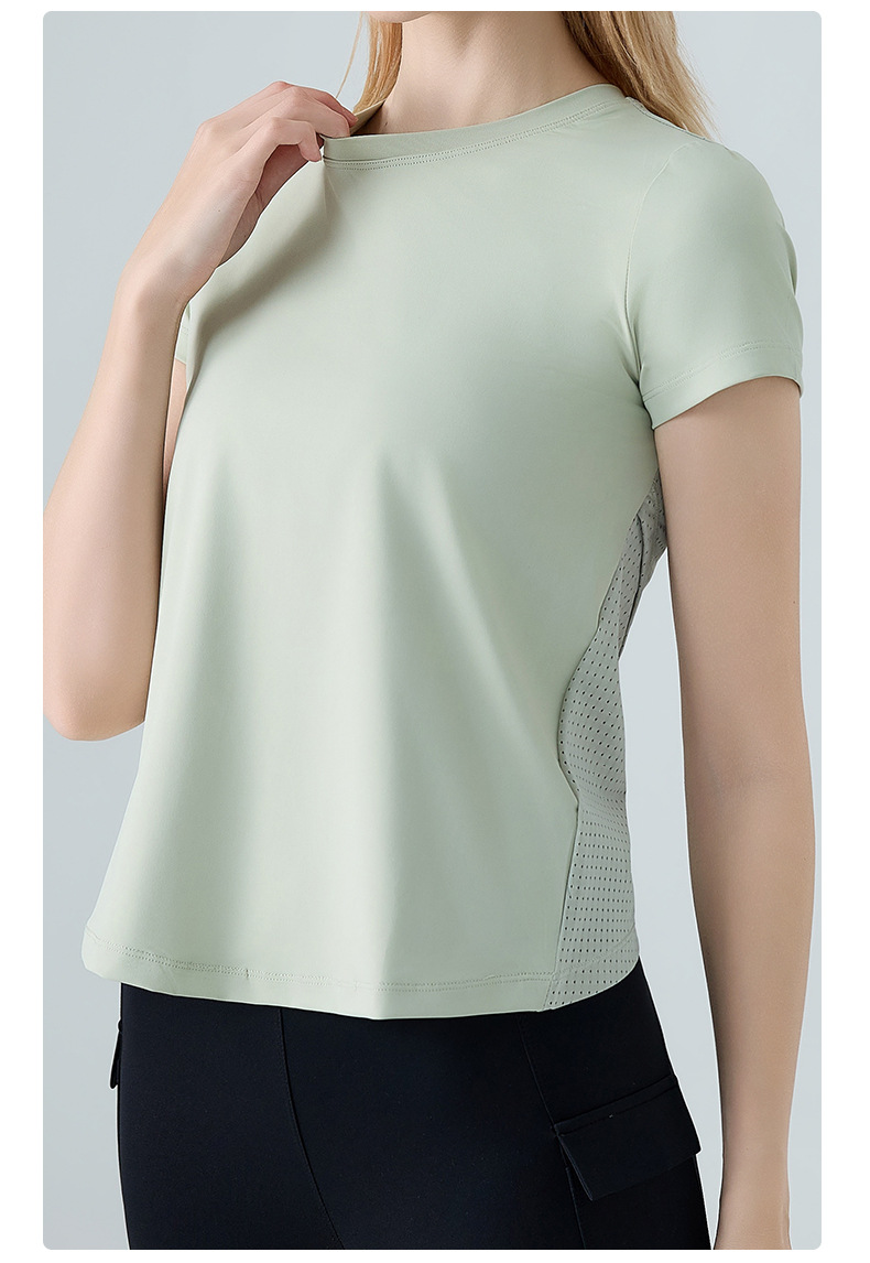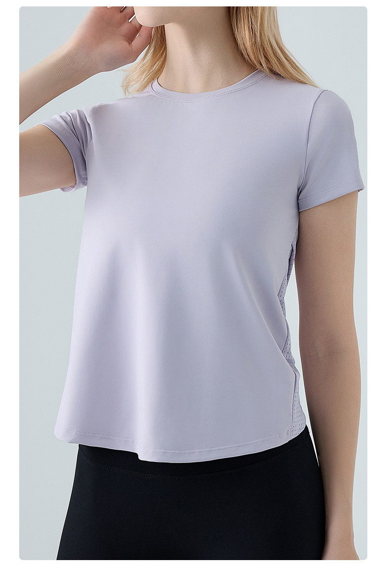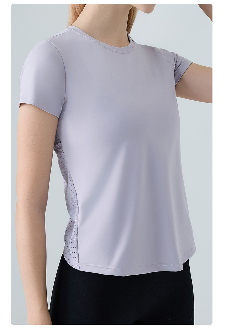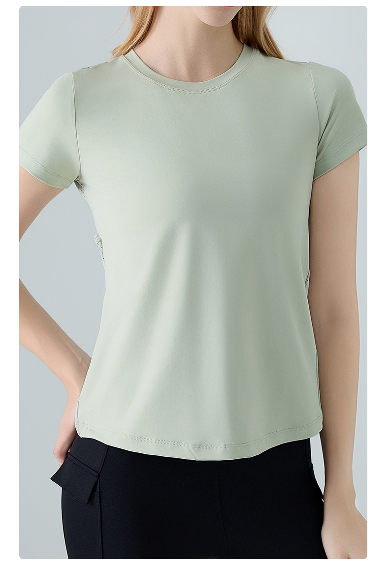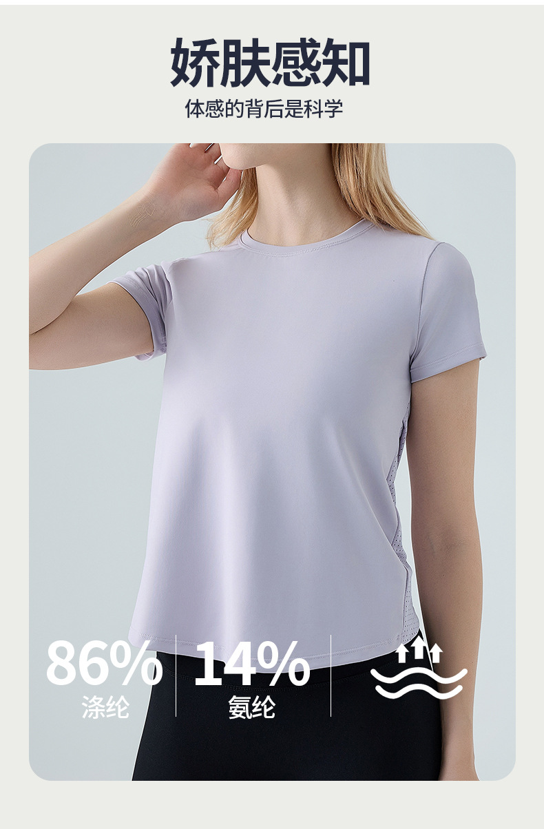 국경 간 선 스크린 빠른 건조 스포츠 피트니스 세트 요가 세트 여성용 반팔 아름다운 백 러닝 티셔츠 봄과 여름 블라우스스토어 가기