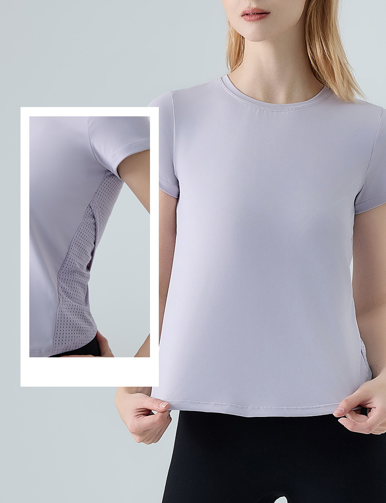 국경 간 선 스크린 빠른 건조 스포츠 피트니스 세트 요가 세트 여성용 반팔 아름다운 백 러닝 티셔츠 봄과 여름 블라우스