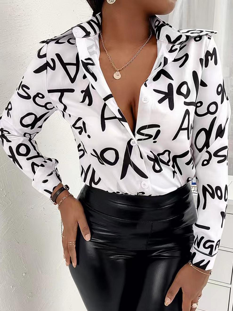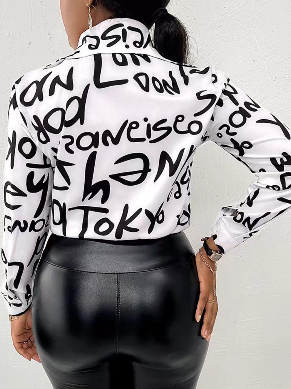 2024 유럽과 미국의 플러스 사이즈 여성 셔츠 크로스 보더 탑 봄, 가을 긴팔 여성 버튼 디지털 프린트 셔츠