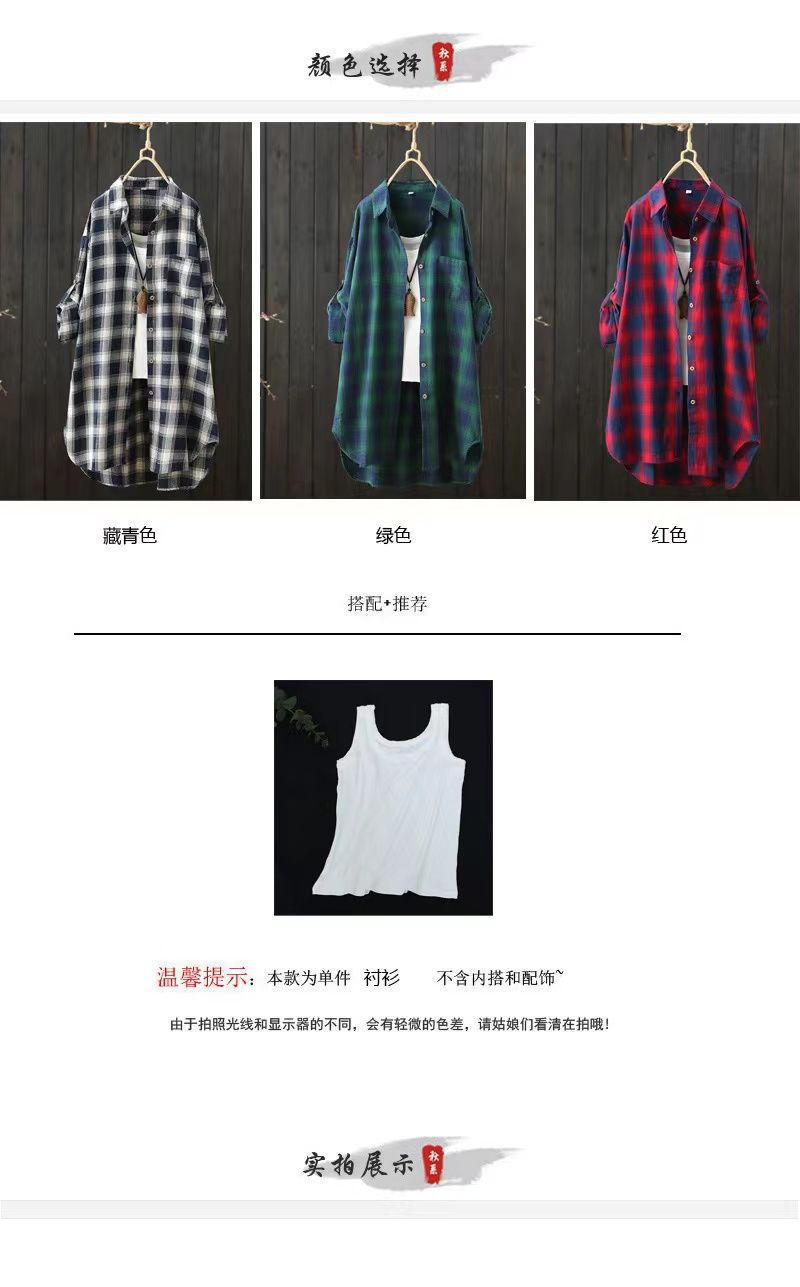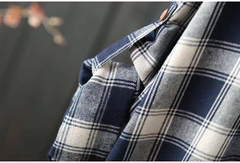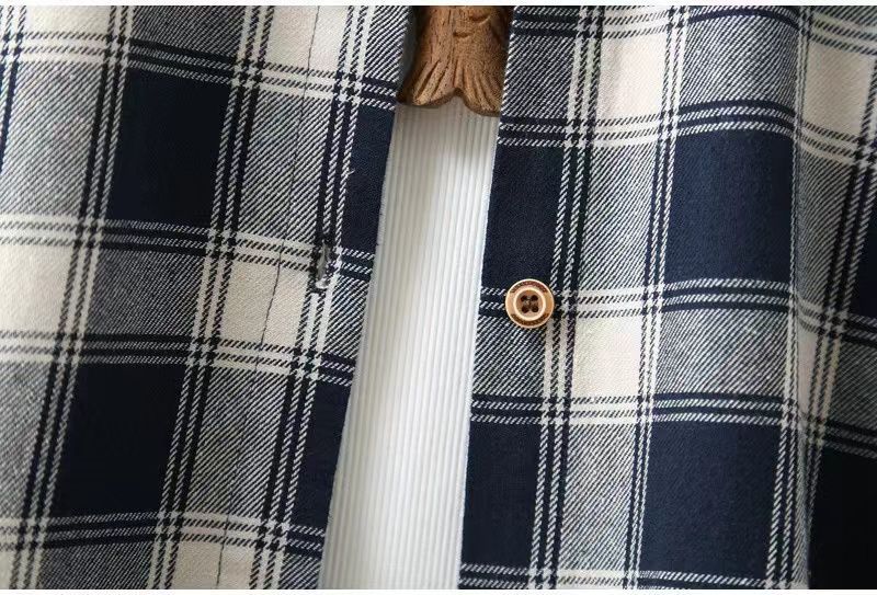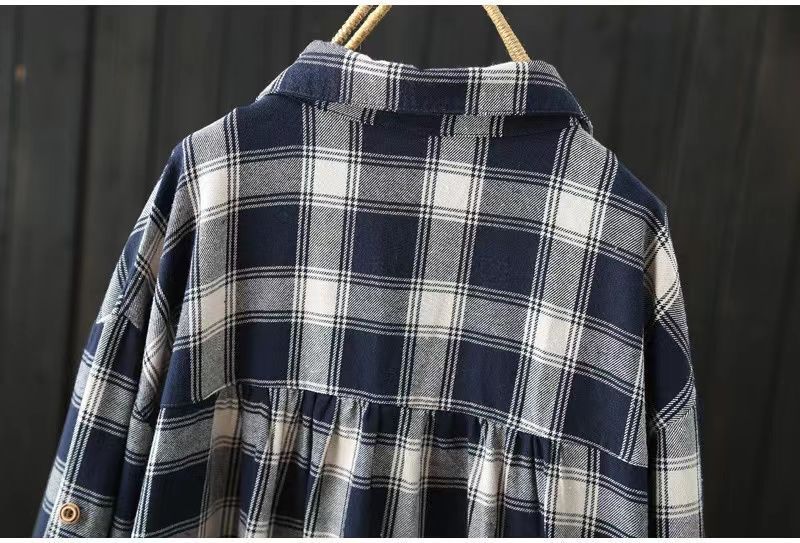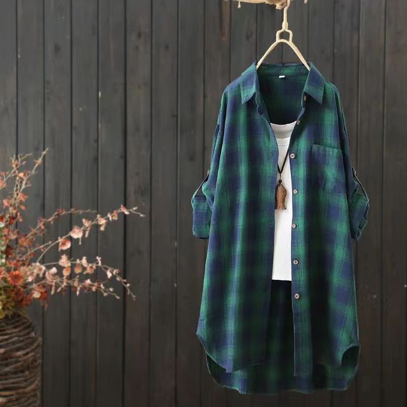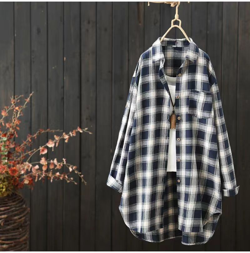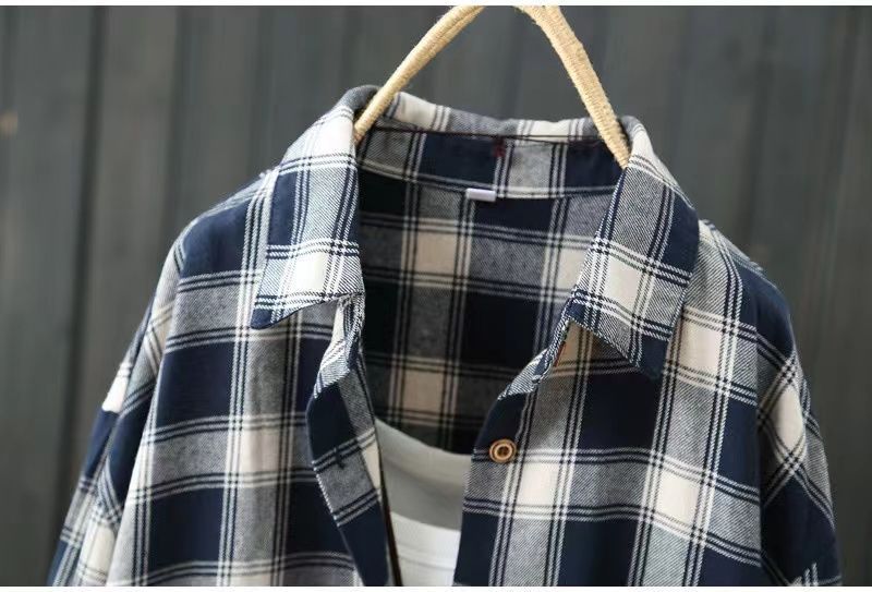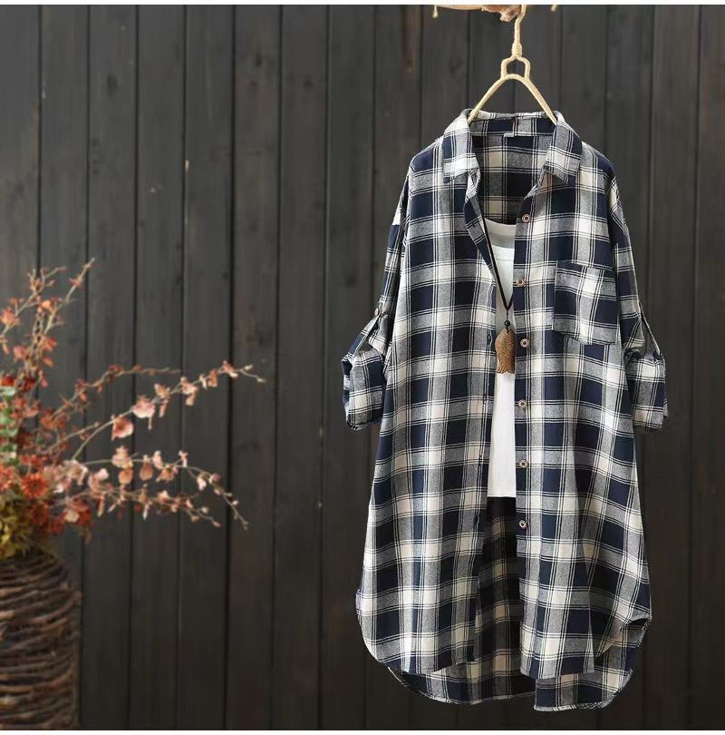유럽과 미국의 여성 셔츠 2024 새로운 한국 스타일 느슨한 패션 서양식 연령 감소 폴로 칼라 긴 격자 무늬 셔츠스토어 가기
