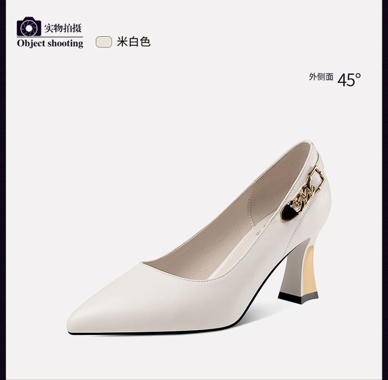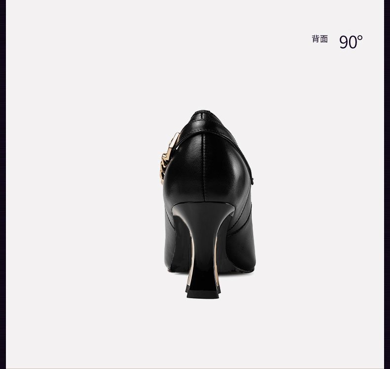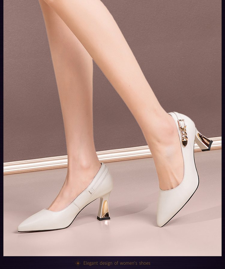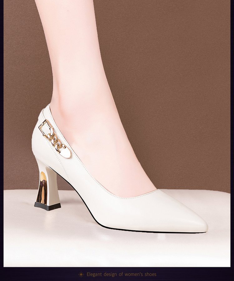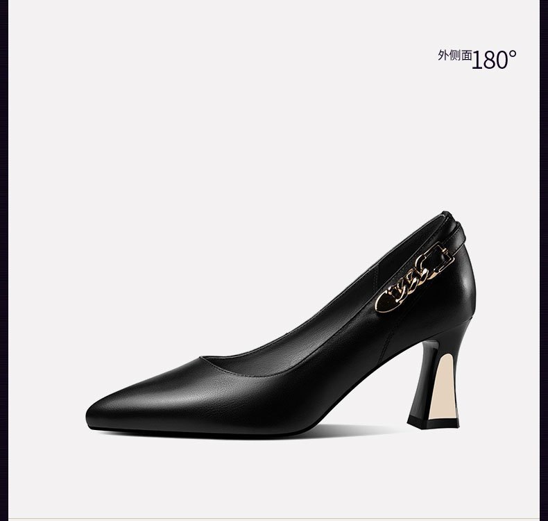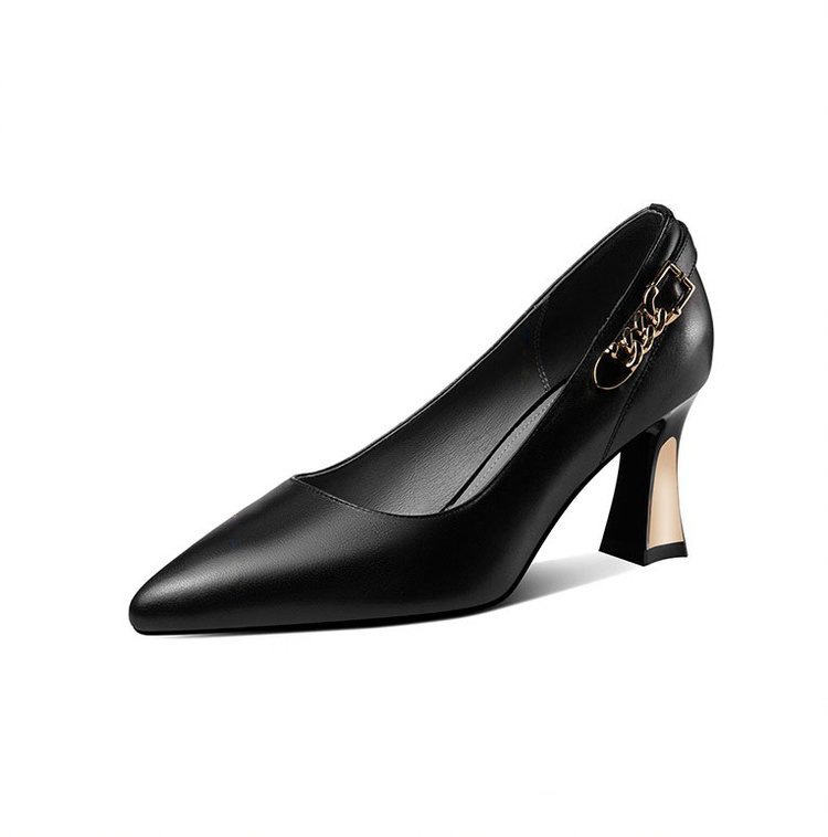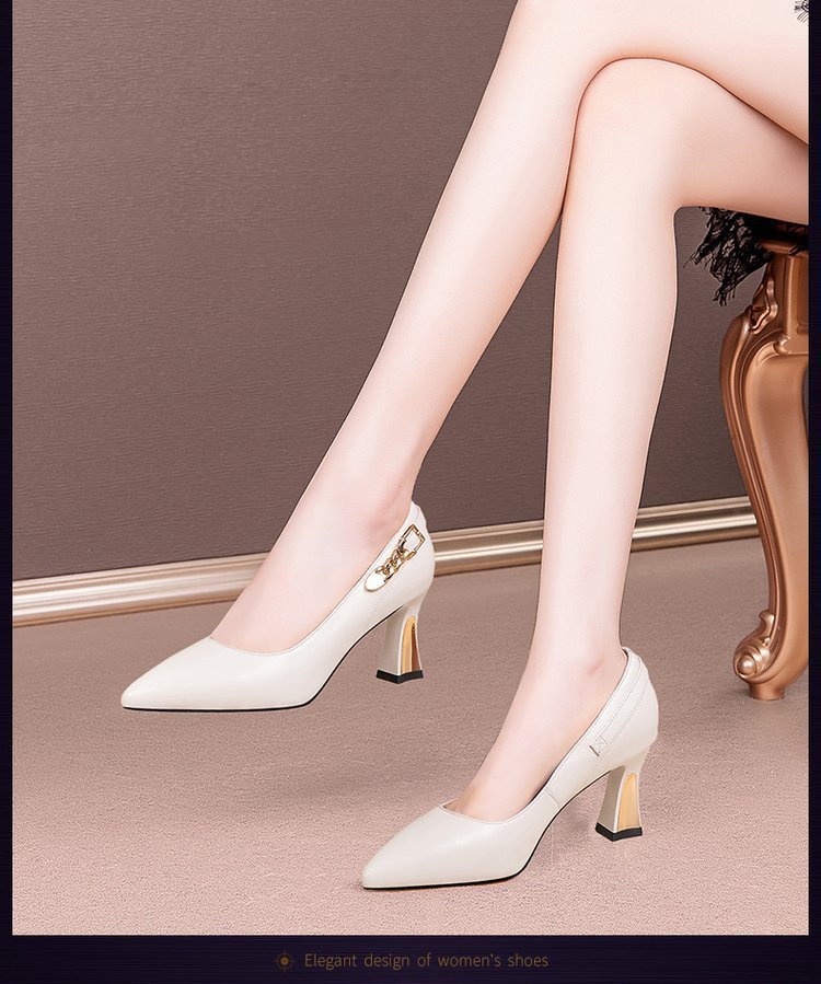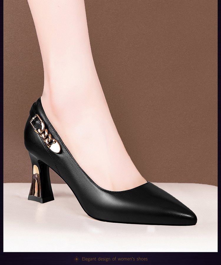 얕은 입 두꺼운 힐 가죽 신발 2025 봄 새로운 소프트 가죽 블랙 하이힐 포인팅 전문 올 매치 여성 신발스토어 가기
