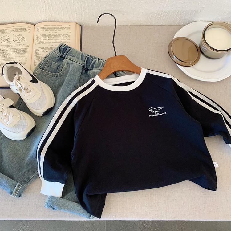 남아용 긴팔 티셔츠 2025년 가을 신상품 어린이용 공룡 만화 캐주얼 풀오버 티셔츠 트렌디스토어 가기
