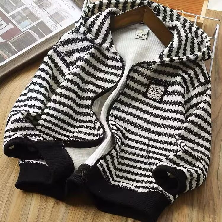 홍콩 스타일 소년의 가을 코트 어린이 봄과 가을 후드 카디건 새로운 스타일 중대형 키즈 캐주얼 웨스턴 스타일 스트라이프 탑스토어 가기