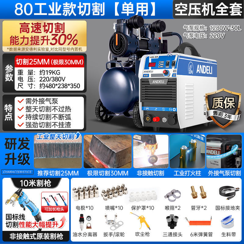 • 80 중공업 이중 전압 [절단 + 용접] 완전한 세트 + 공기 압축기