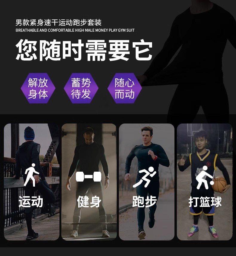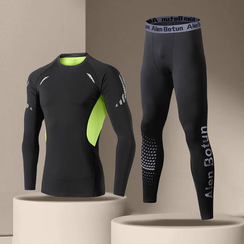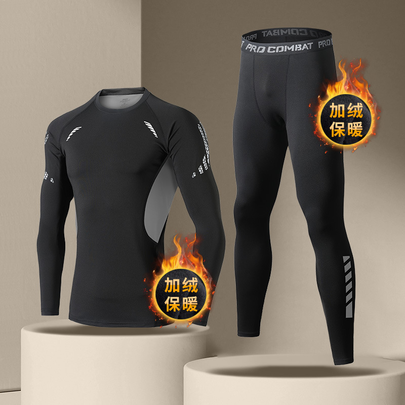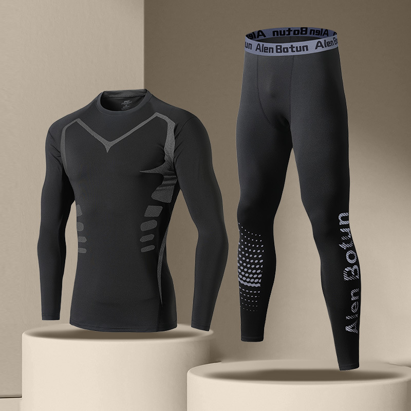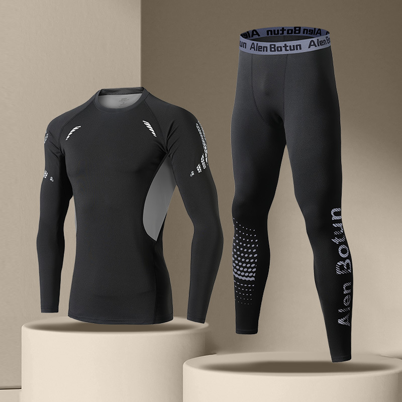 "빠른 건조 스타킹 세트 남자 겨울 달리기 피트니스 훈련 옷 가을과 겨울 스포츠 열 속옷 높은 탄성 뒷면