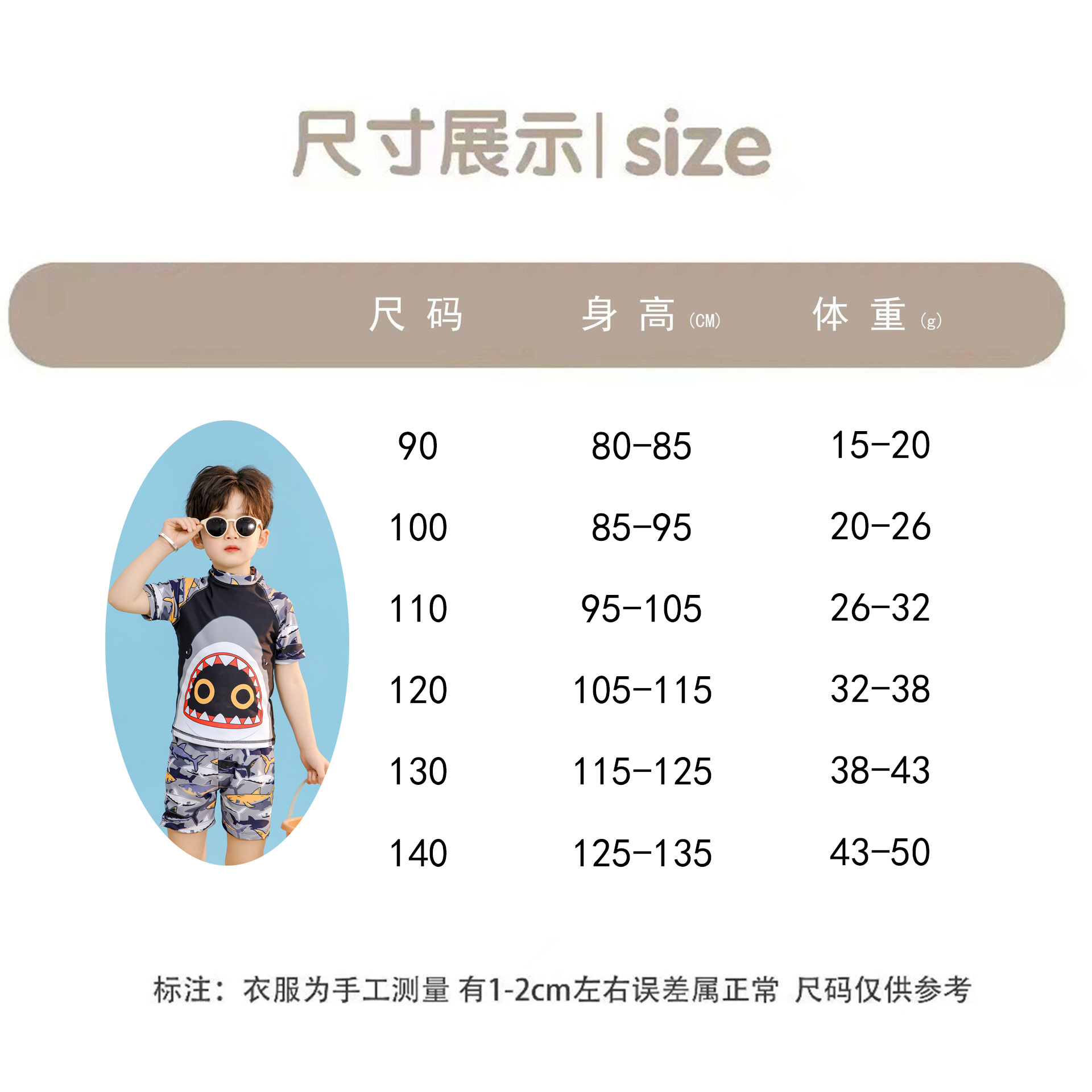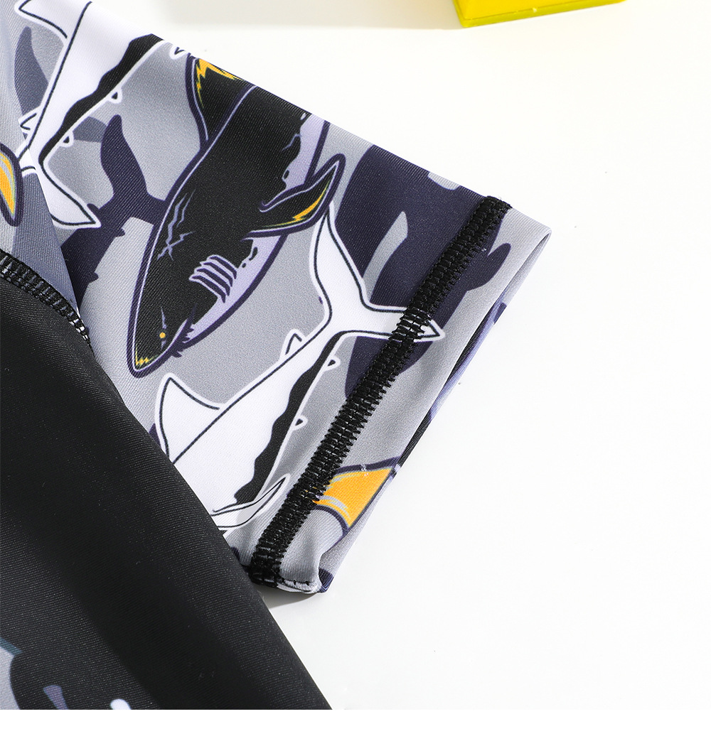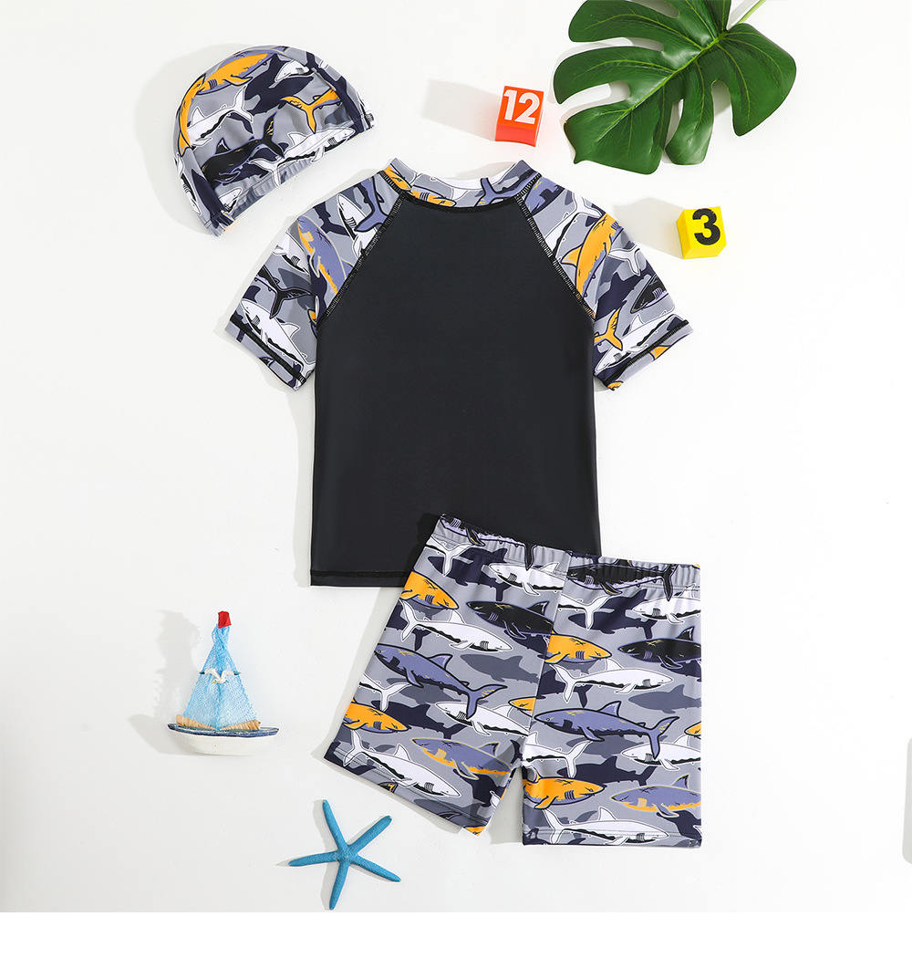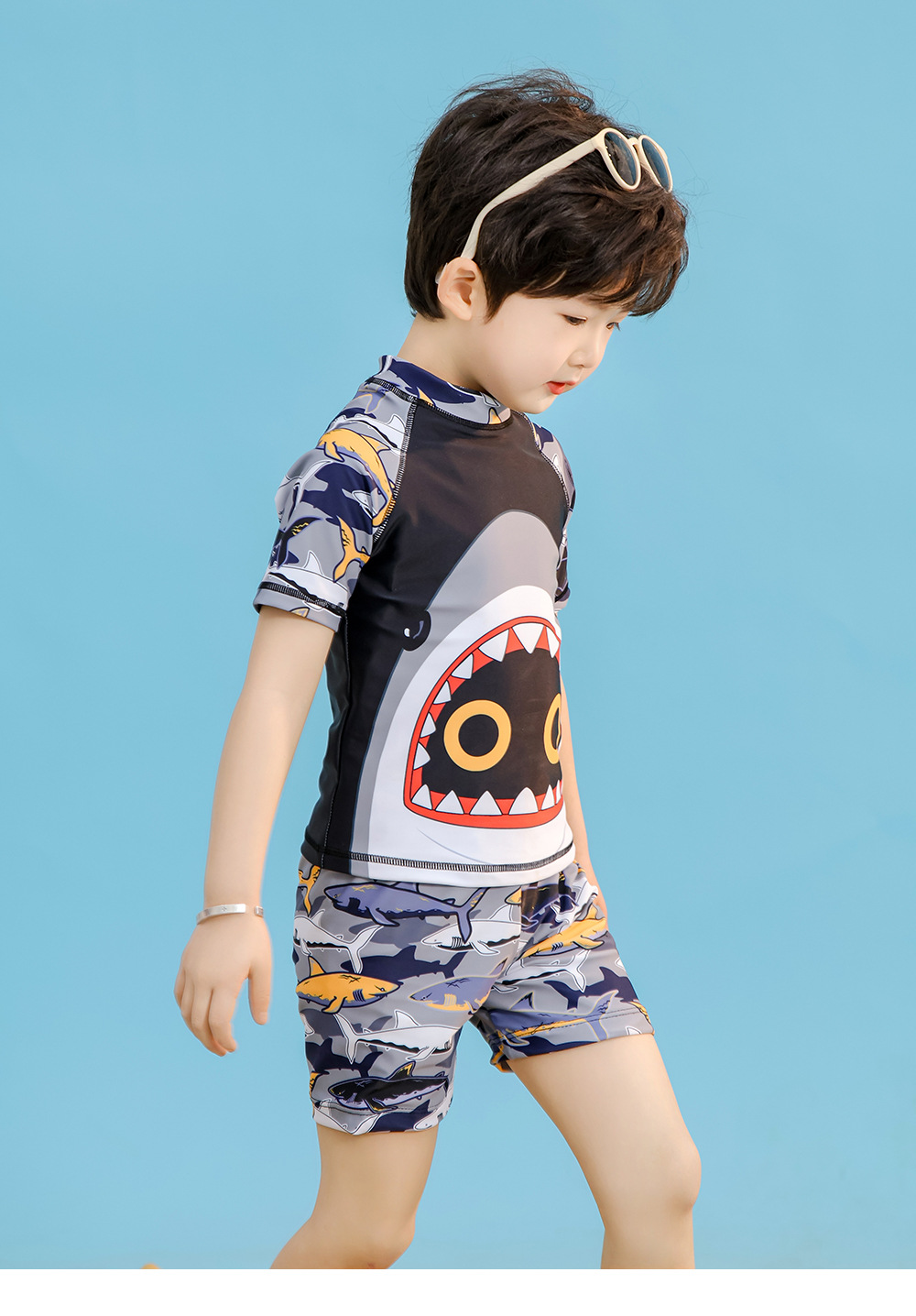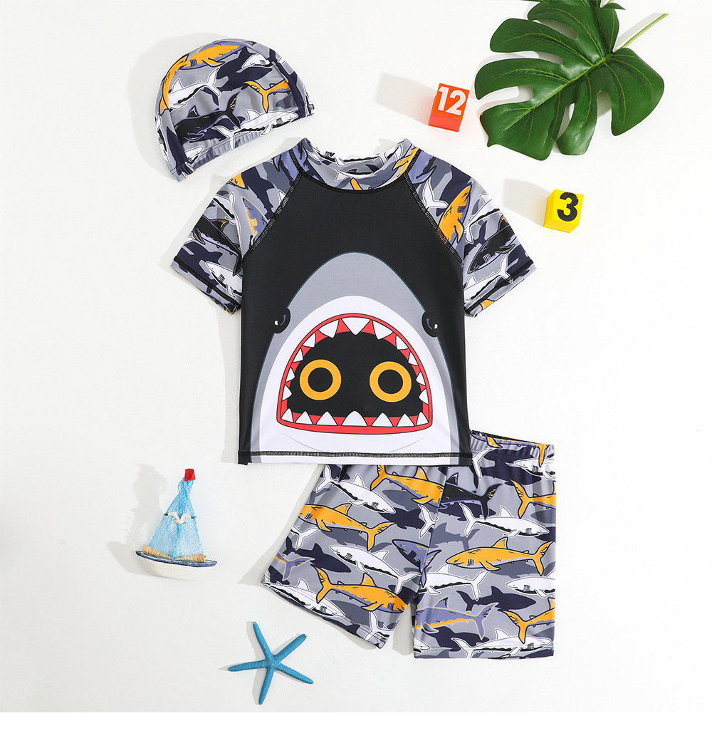 해변 휴가를위한 동물 상어 수영복 해변 세트 도매 2025 어린이 수영복 소년 분할 한국판스토어 가기