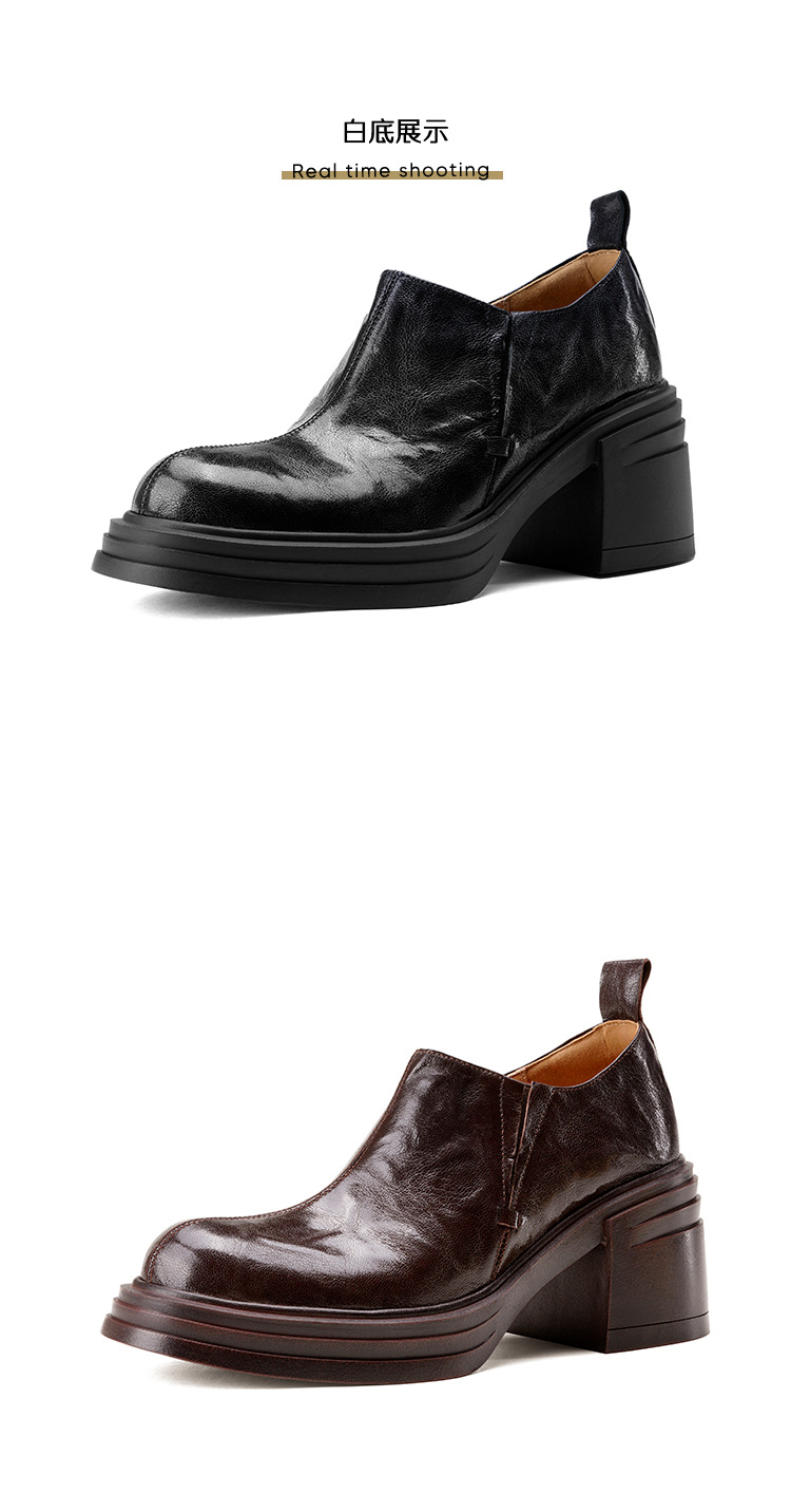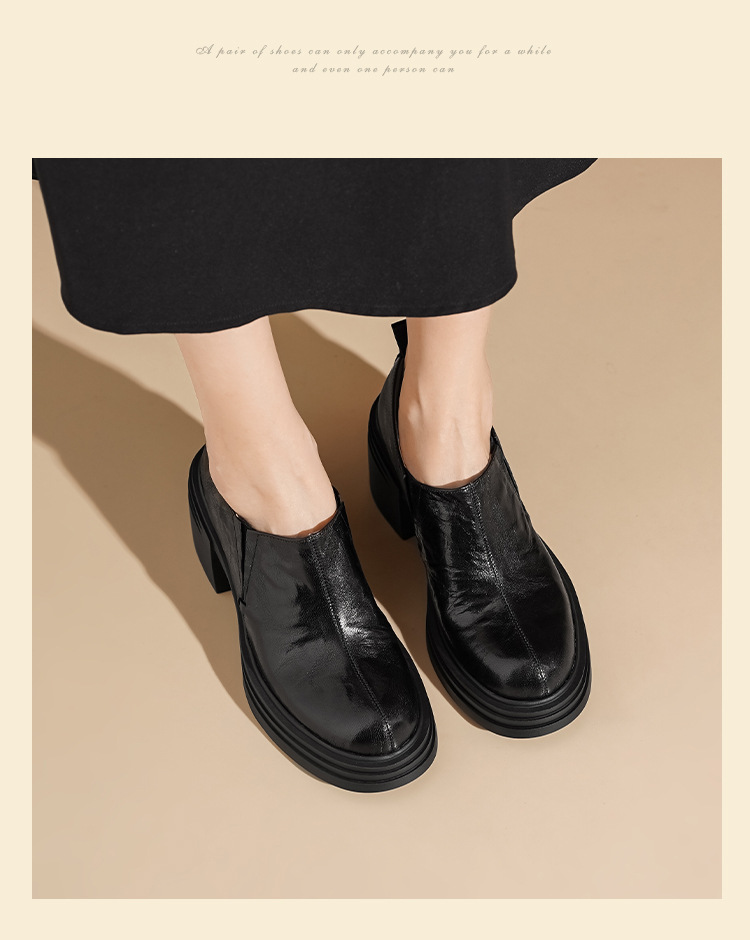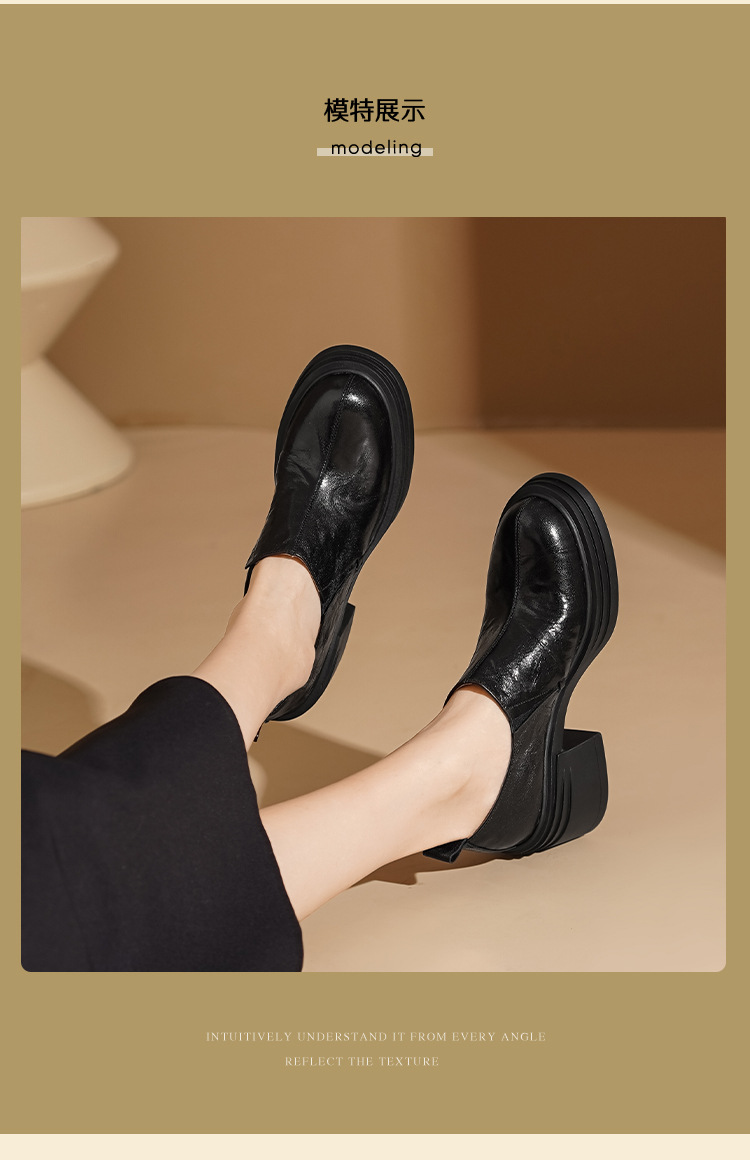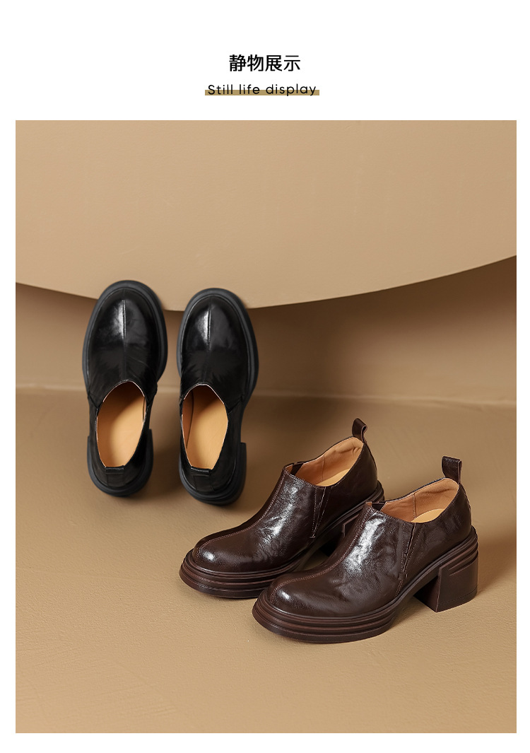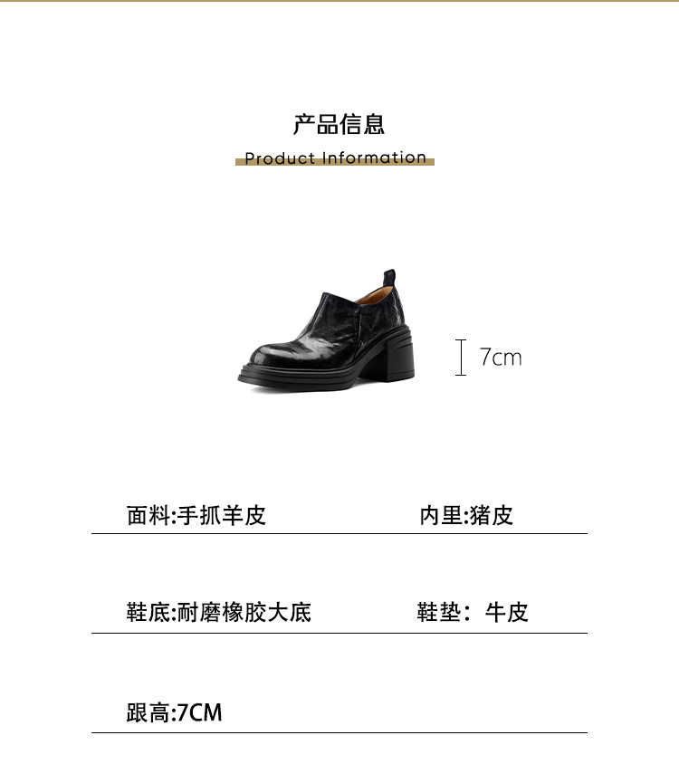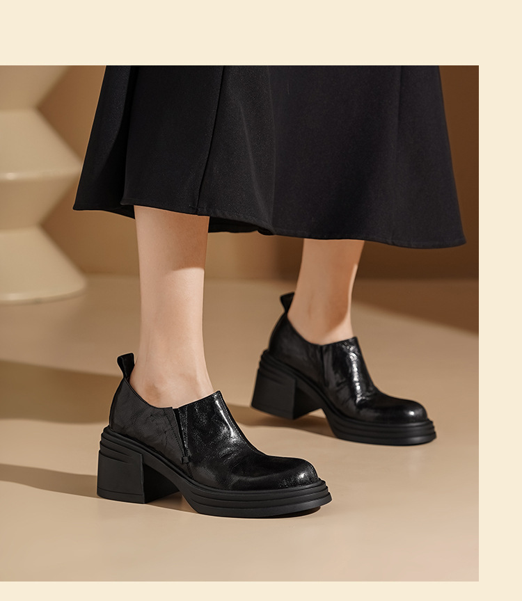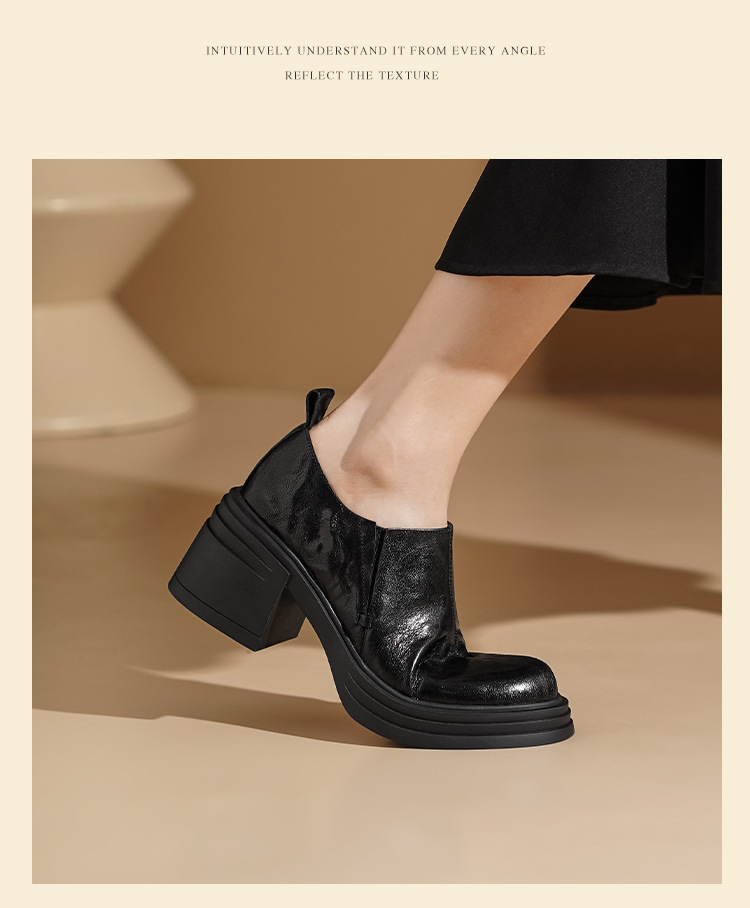 7CM 패션 양가죽 우아한 깊은 입 싱글 신발 여성의 2025 봄 새로운 라운드 헤드 두꺼운 힐 슬립 온 하이힐 가죽 신발스토어 가기
