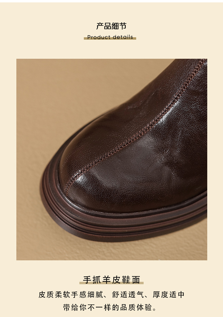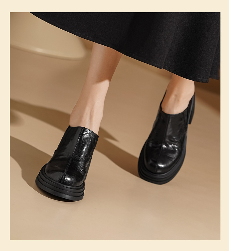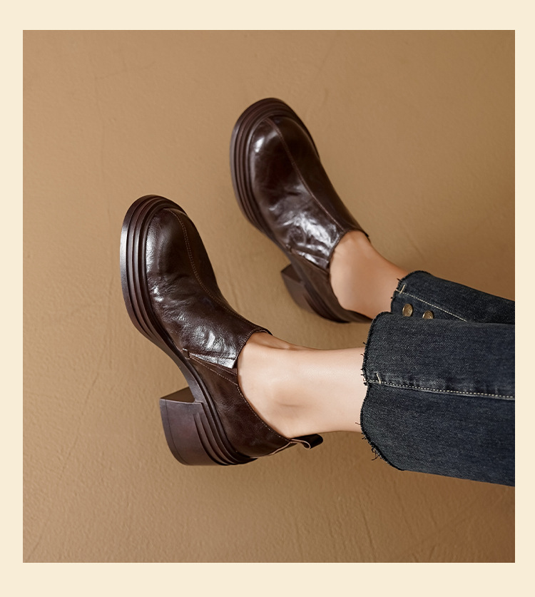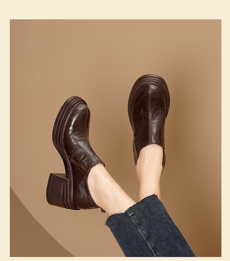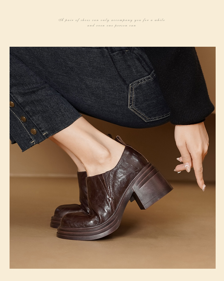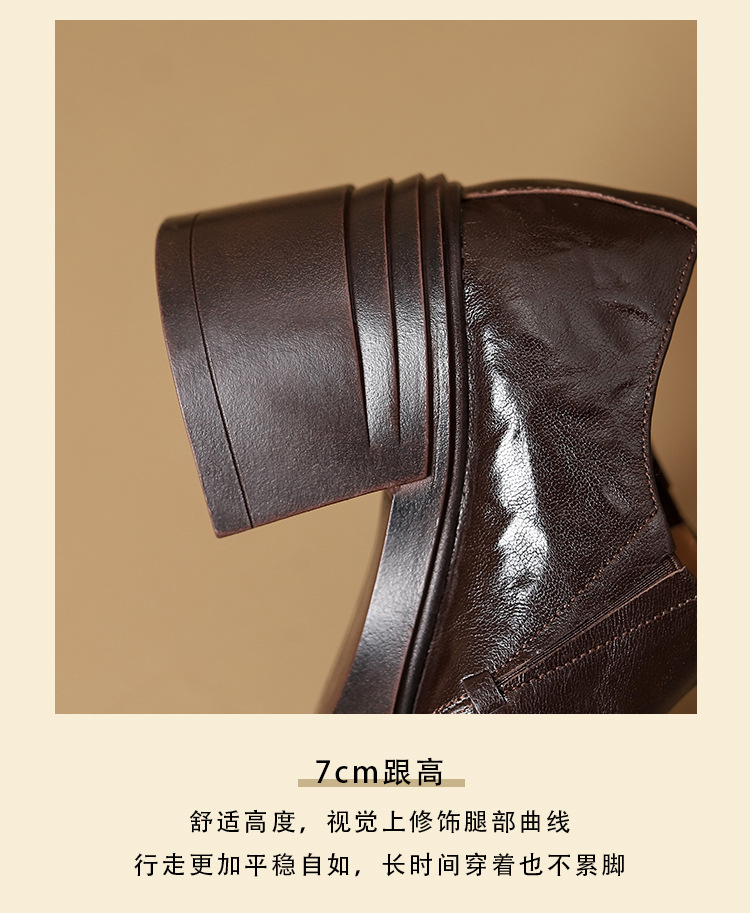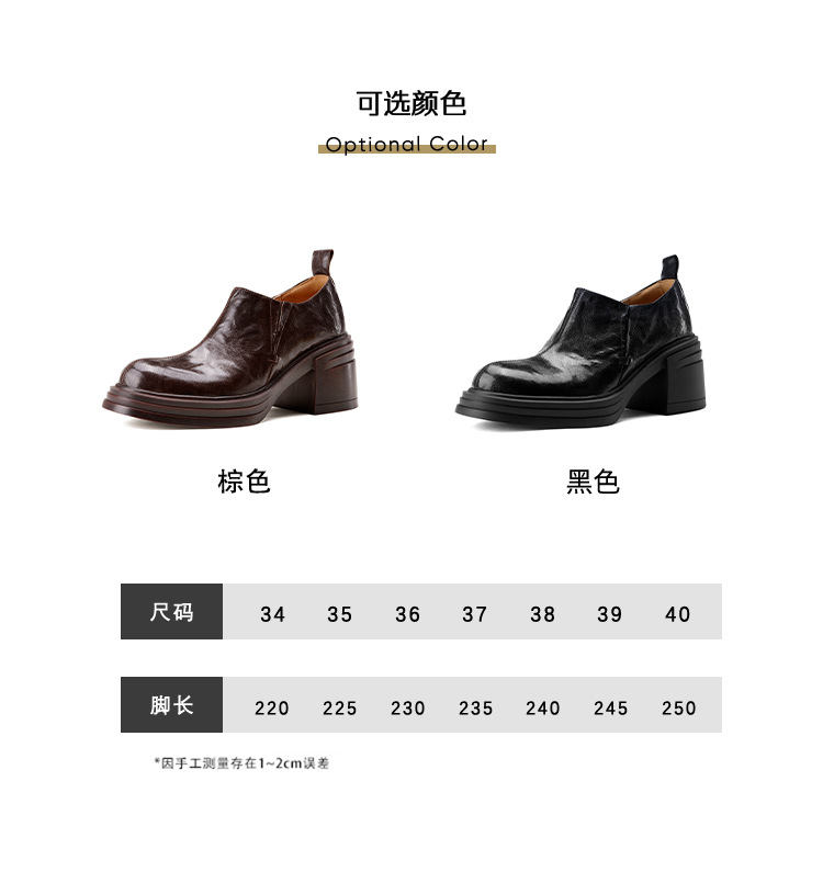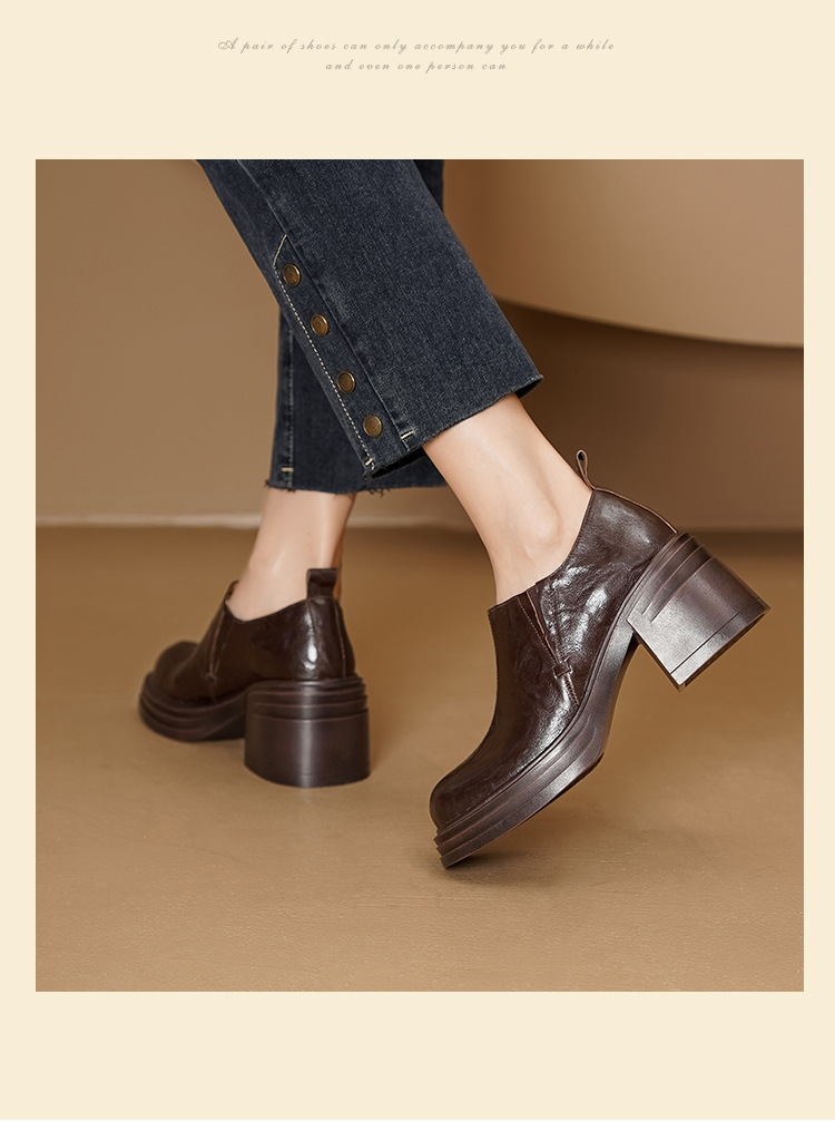 7CM 패션 양가죽 우아한 깊은 입 싱글 신발 여성의 2025 봄 새로운 라운드 헤드 두꺼운 힐 슬립 온 하이힐 가죽 신발스토어 가기