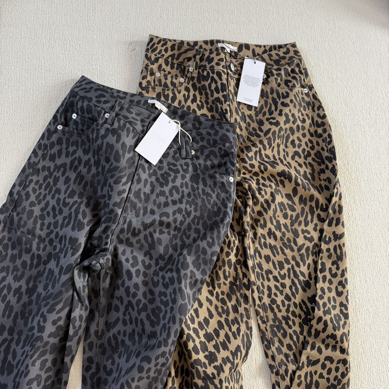 재고 제니, ORDE * 한국 디자이너 조수 브랜드 느슨한 미국 레오파드 무늬 와이드 레그 청바지 여성 휴