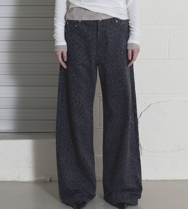 재고 제니, ORDE * 한국 디자이너 조수 브랜드 느슨한 미국 레오파드 무늬 와이드 레그 청바지 여성 휴스토어 가기