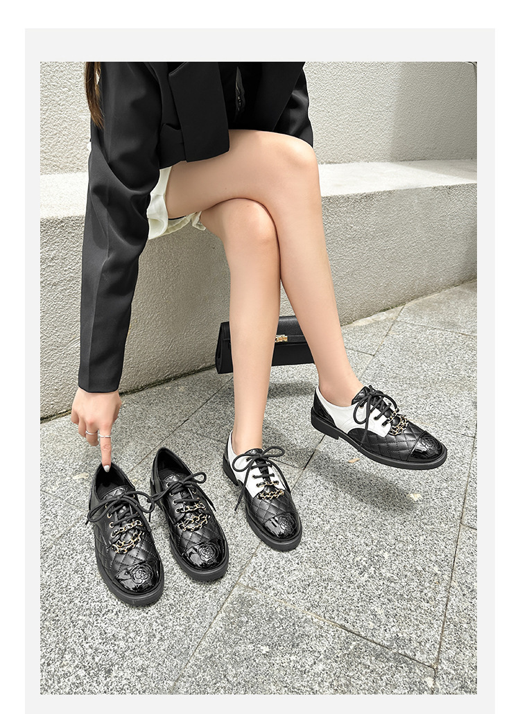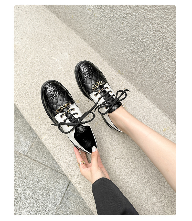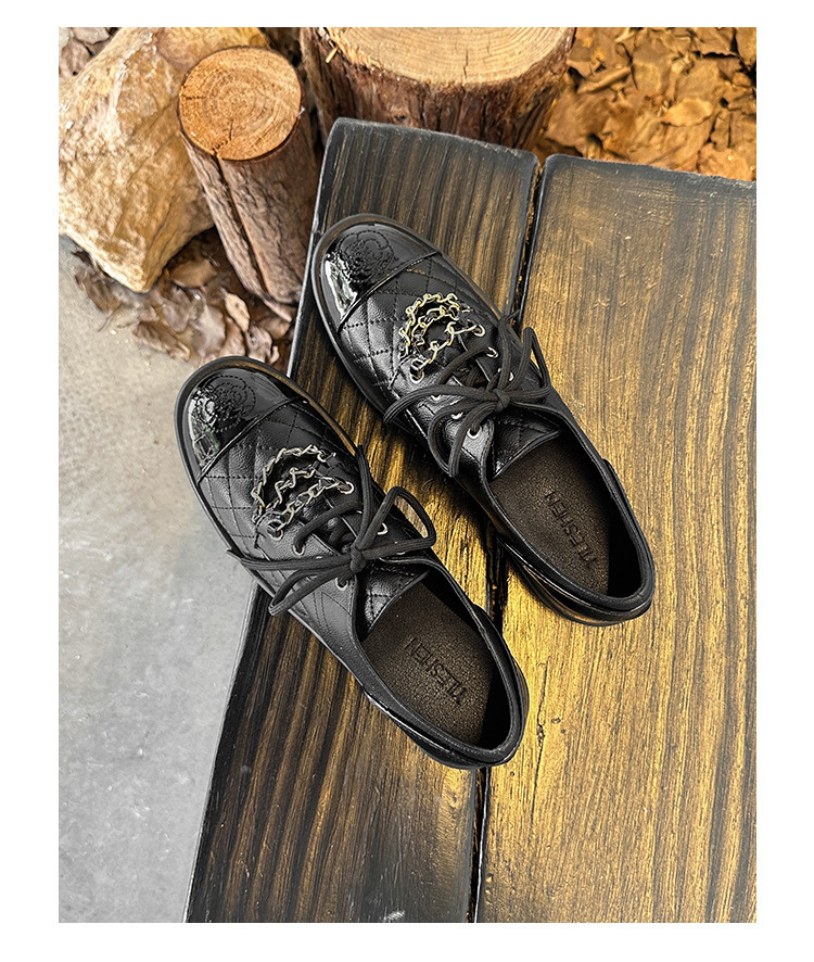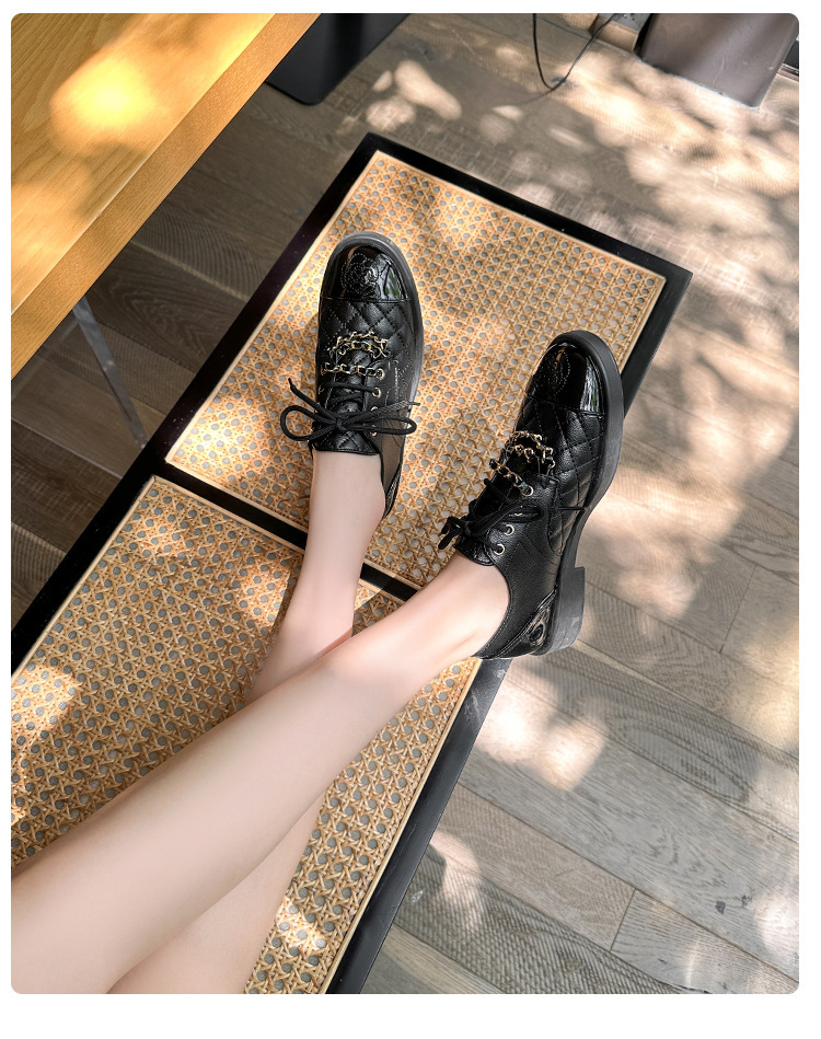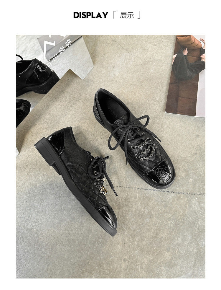 Xiaoxiang 스타일 다이아몬드 플랫 가죽 신발 여성의 2025 년 봄과 가을 새로운 동백 체인 색상과 영국 가죽 신발스토어 가기