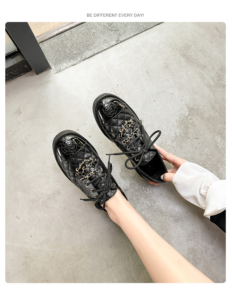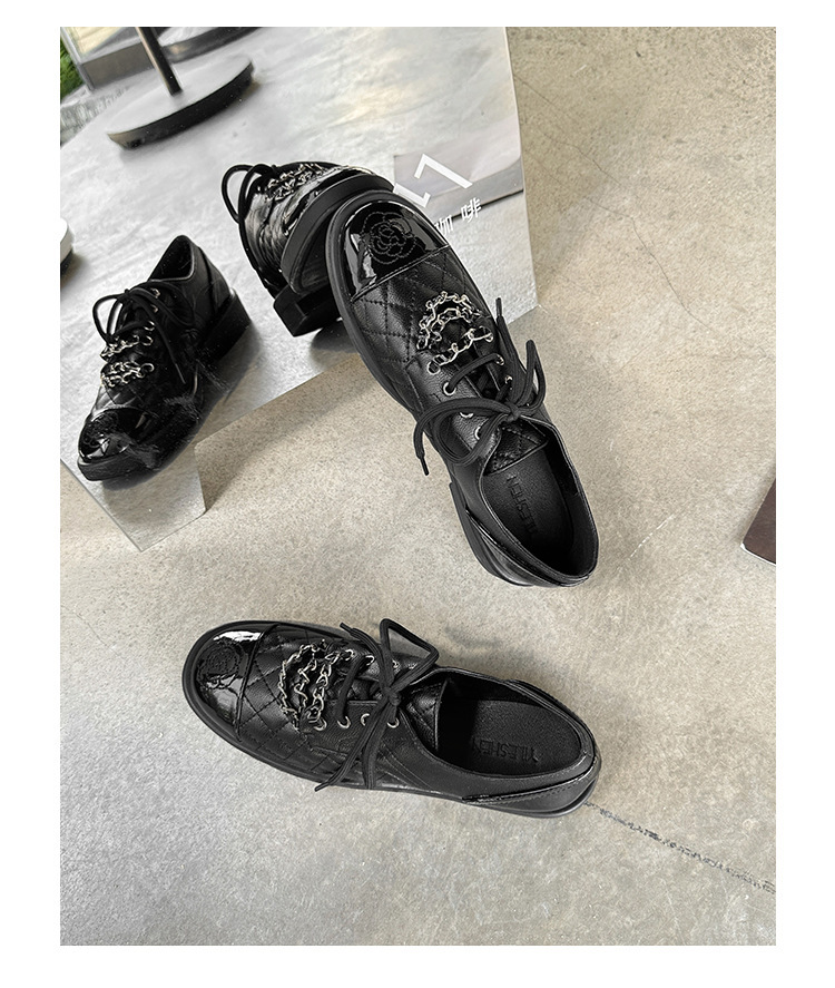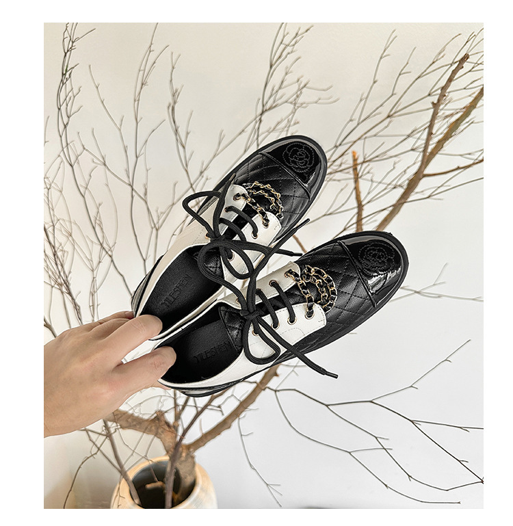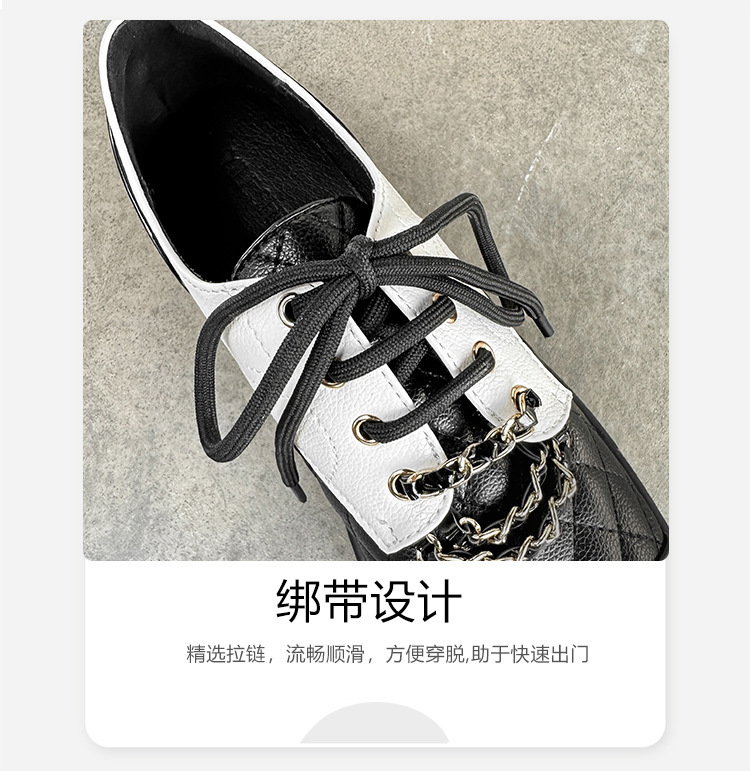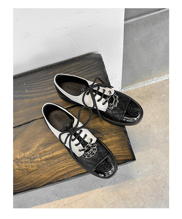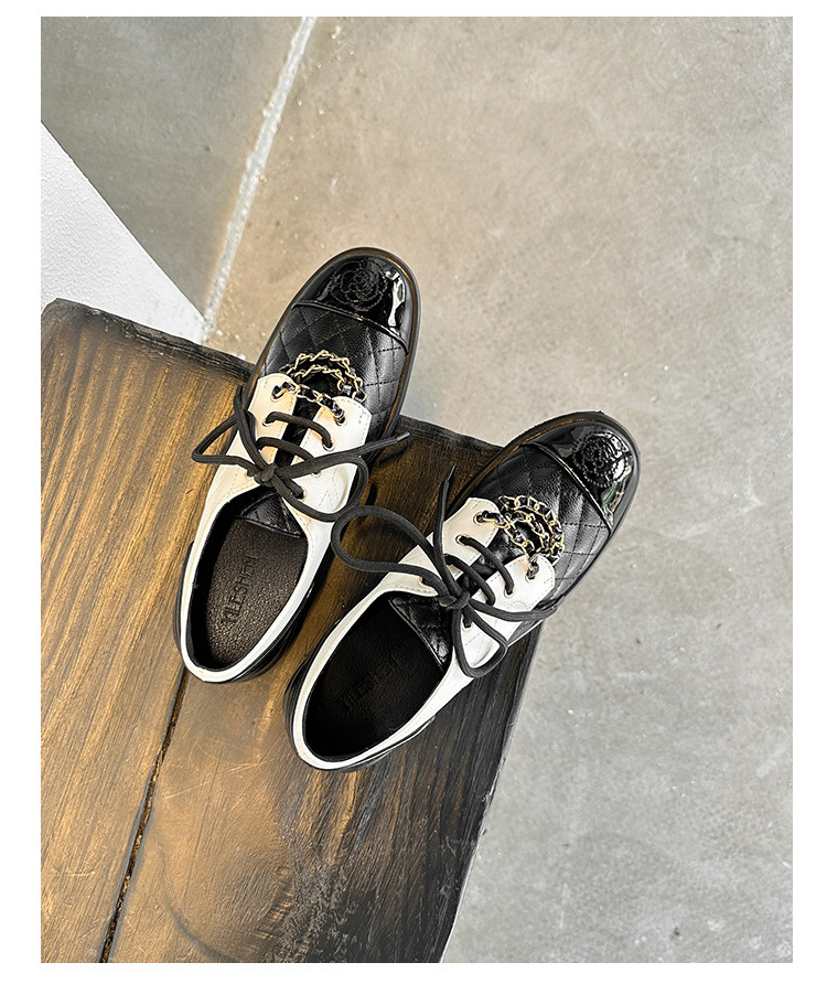 Xiaoxiang 스타일 다이아몬드 플랫 가죽 신발 여성의 2025 년 봄과 가을 새로운 동백 체인 색상과 영국 가죽 신발스토어 가기