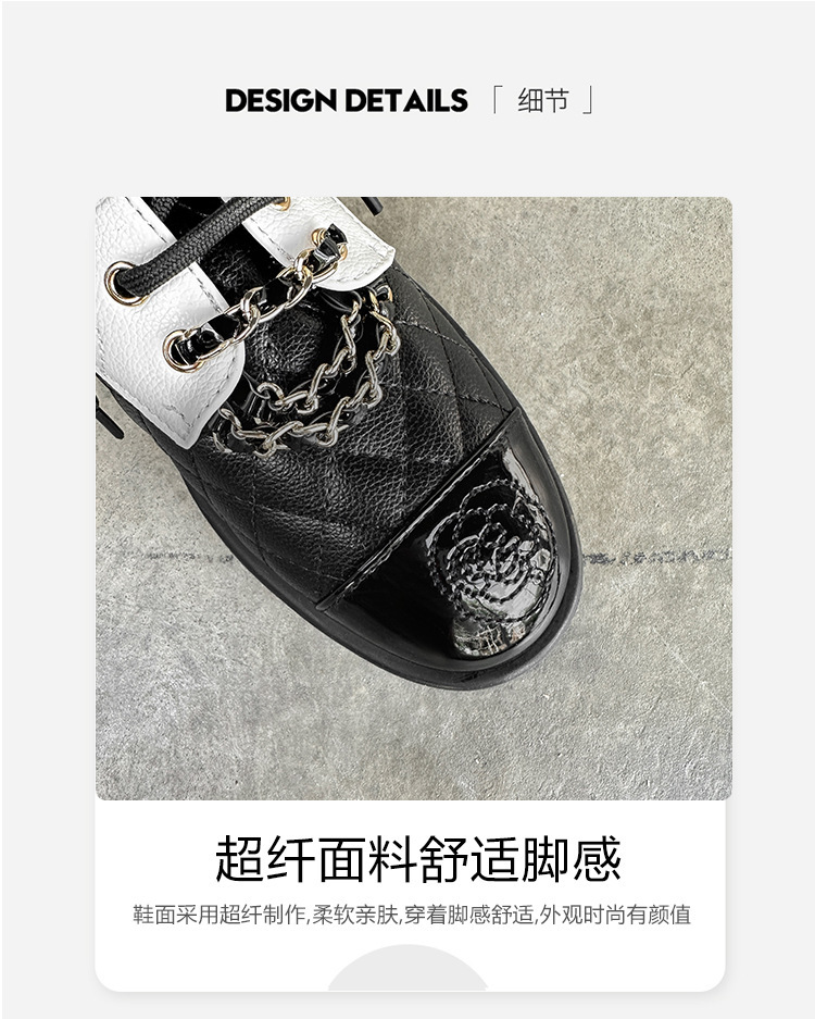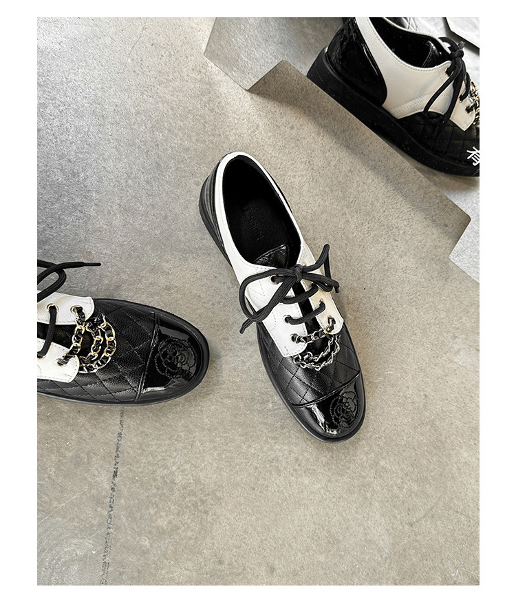 Xiaoxiang 스타일 다이아몬드 플랫 가죽 신발 여성의 2025 년 봄과 가을 새로운 동백 체인 색상과 영국 가죽 신발