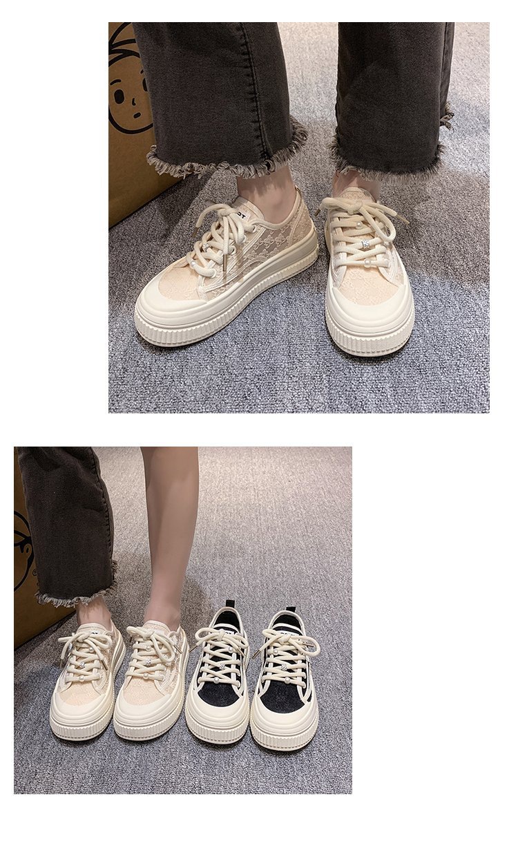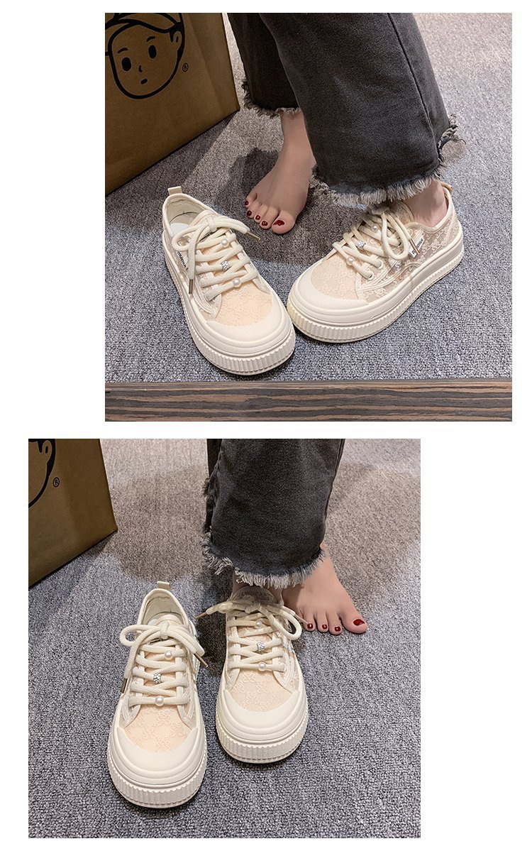 통기성 레이스 메쉬 캐주얼 신발 여성의 2025 봄 새로운 두꺼운 단독 높은 보드 신발 플랫폼 하단 어부 흰색 신발스토어 가기