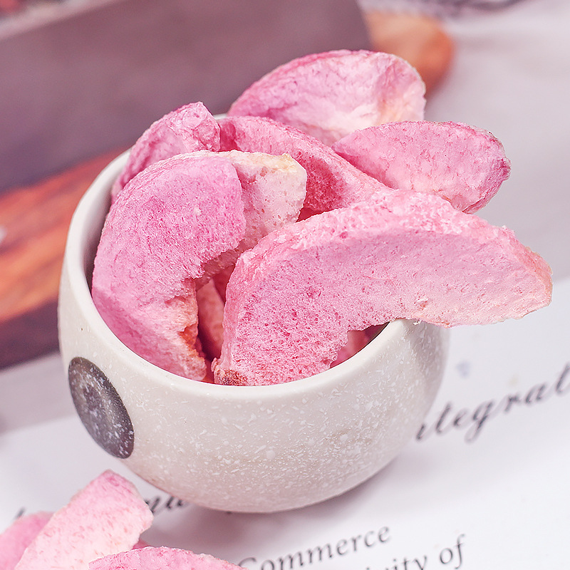 냉동 말린 복숭아 복숭아 조각 크리스프 말린 과일 굽기 장식 노란 복숭아 조각 차 물 상업적인 간식스토어 가기