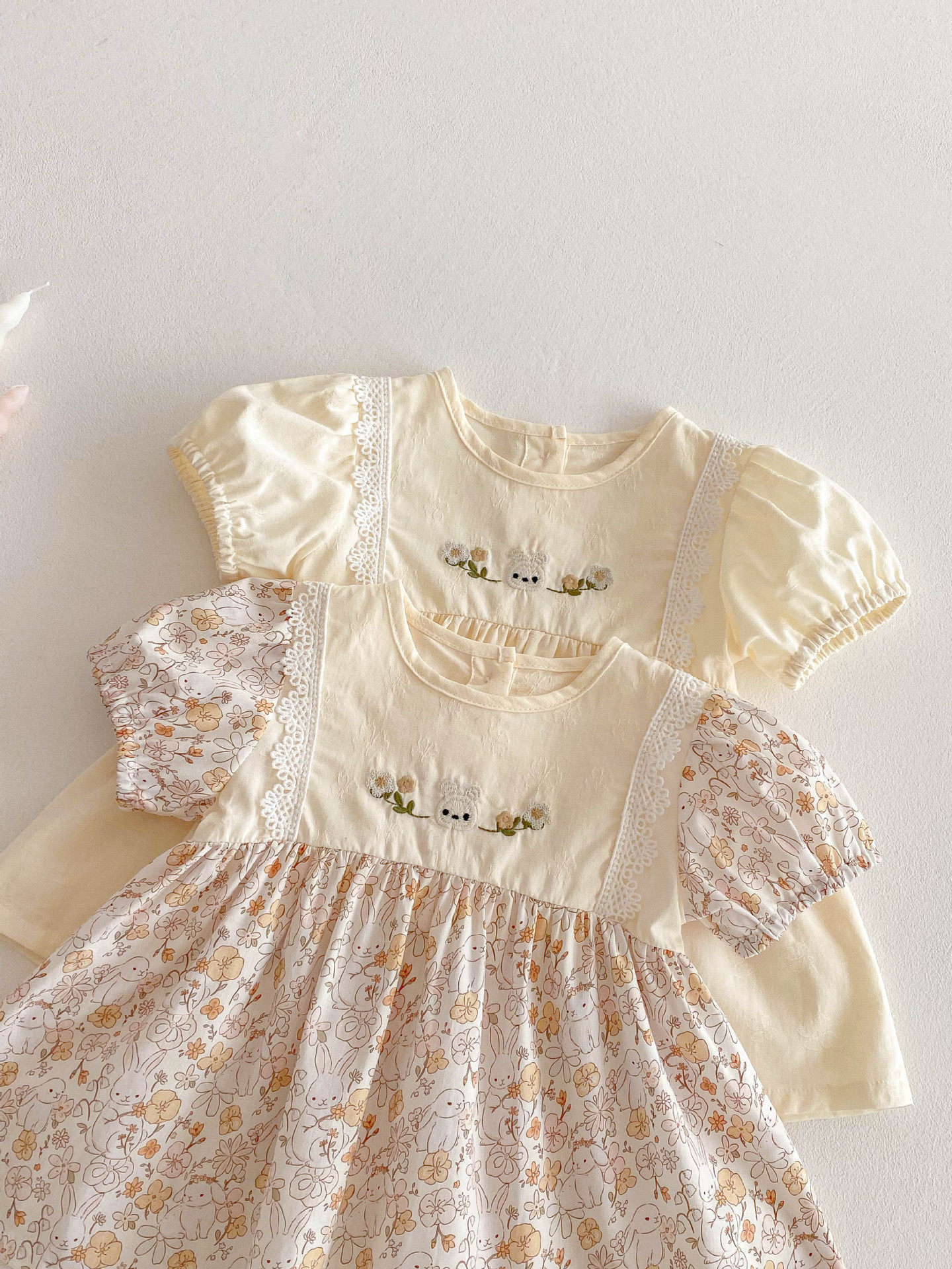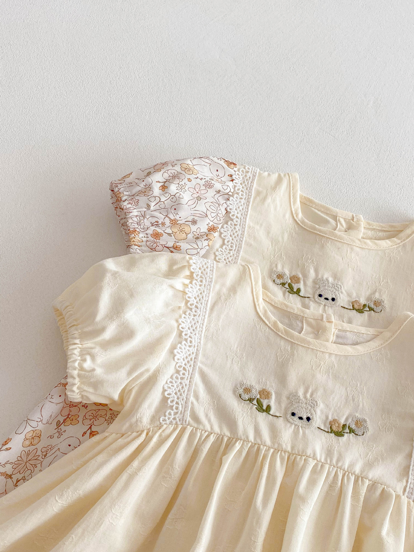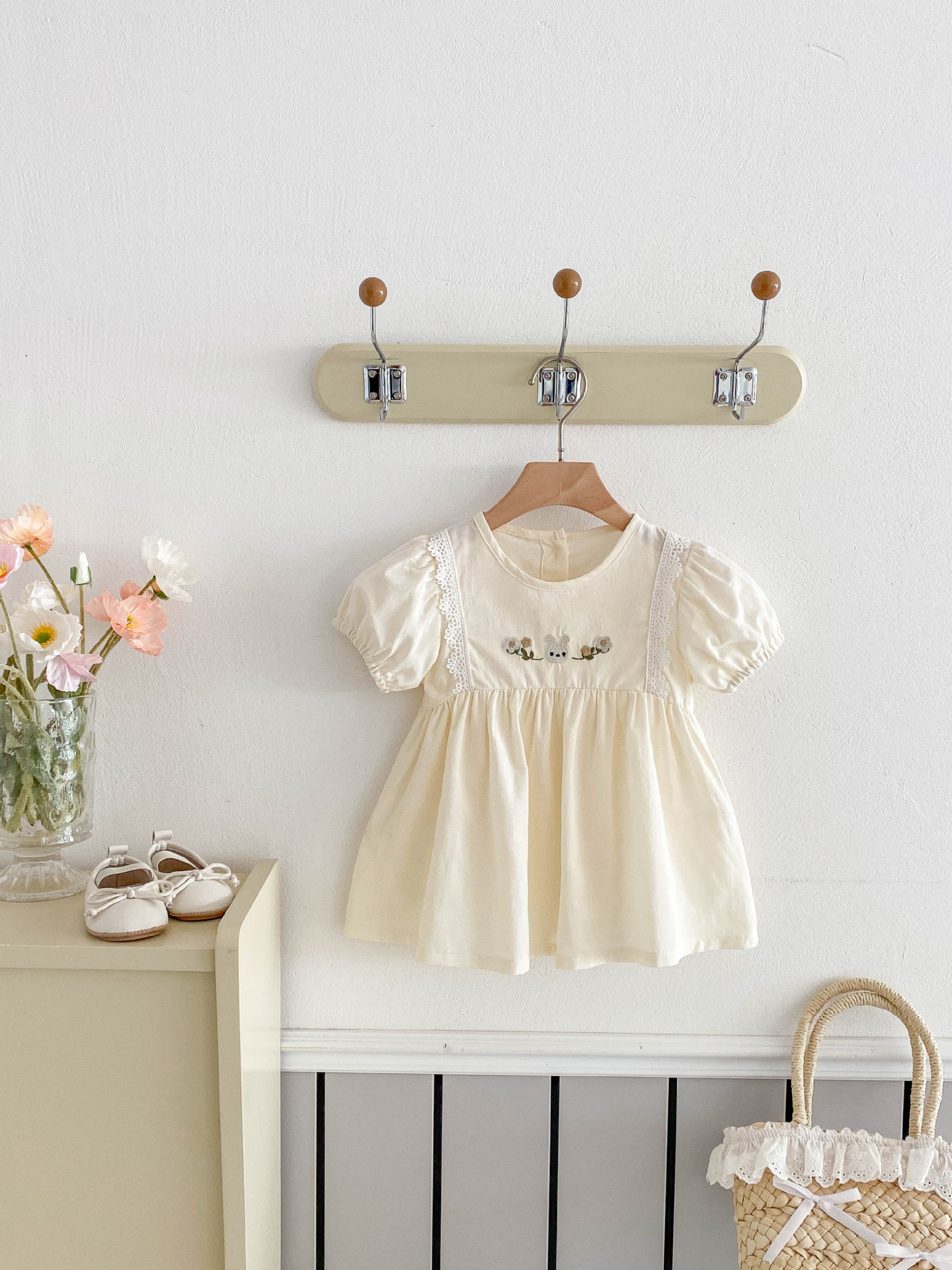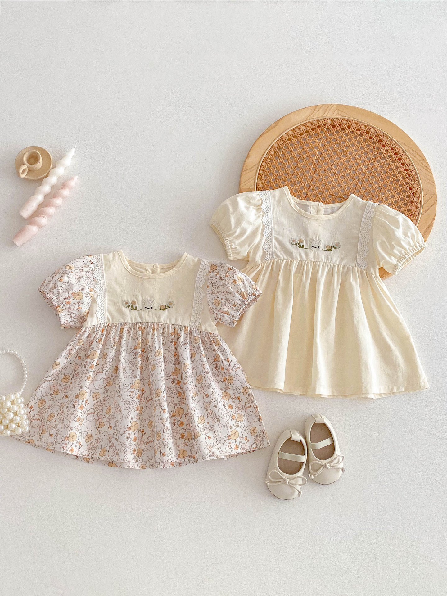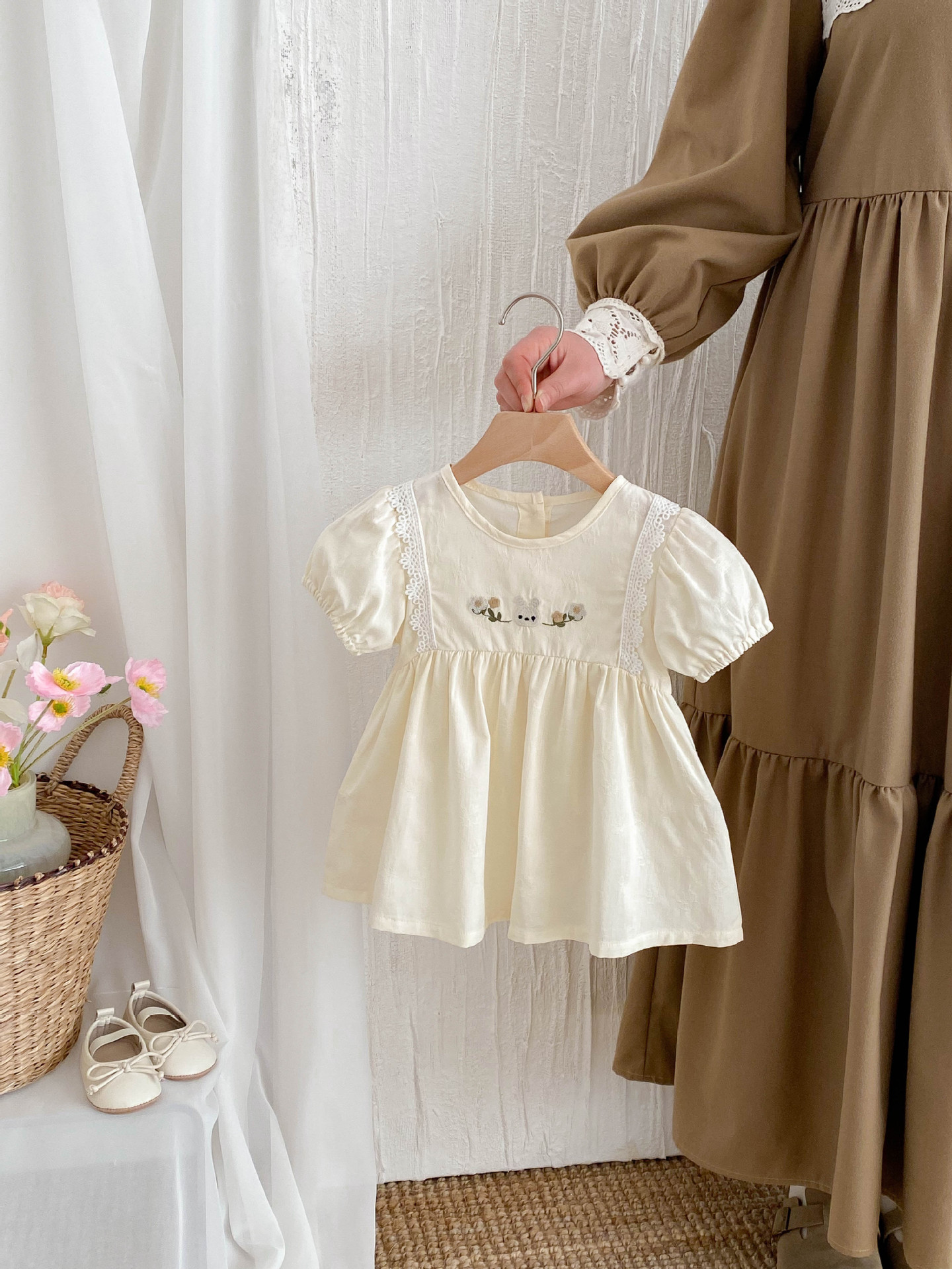 2025 새로운 소녀의 여름 원피스 순면 레이스 아기 원피스 인형 스타일 꽃 공주 치마
