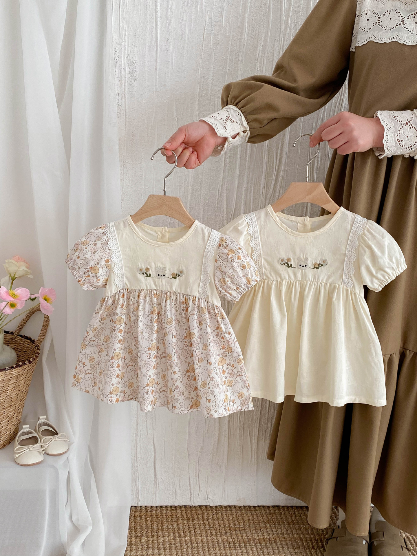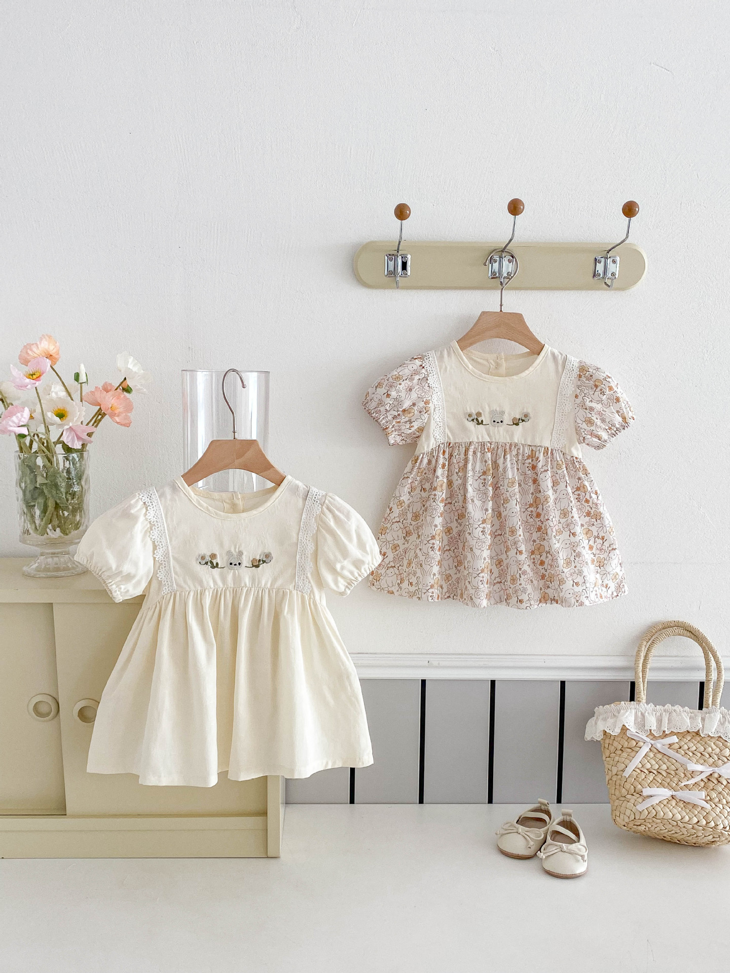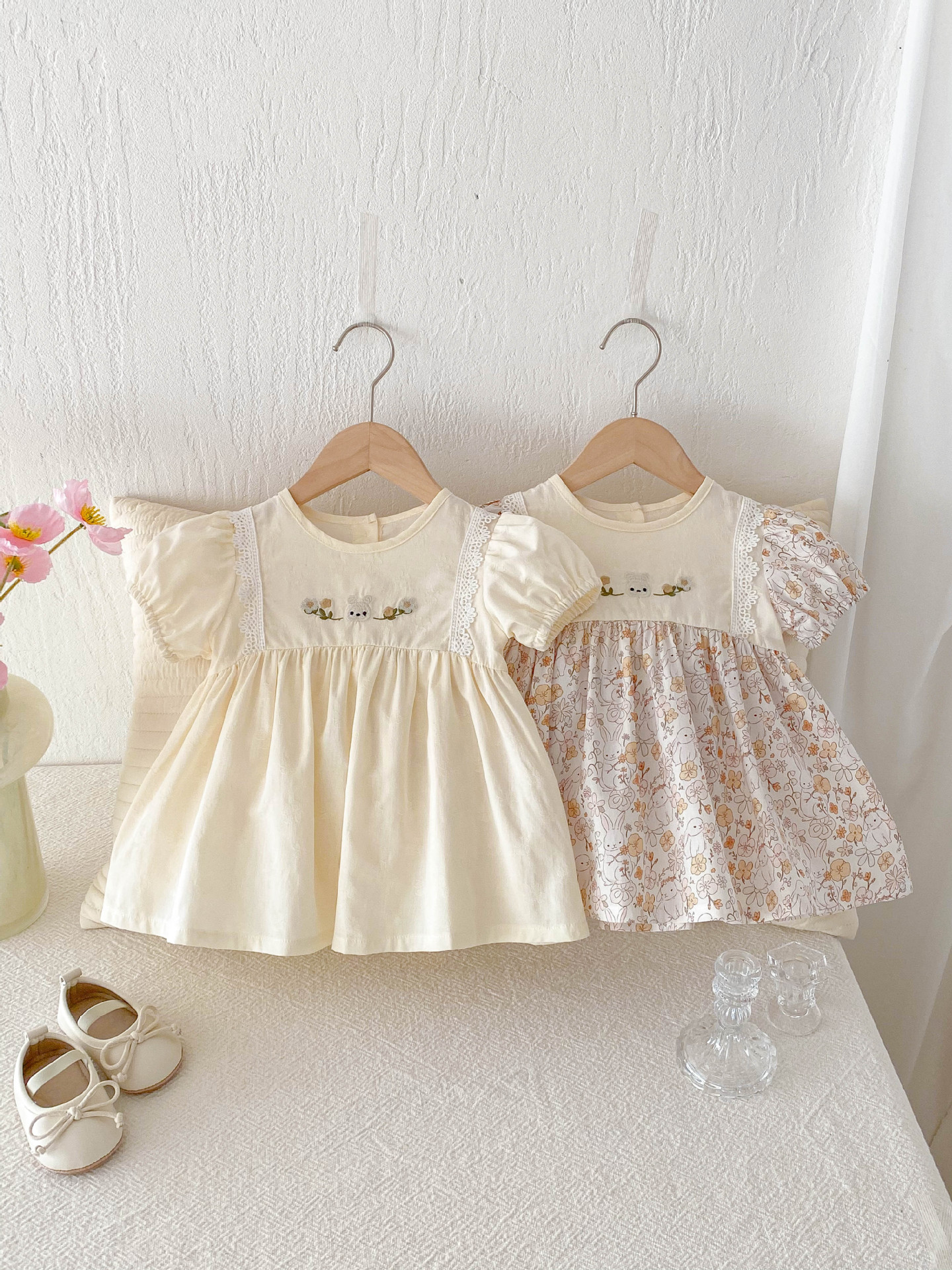 2025 새로운 소녀의 여름 원피스 순면 레이스 아기 원피스 인형 스타일 꽃 공주 치마스토어 가기