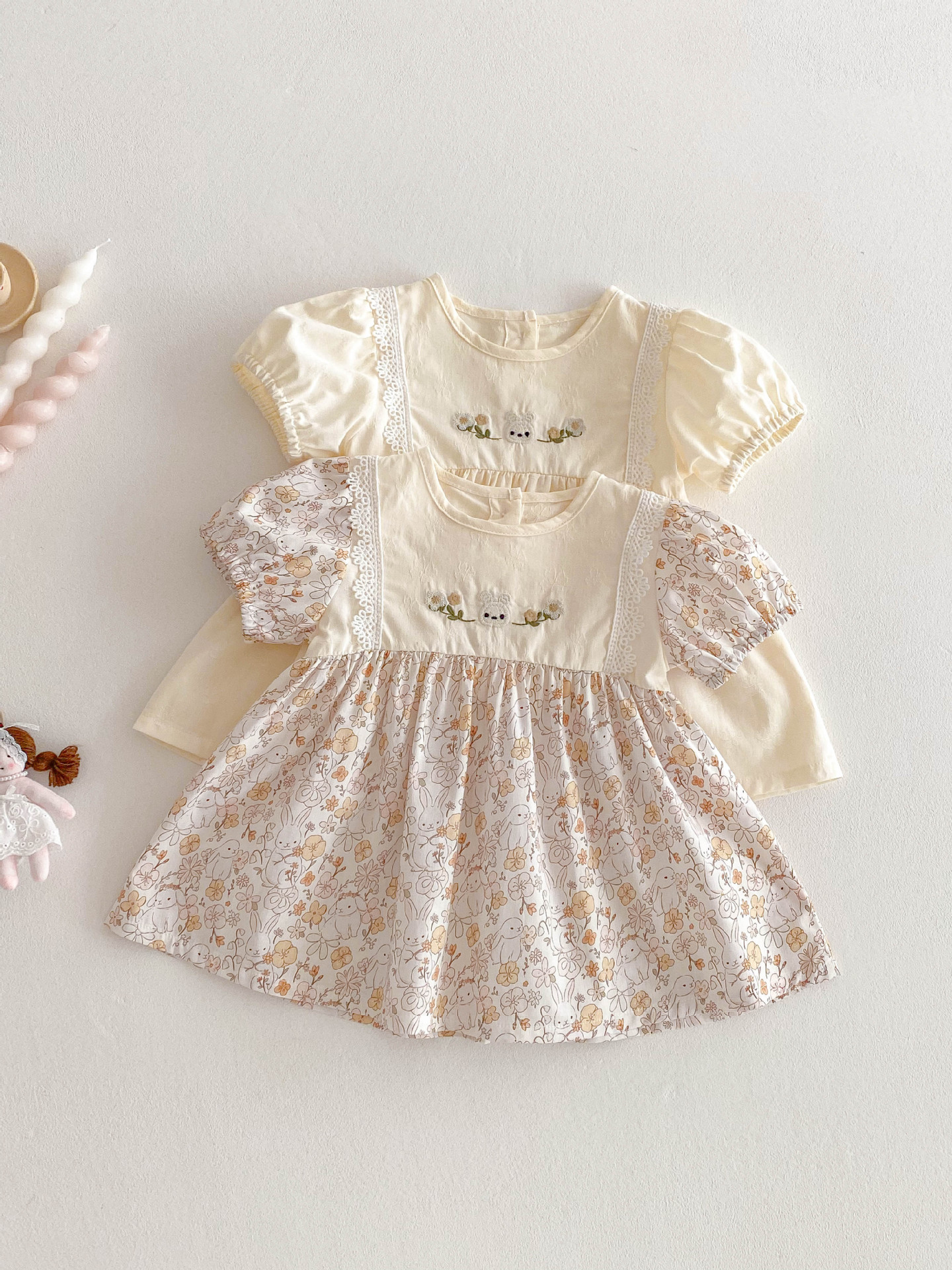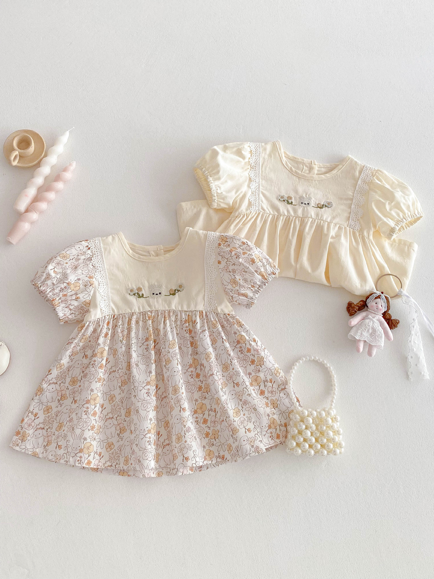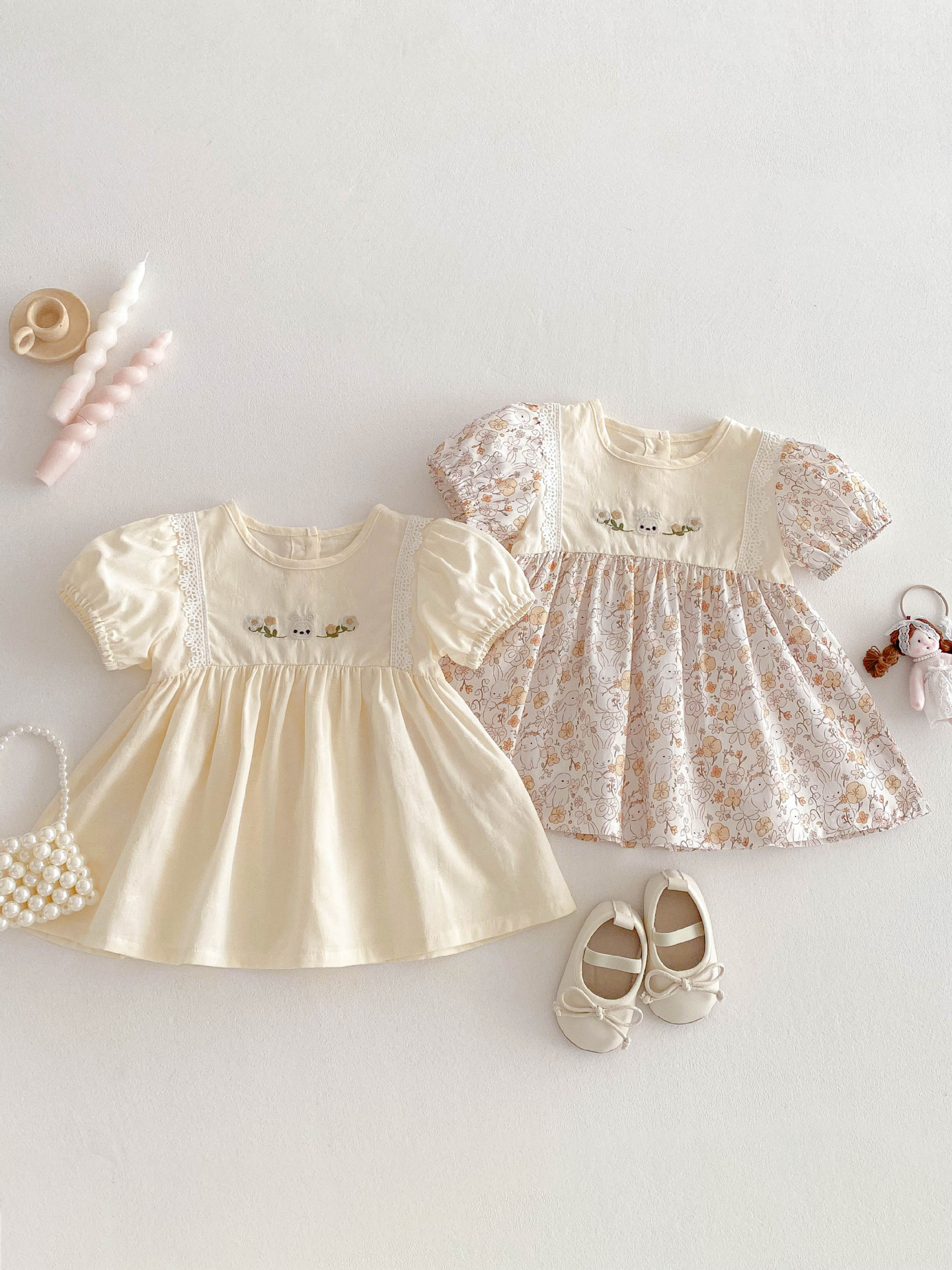 2025 새로운 소녀의 여름 원피스 순면 레이스 아기 원피스 인형 스타일 꽃 공주 치마스토어 가기