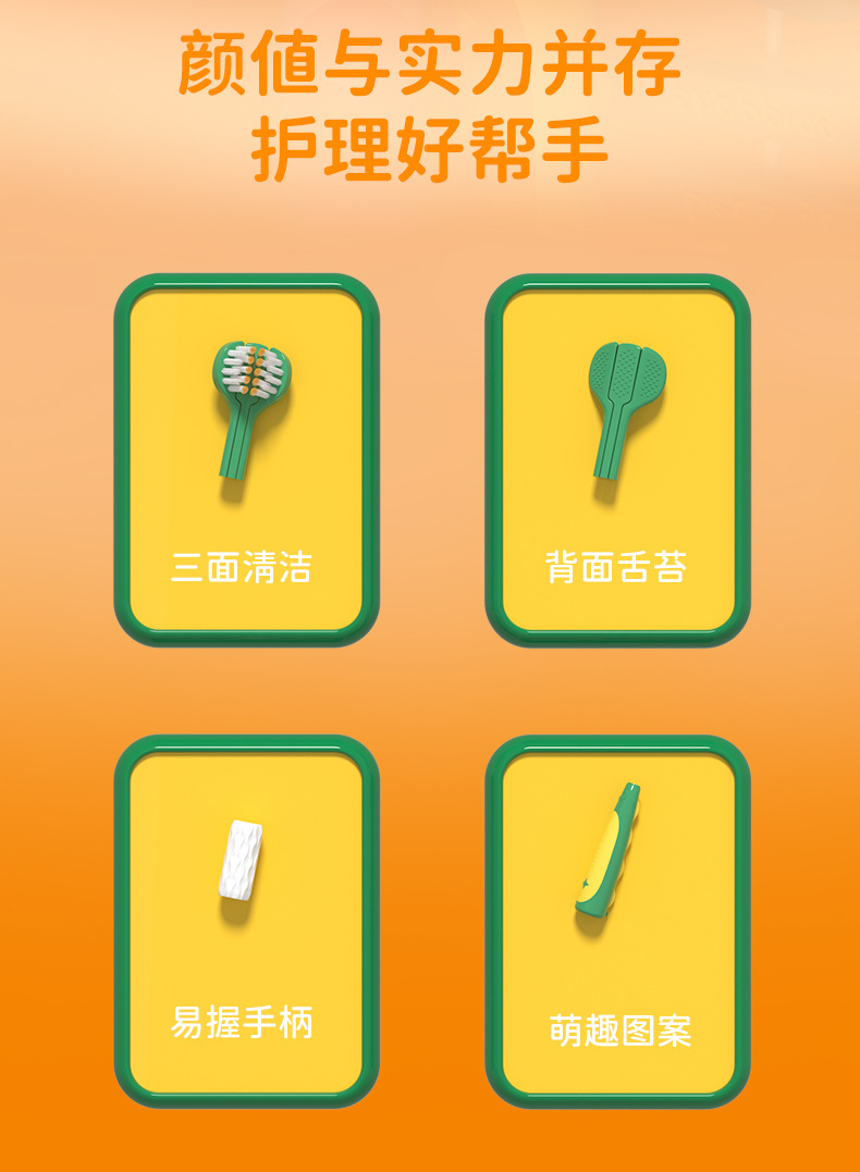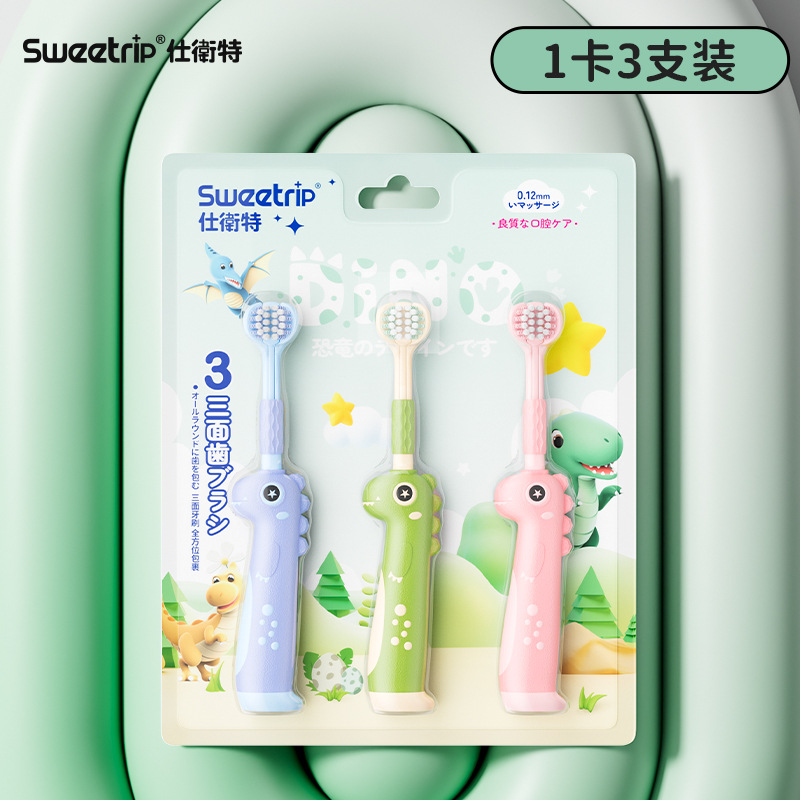 [C-엔드 폭발] 어린이 3 면 부드러운 강모 칫솔 3 ~ 12 세 청소 껌 보호 가정용 칫솔 공장 정품스토어 가기