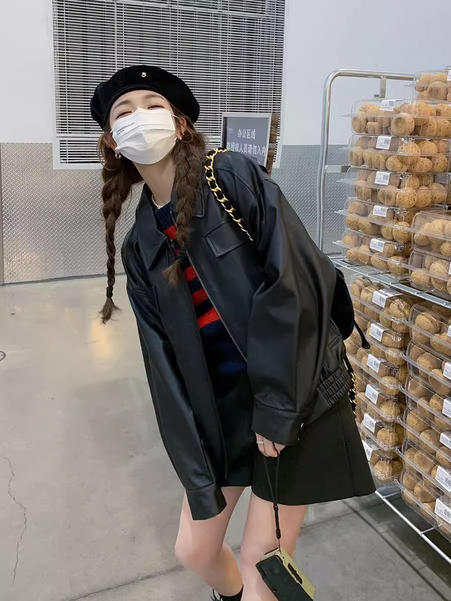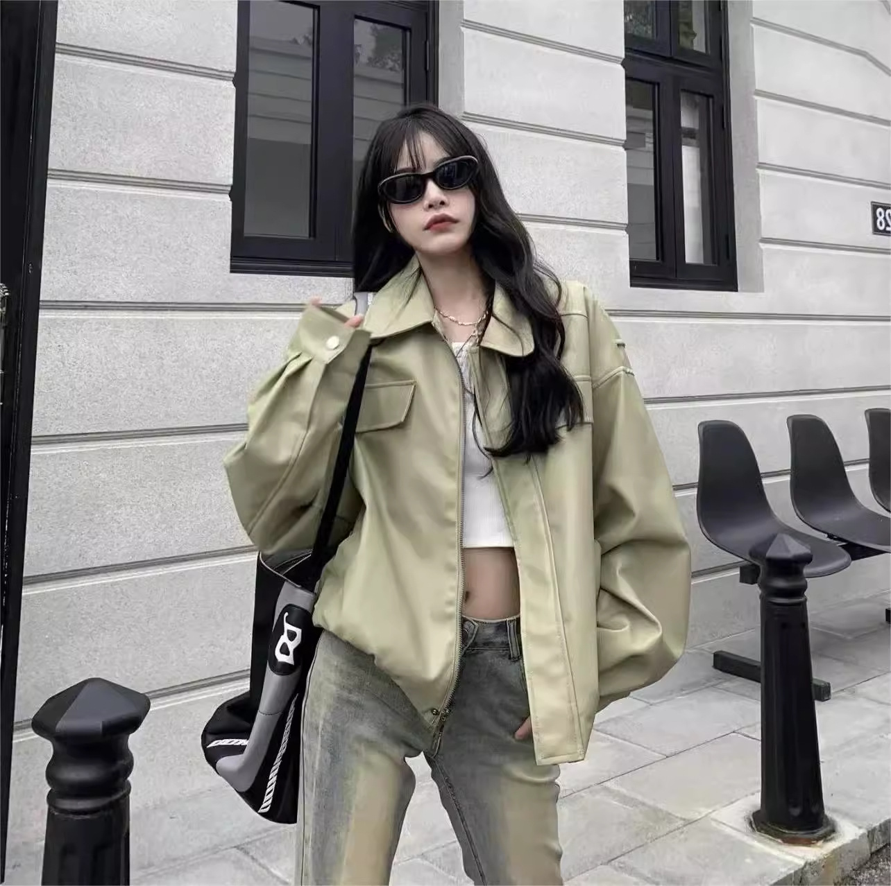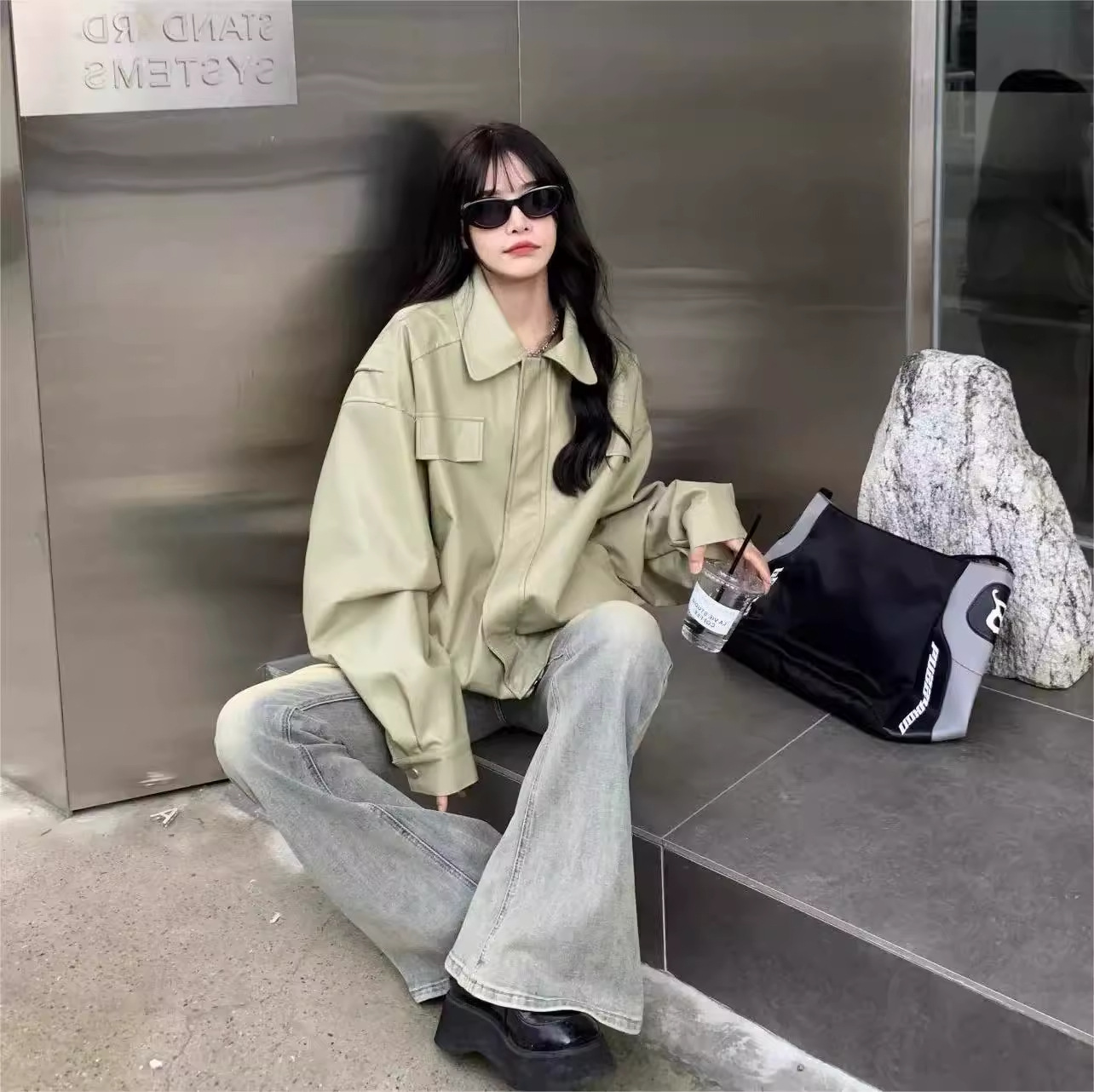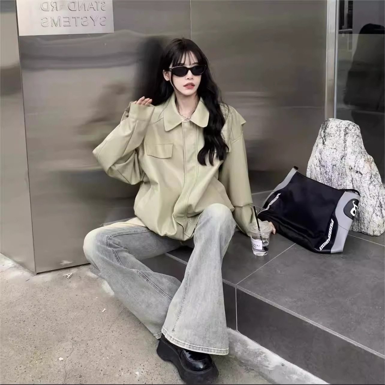 아메리칸 스타일 레트로 PU 가죽 코트 여성의 2025 년 봄과 가을 하이 엔드 센스 틈새 하이 스트리트 패션 브랜드 Maillard 재킷 탑