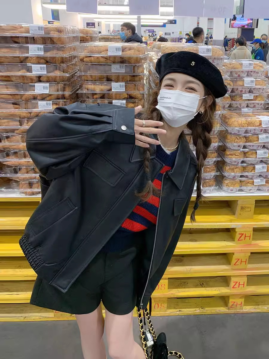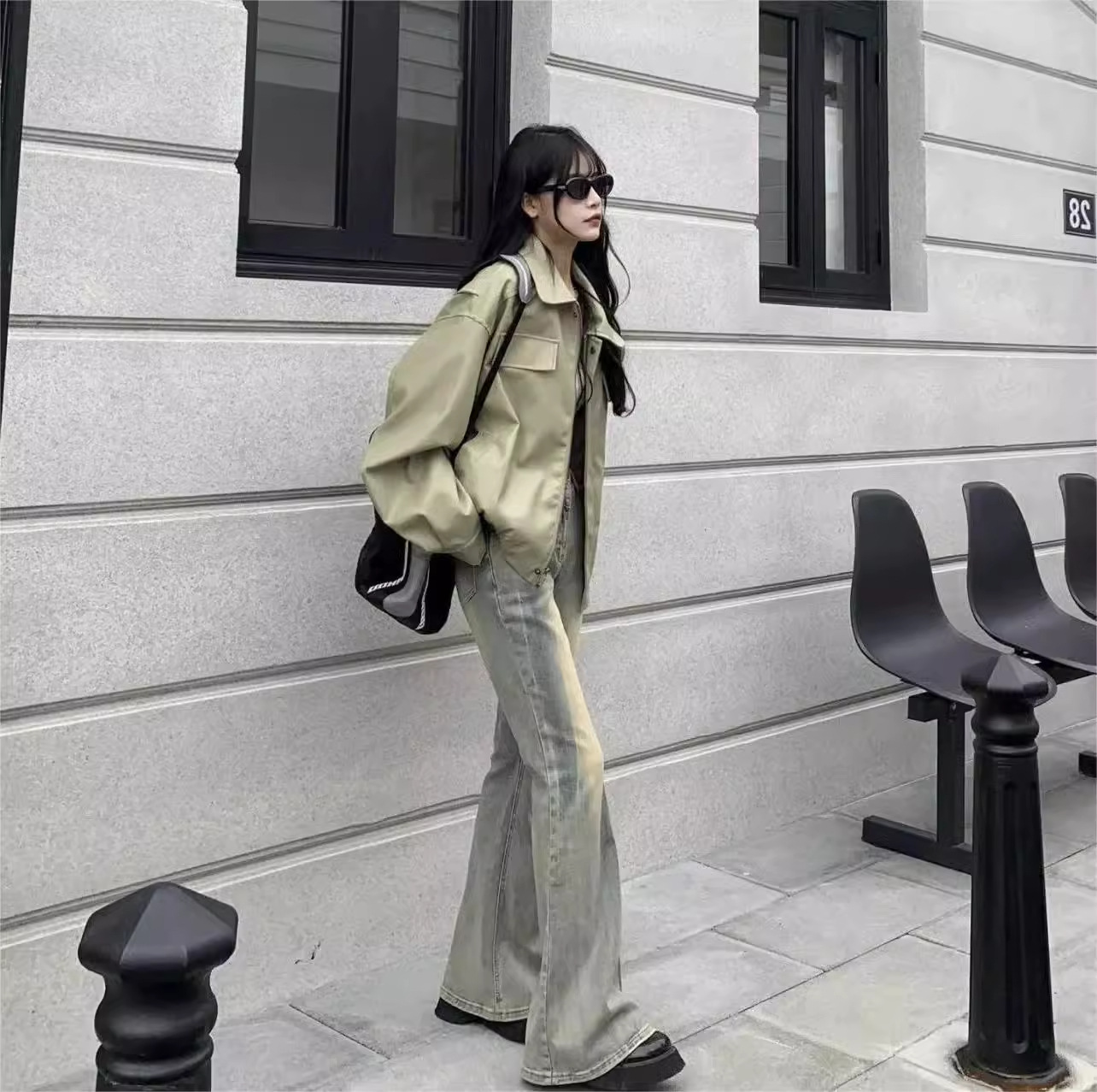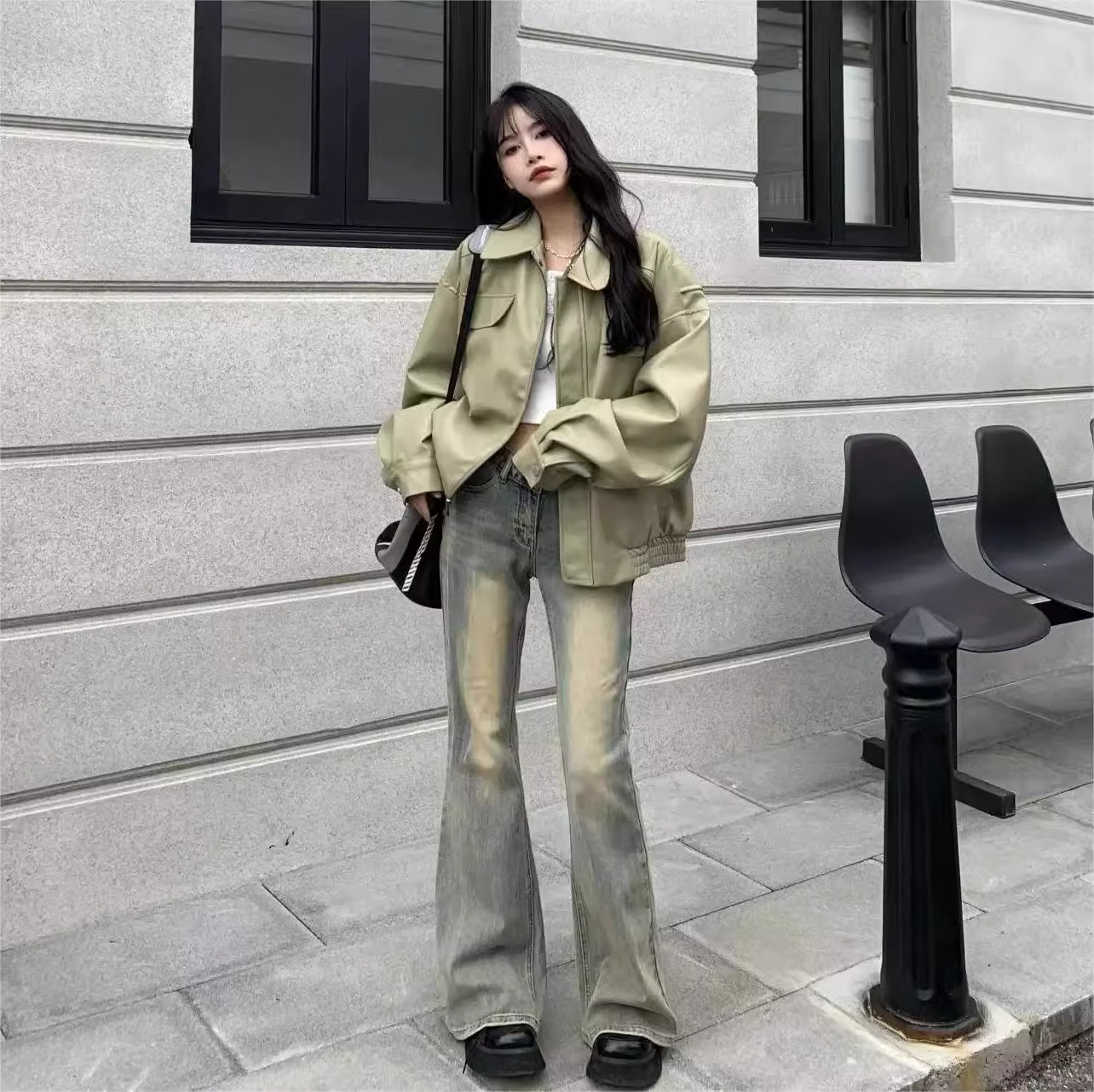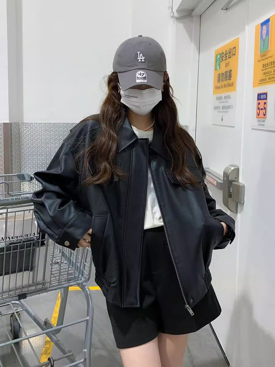 아메리칸 스타일 레트로 PU 가죽 코트 여성의 2025 년 봄과 가을 하이 엔드 센스 틈새 하이 스트리트 패션 브랜드 Maillard 재킷 탑