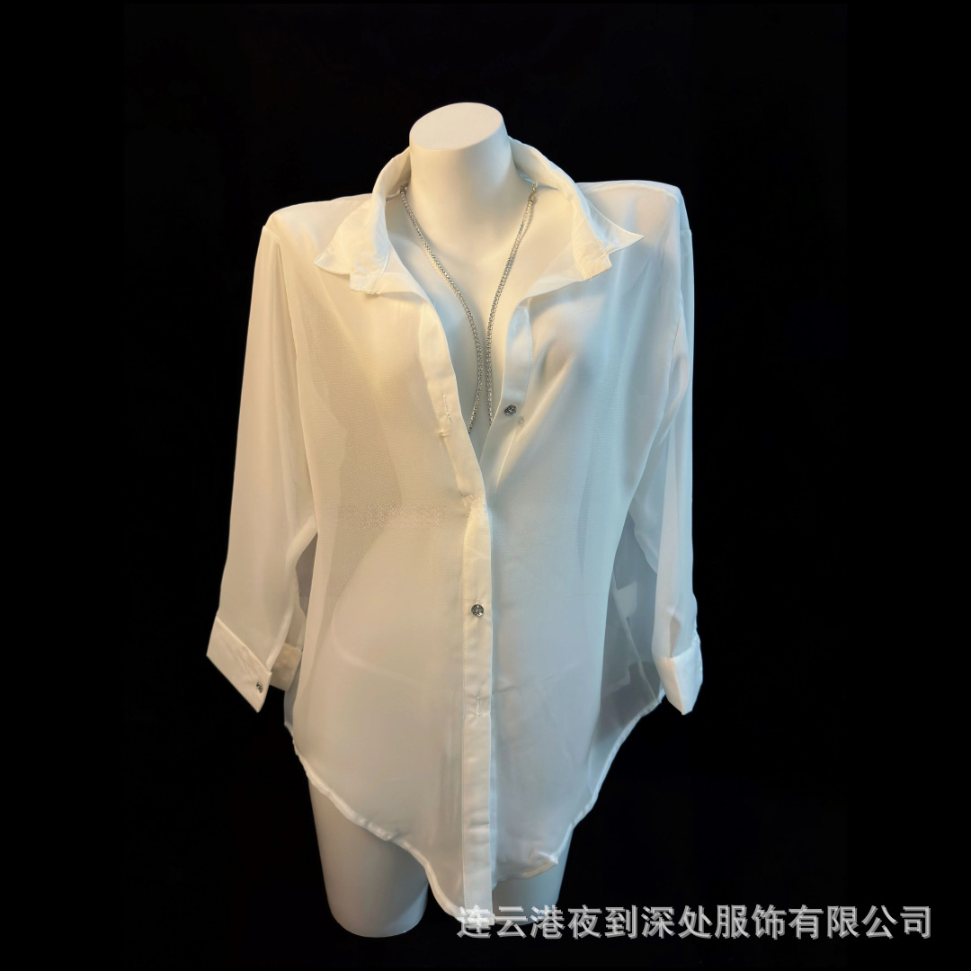 밤부터 깊은 시폰 어깨 셔츠 슬링 나이트 가운 섹시한 관점 섹시한 속옷 유혹 뜨거운 여성