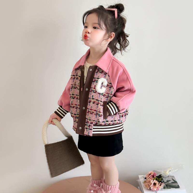 소녀 코트 봄과 가을 2025 새로운 서양 스타일 아기 봄 옷 샤넬 스타일 탑 어린이 봄 소녀 옷스토어 가기