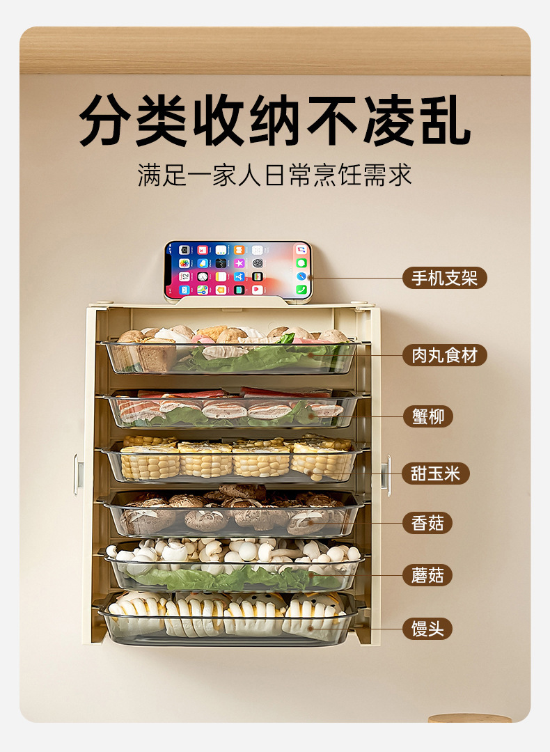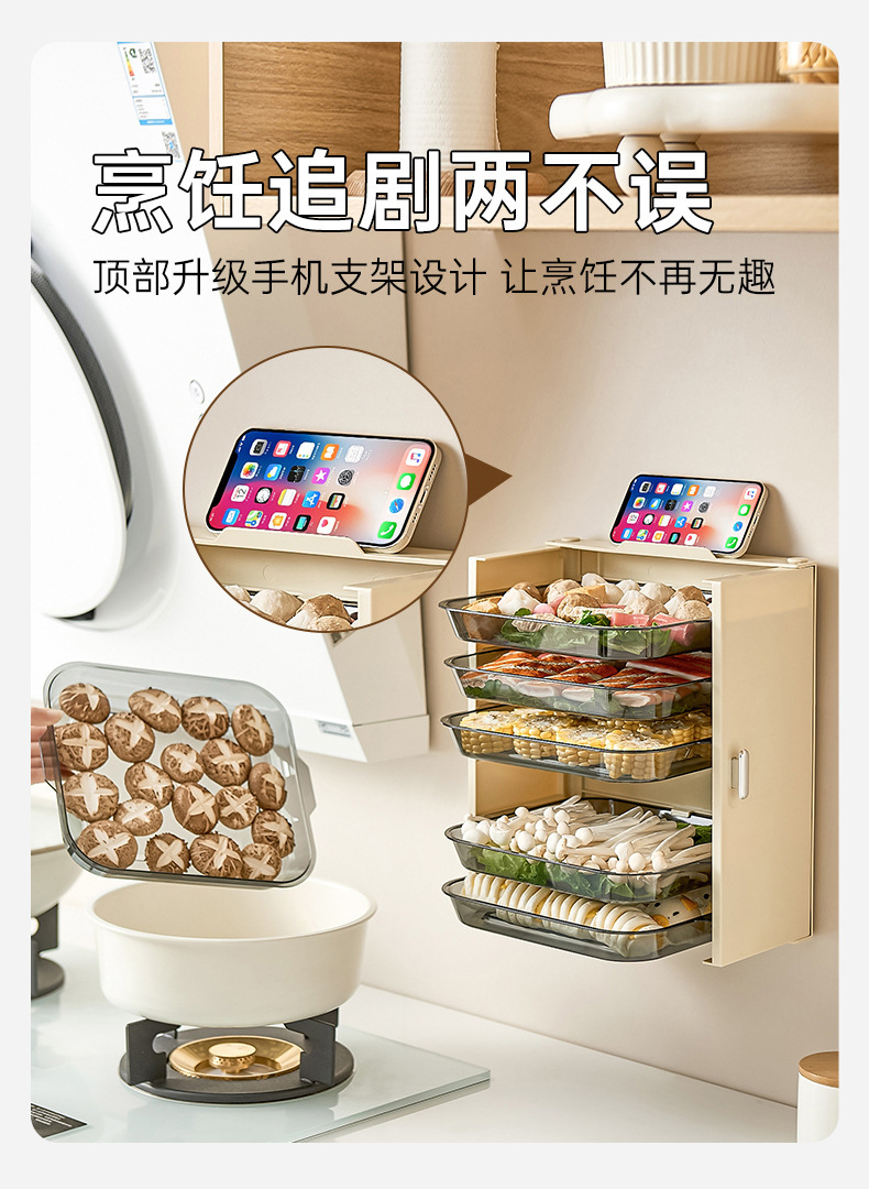주방 준비용품 보관 선반 접이식 다기능 전골 반찬 접시 가정용 다층 박스 벽걸이형 접이식 수납