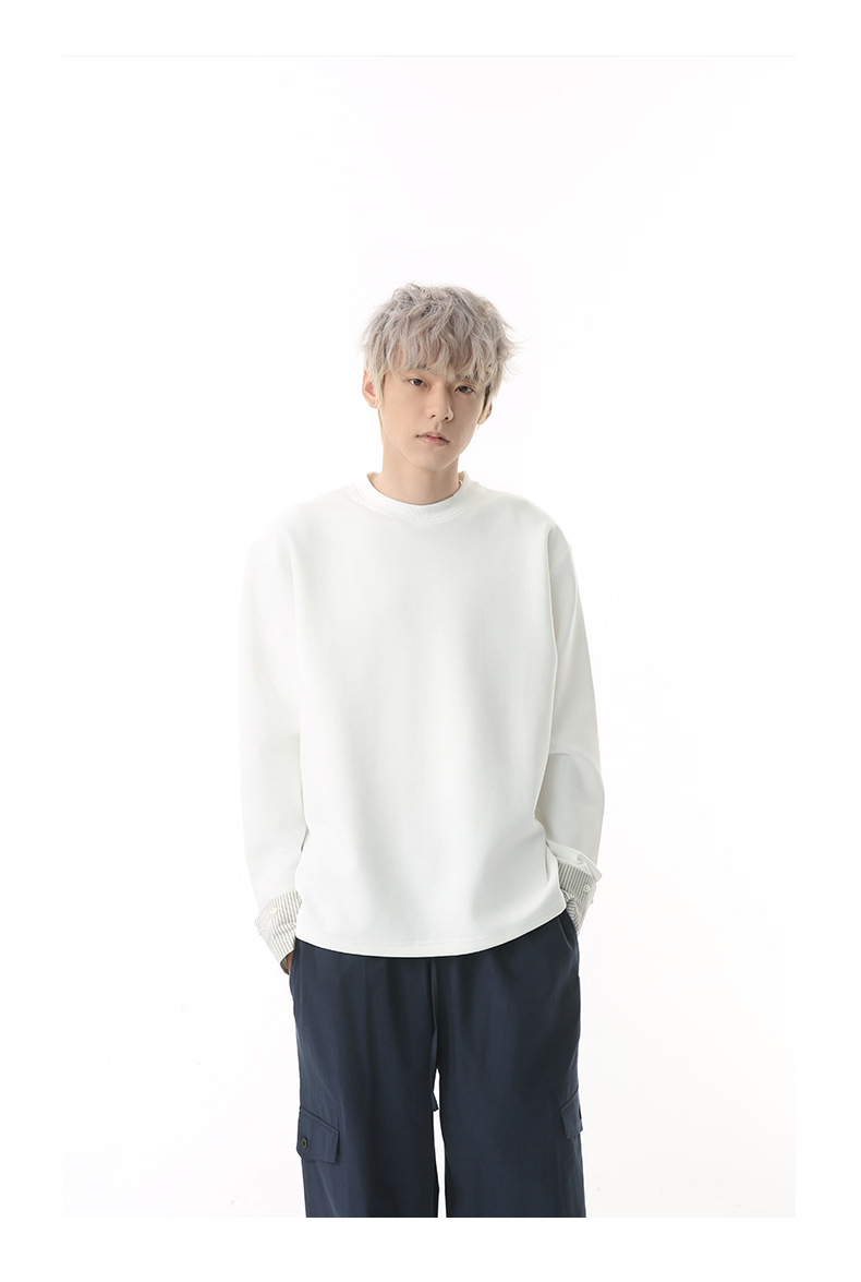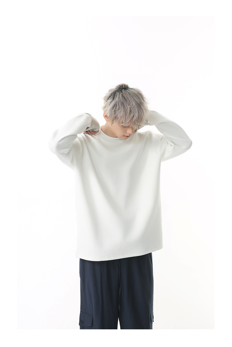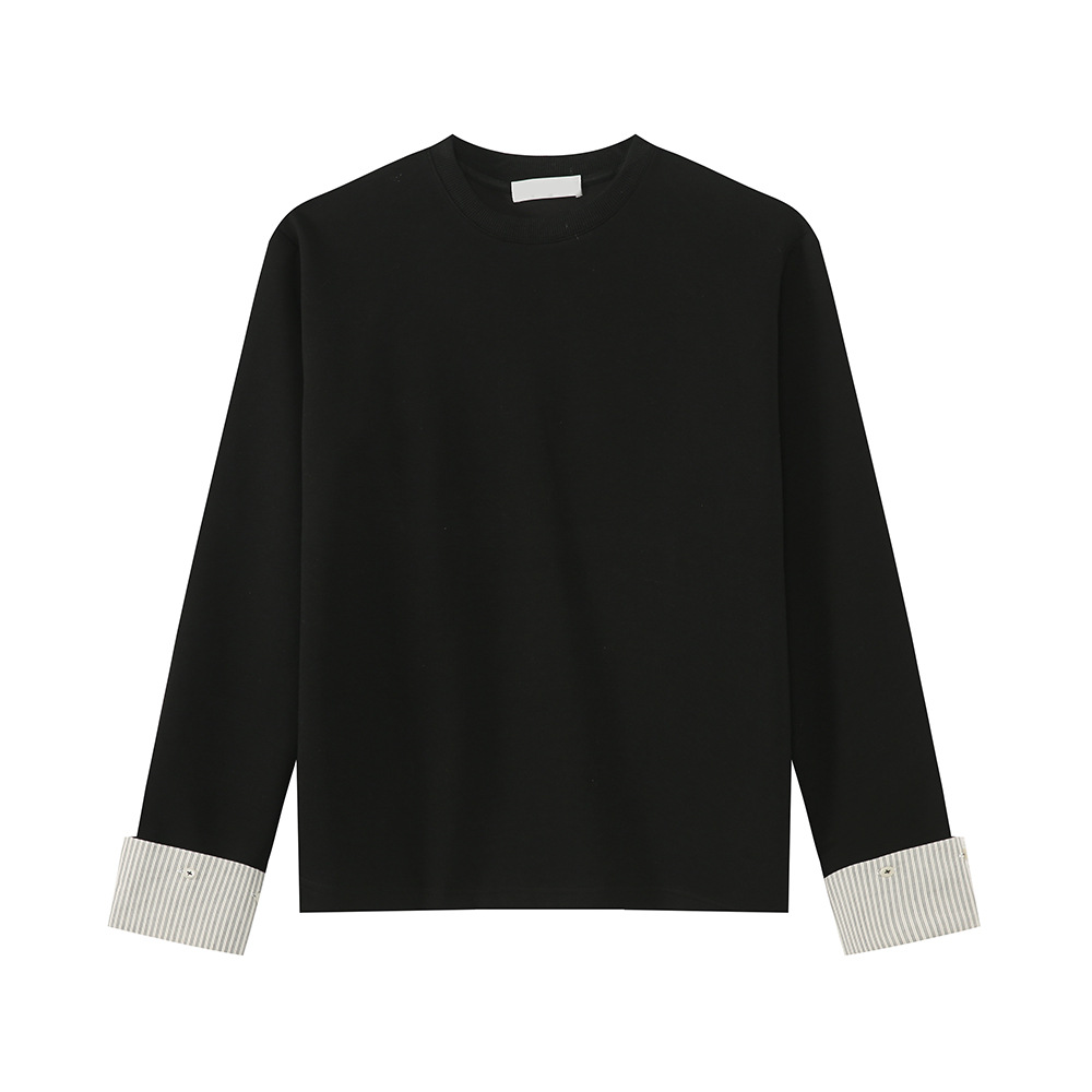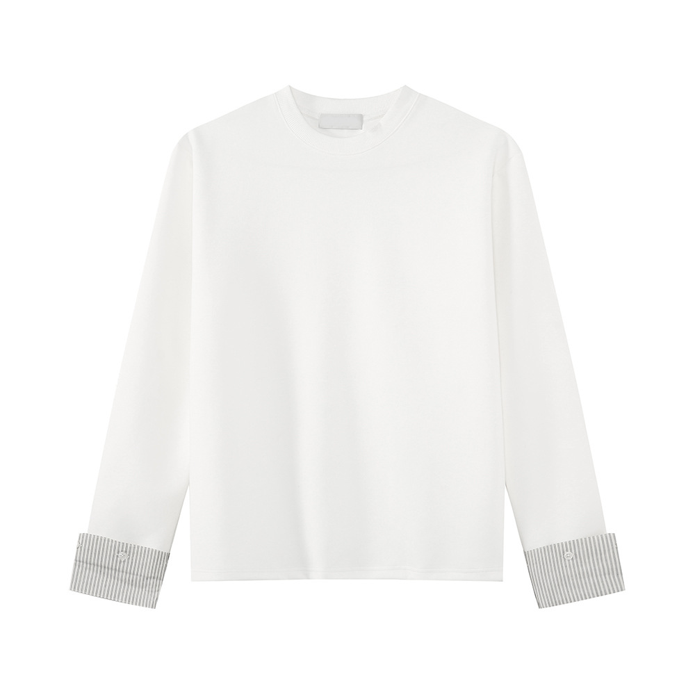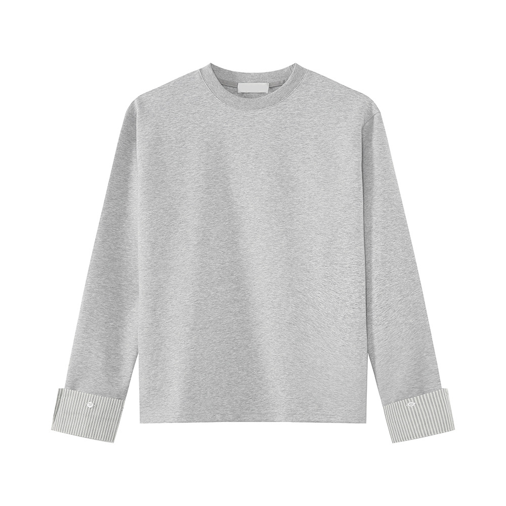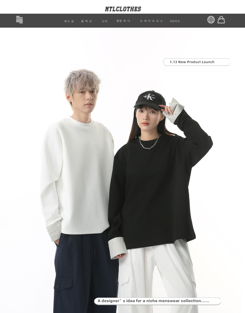 MTLCLOTHES 남성용 | 한국어 버전의 간단한 스트라이프 스티칭 슬리브 디자인 둥근 목 느슨한 바닥 티셔츠 캐주얼스토어 가기